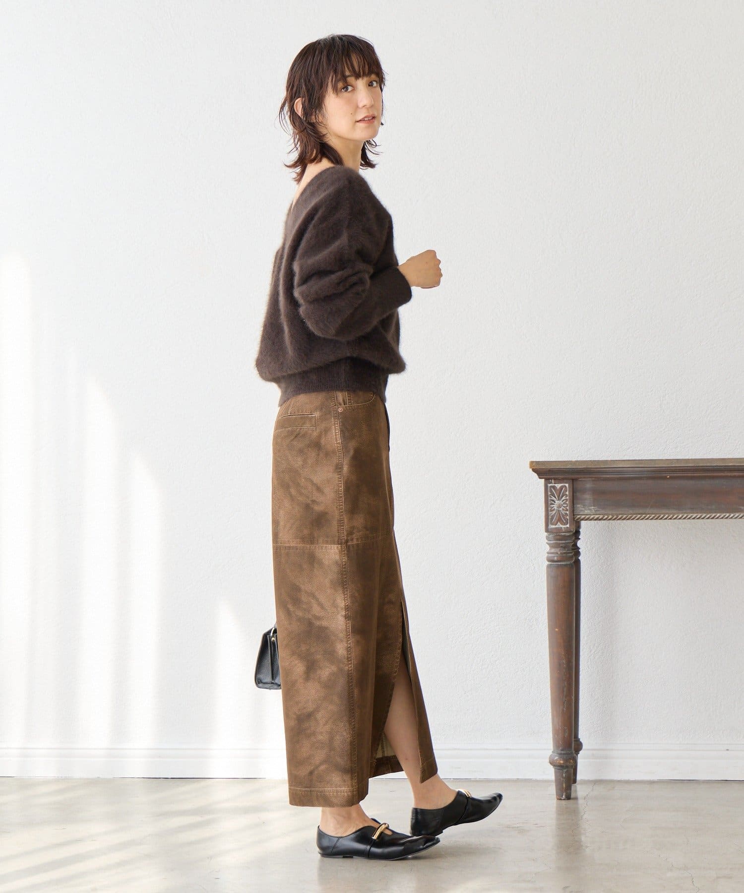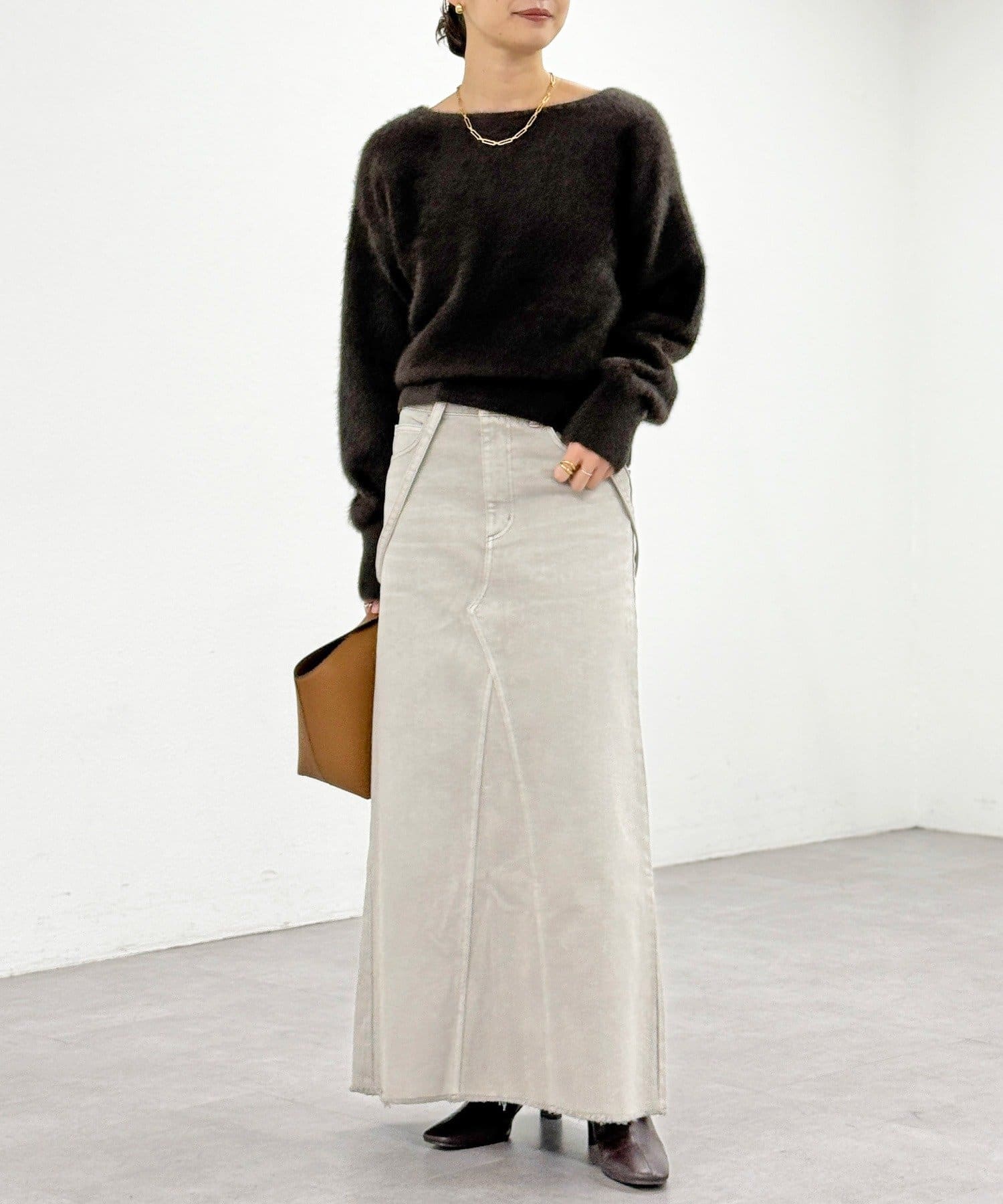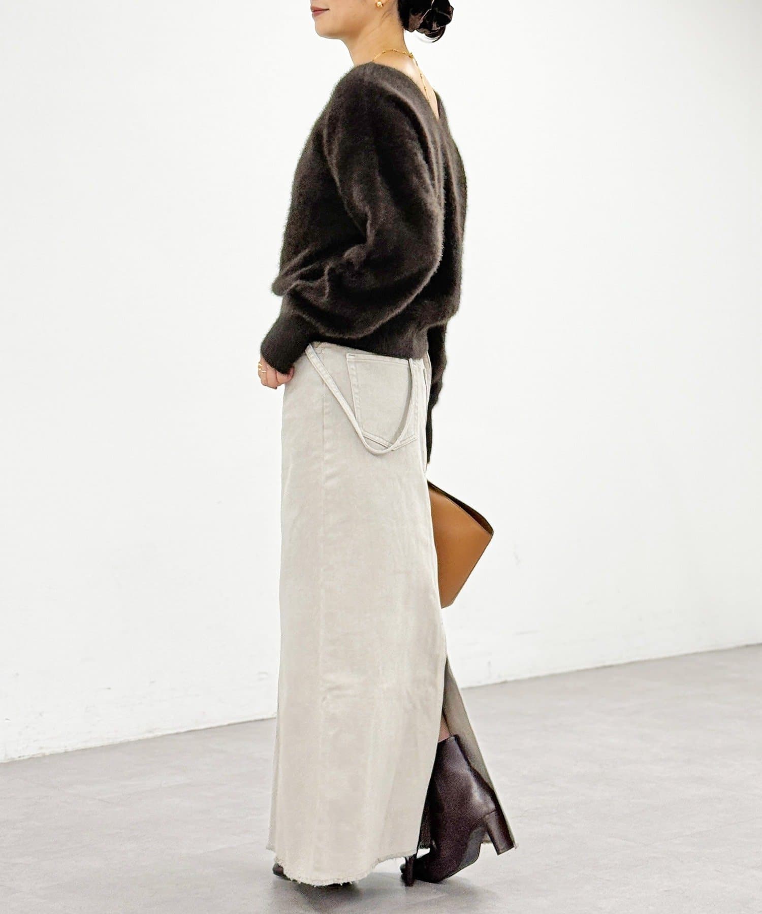 ・インしなくても決まりの良い着丈、ルーズなニュアンスのある袖丈でこなれて見えるデザイン。