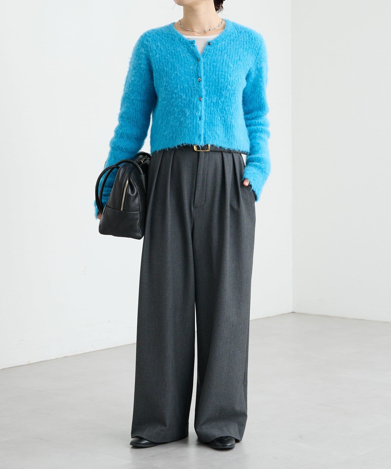 ・ショート丈でコンパクトなサイズ感と、長めの袖丈のバランスが新鮮なカーディガン