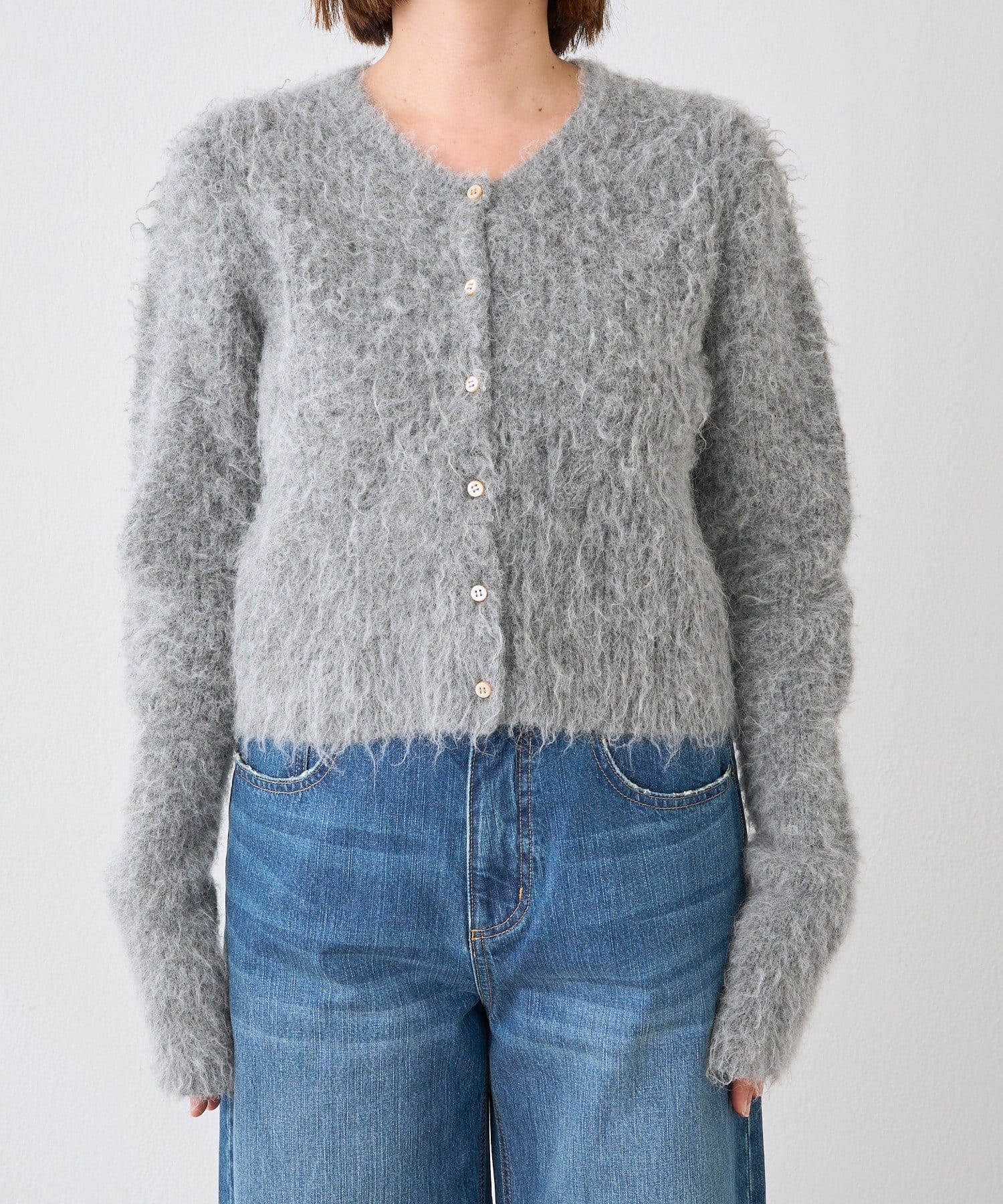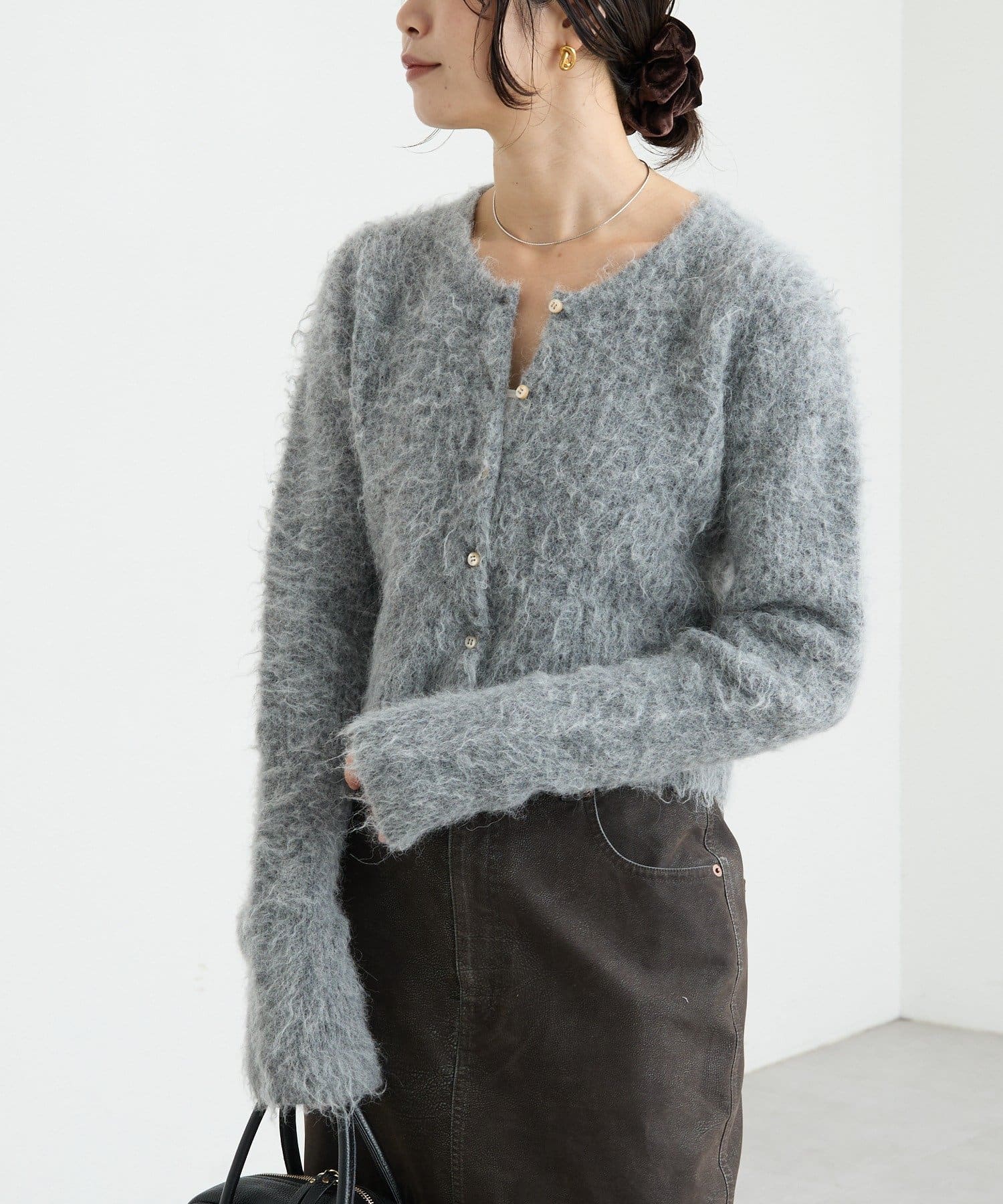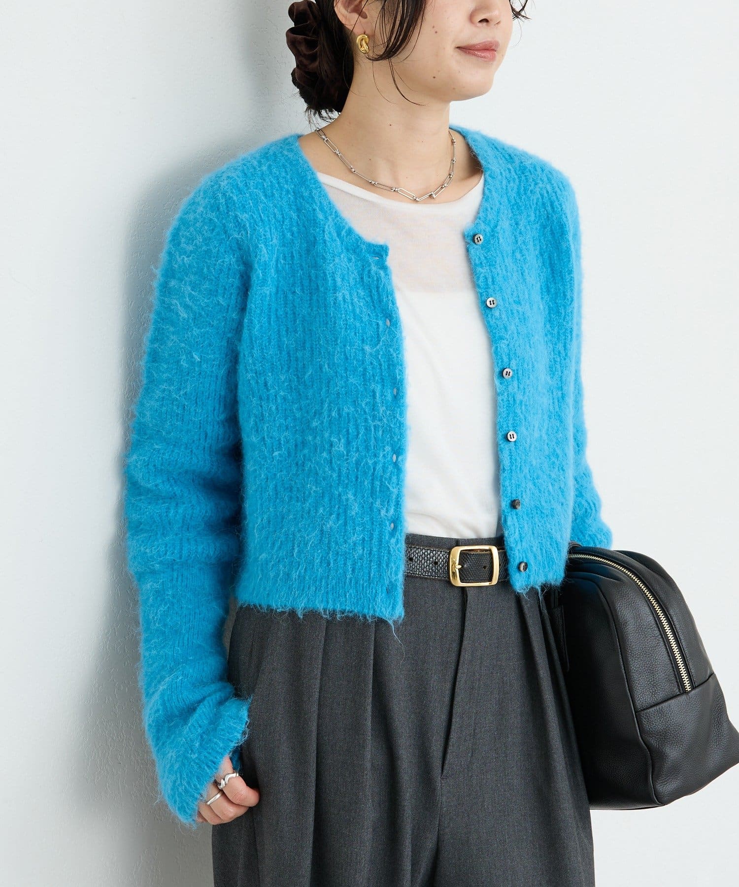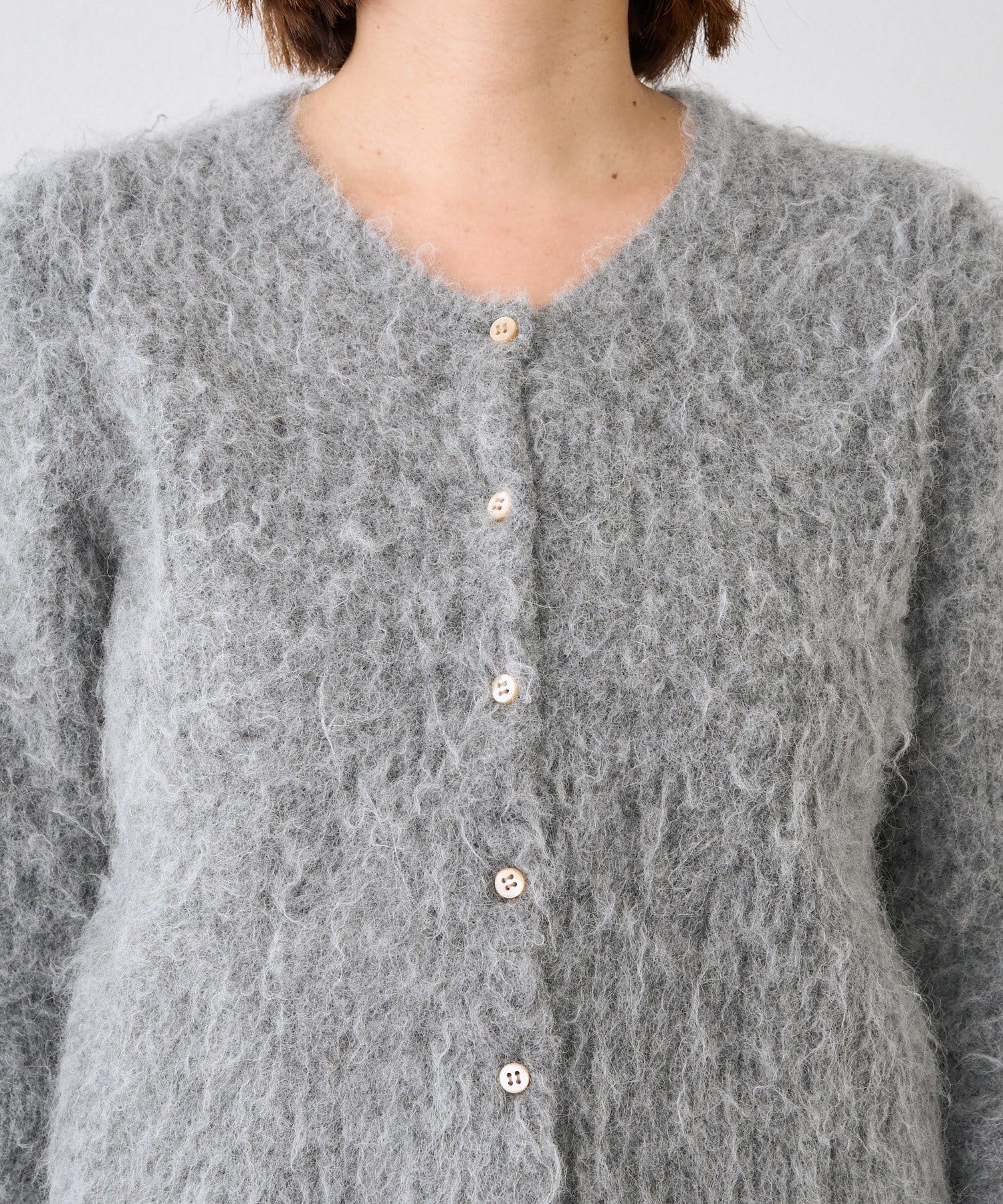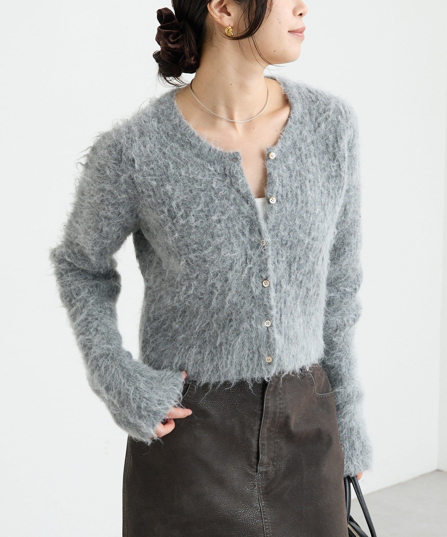 コンパクトな丈感が新しいへアリーなカーディガン