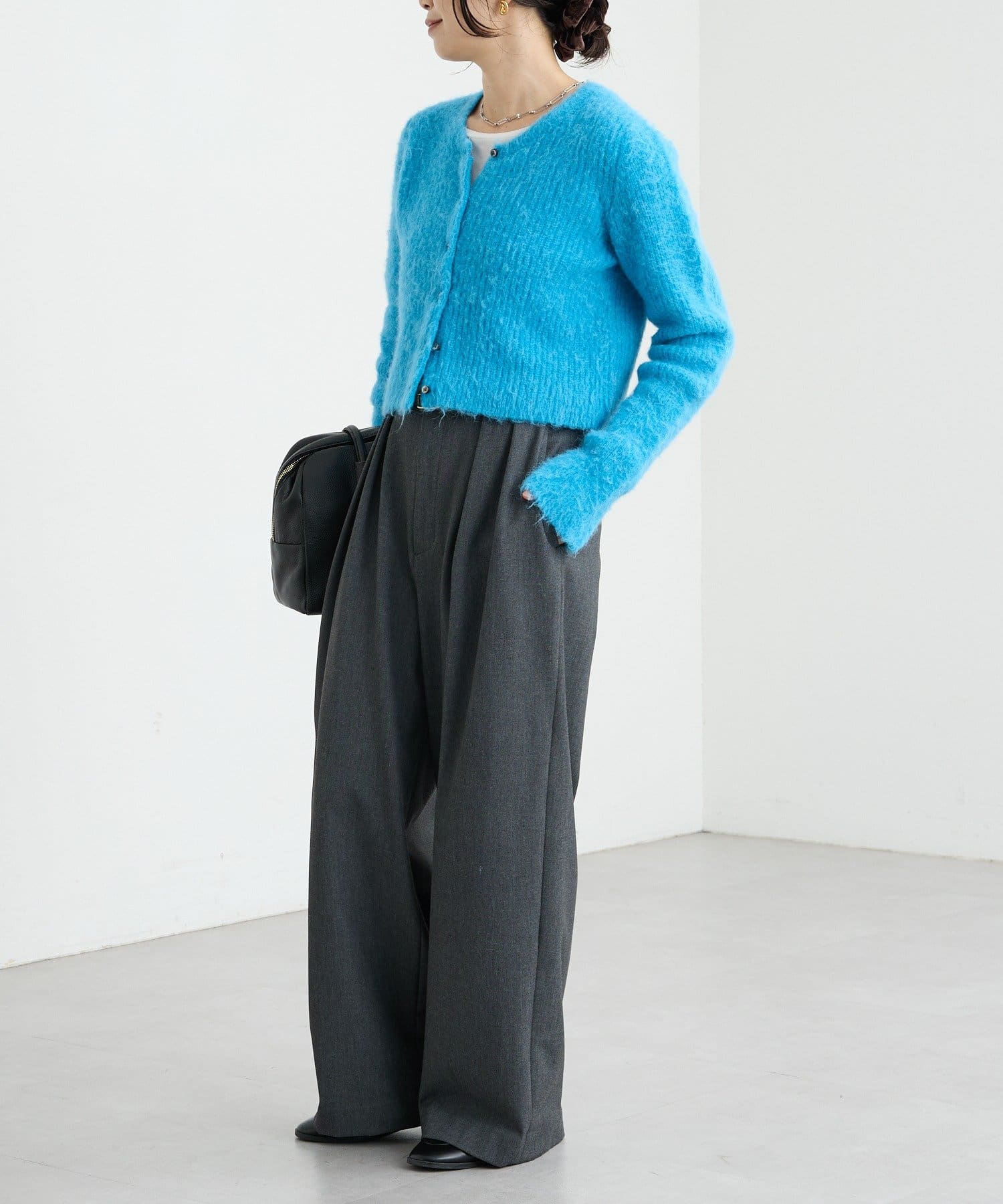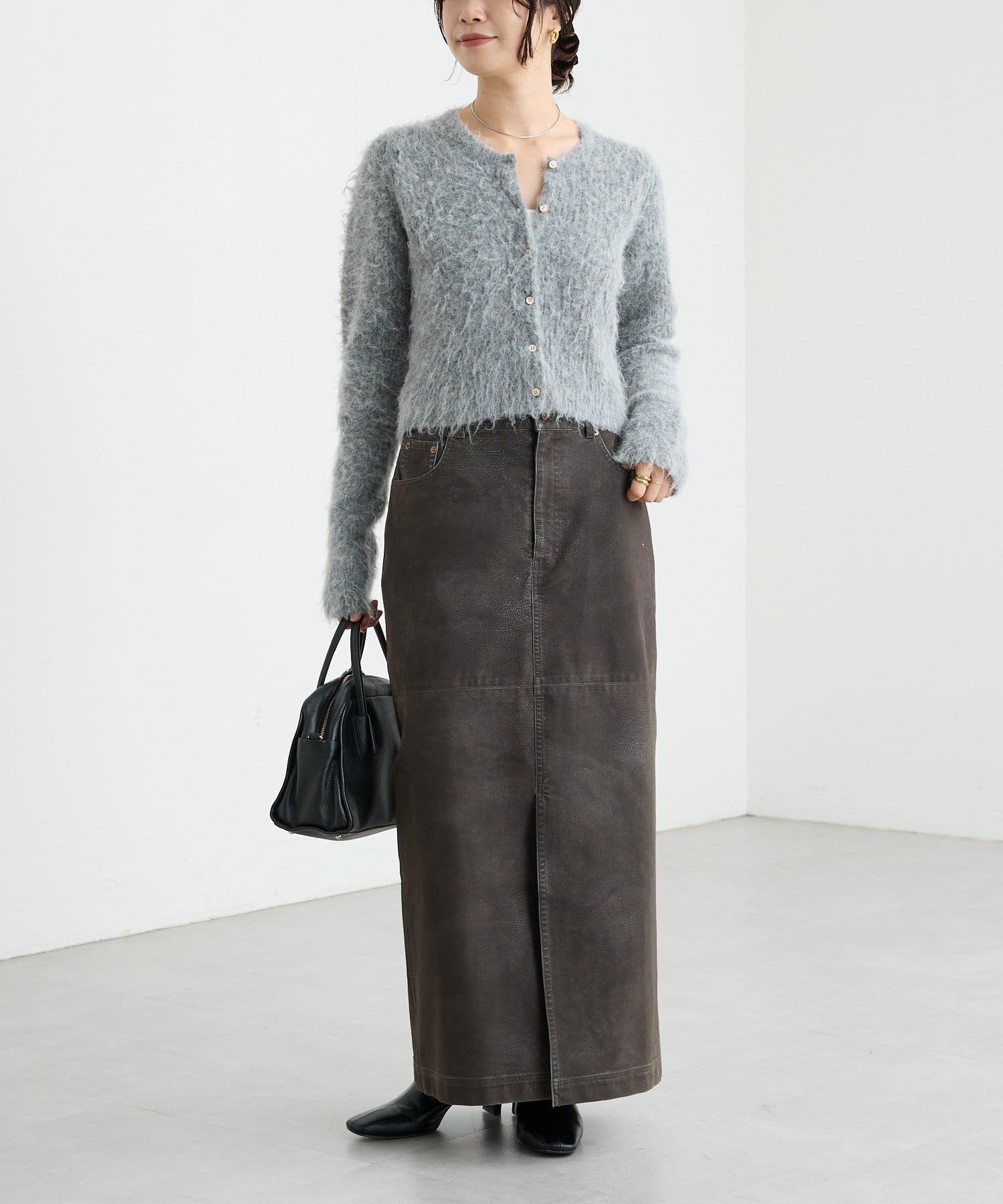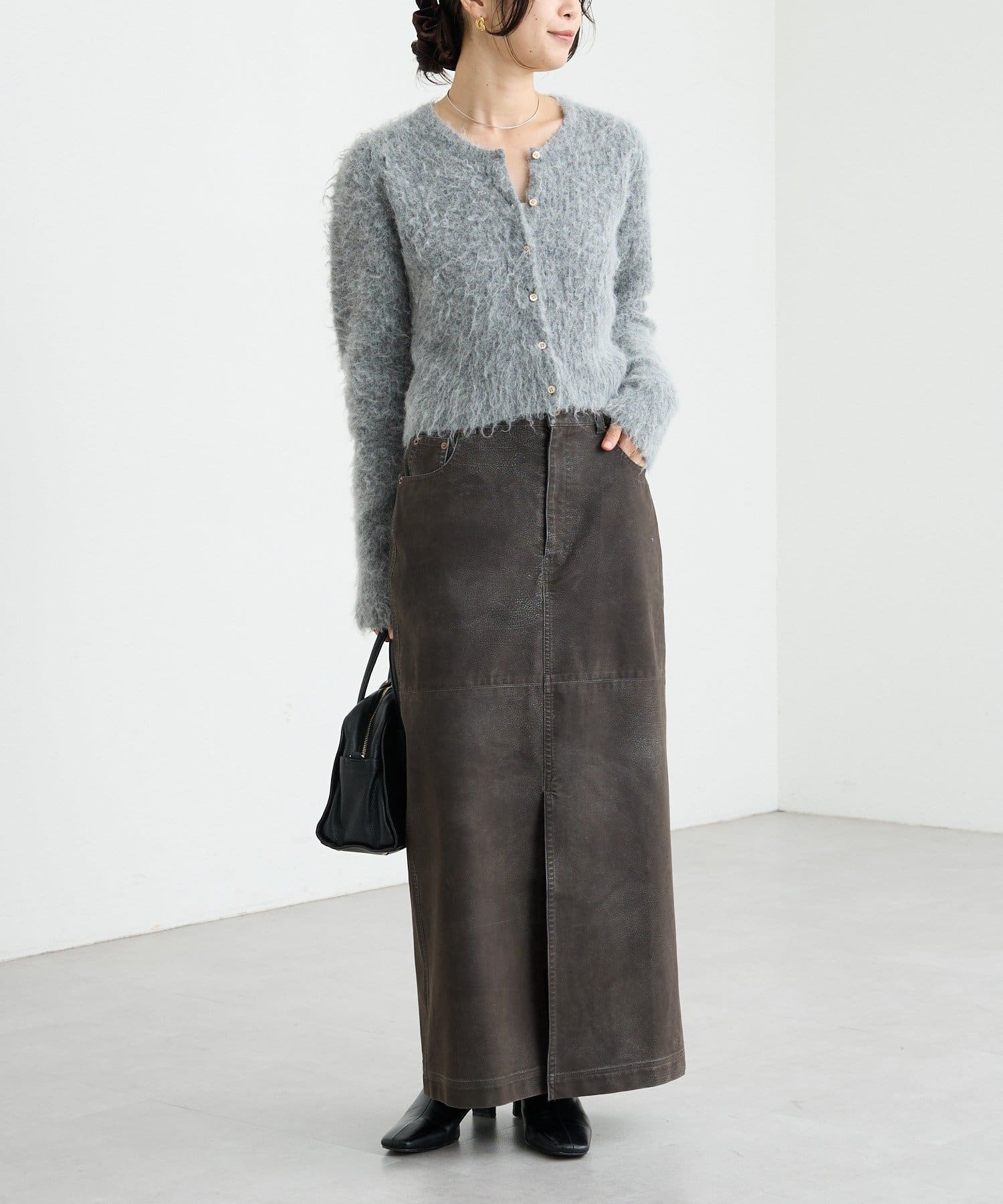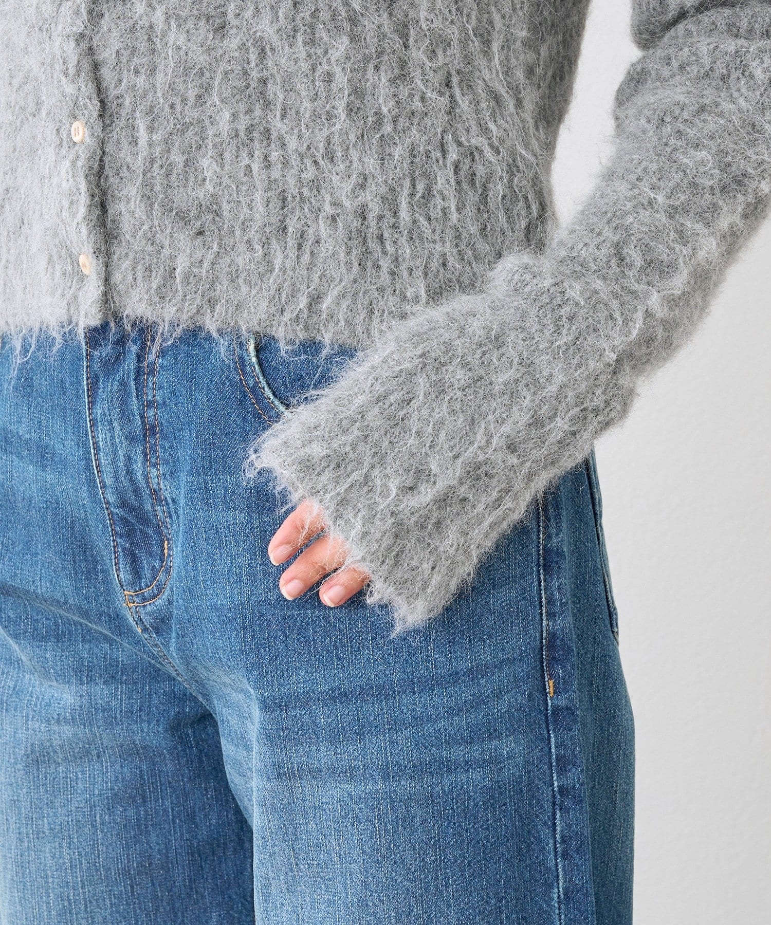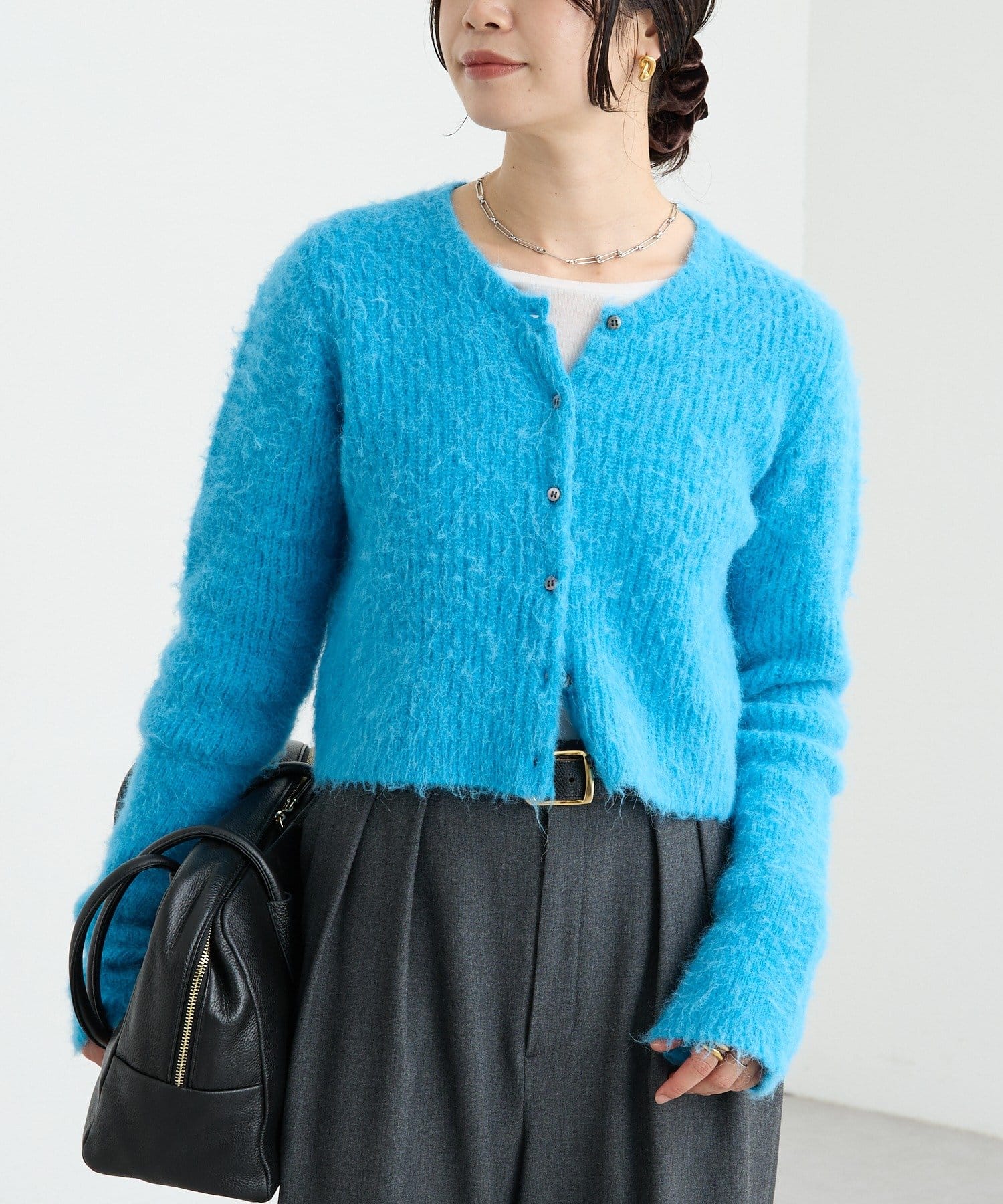コンパクトな丈感が新しいへアリーなカーディガン