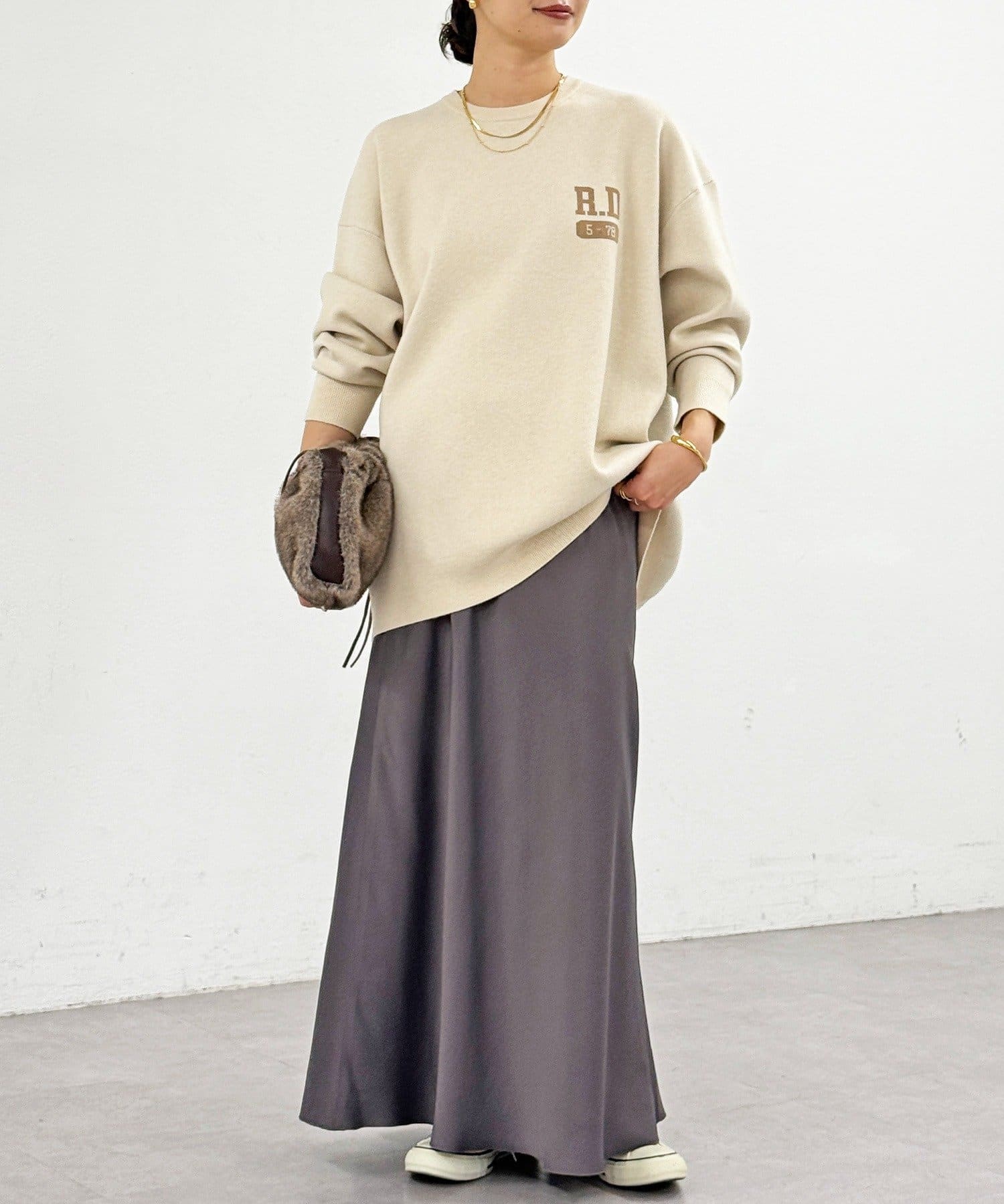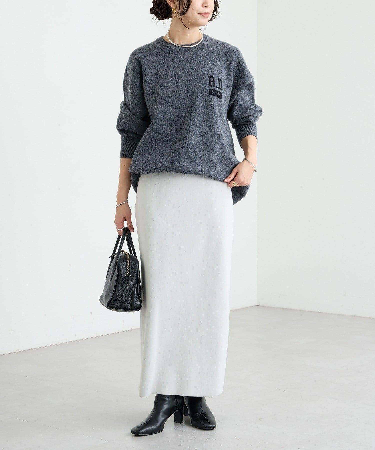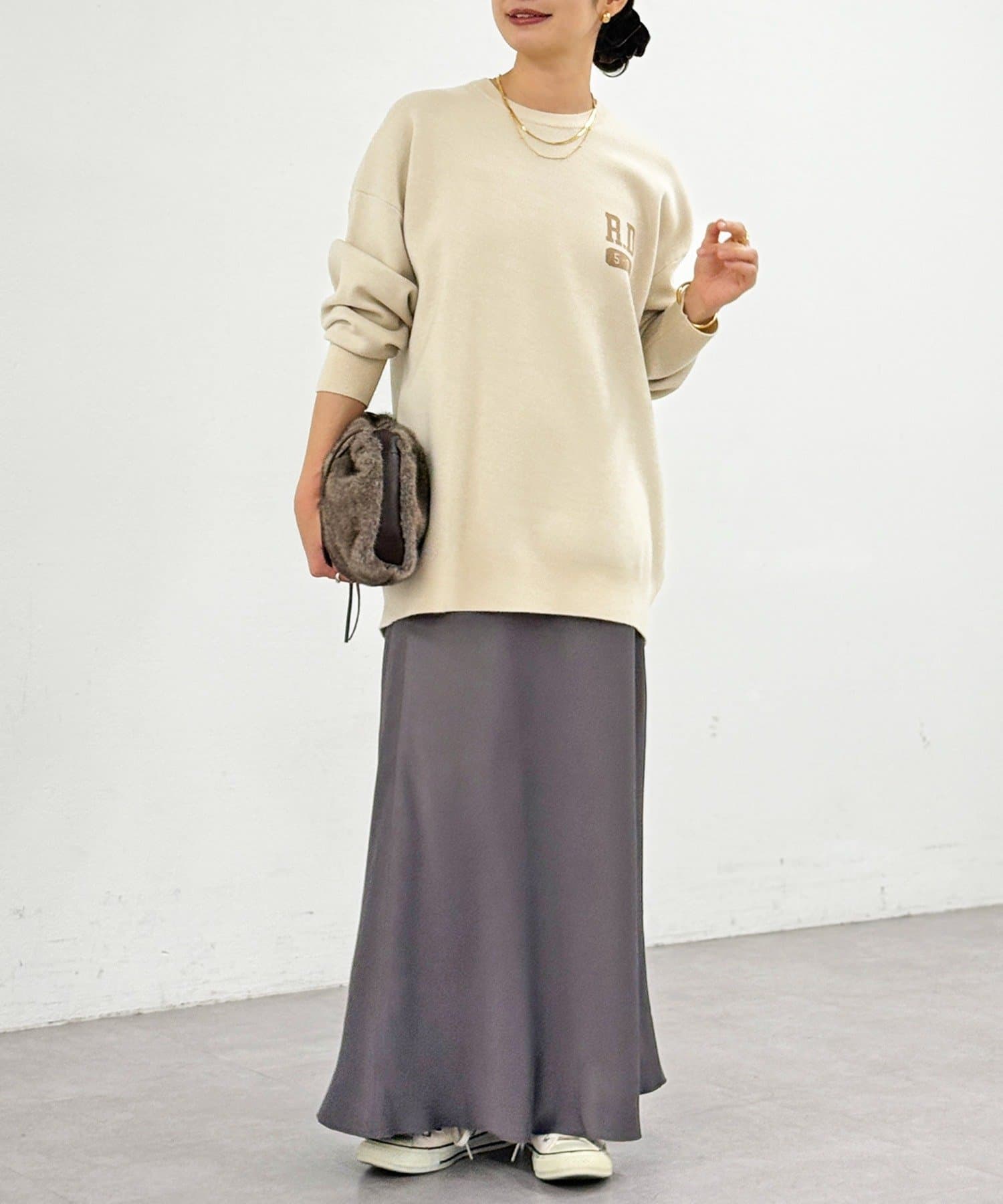 ・白Teeやシャツをチラ見せしやすい衿あきもポイント。大人の為のカジュアルニットです。