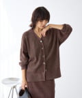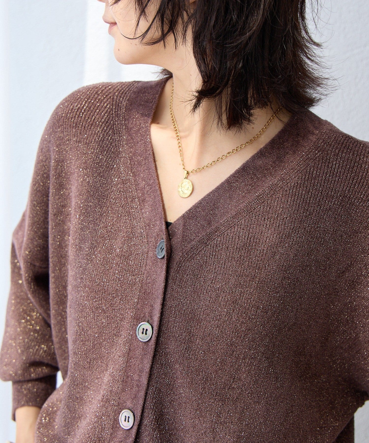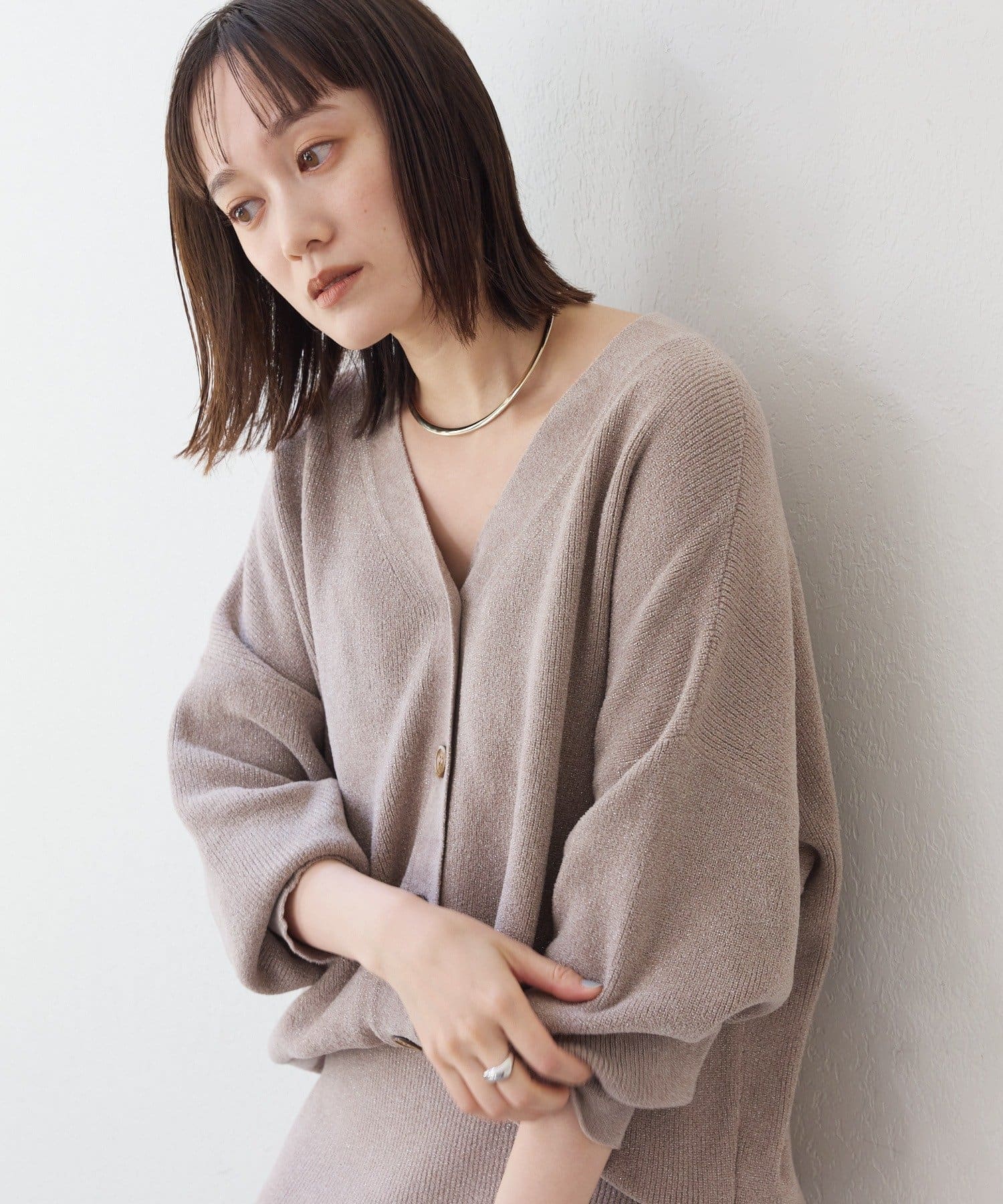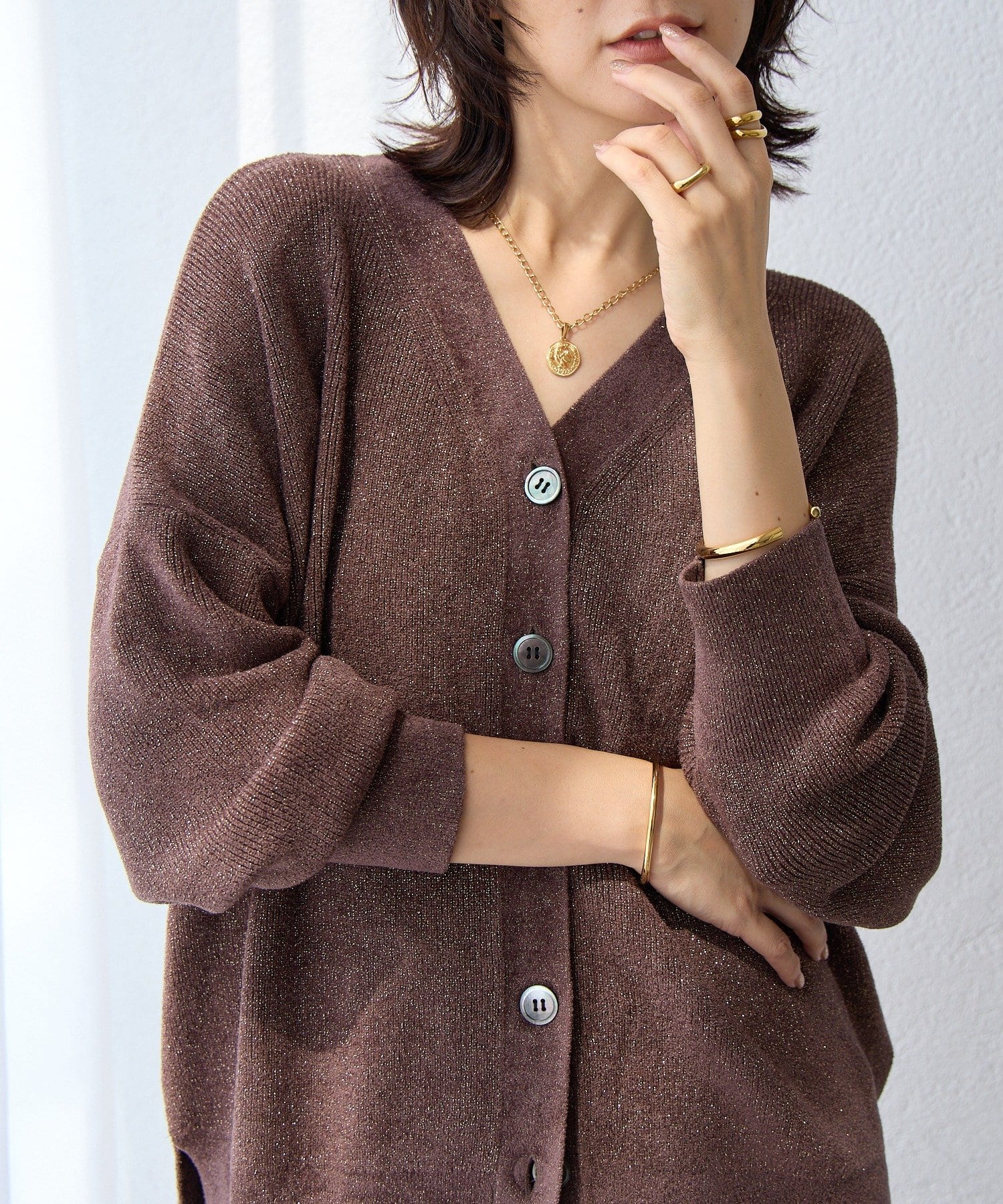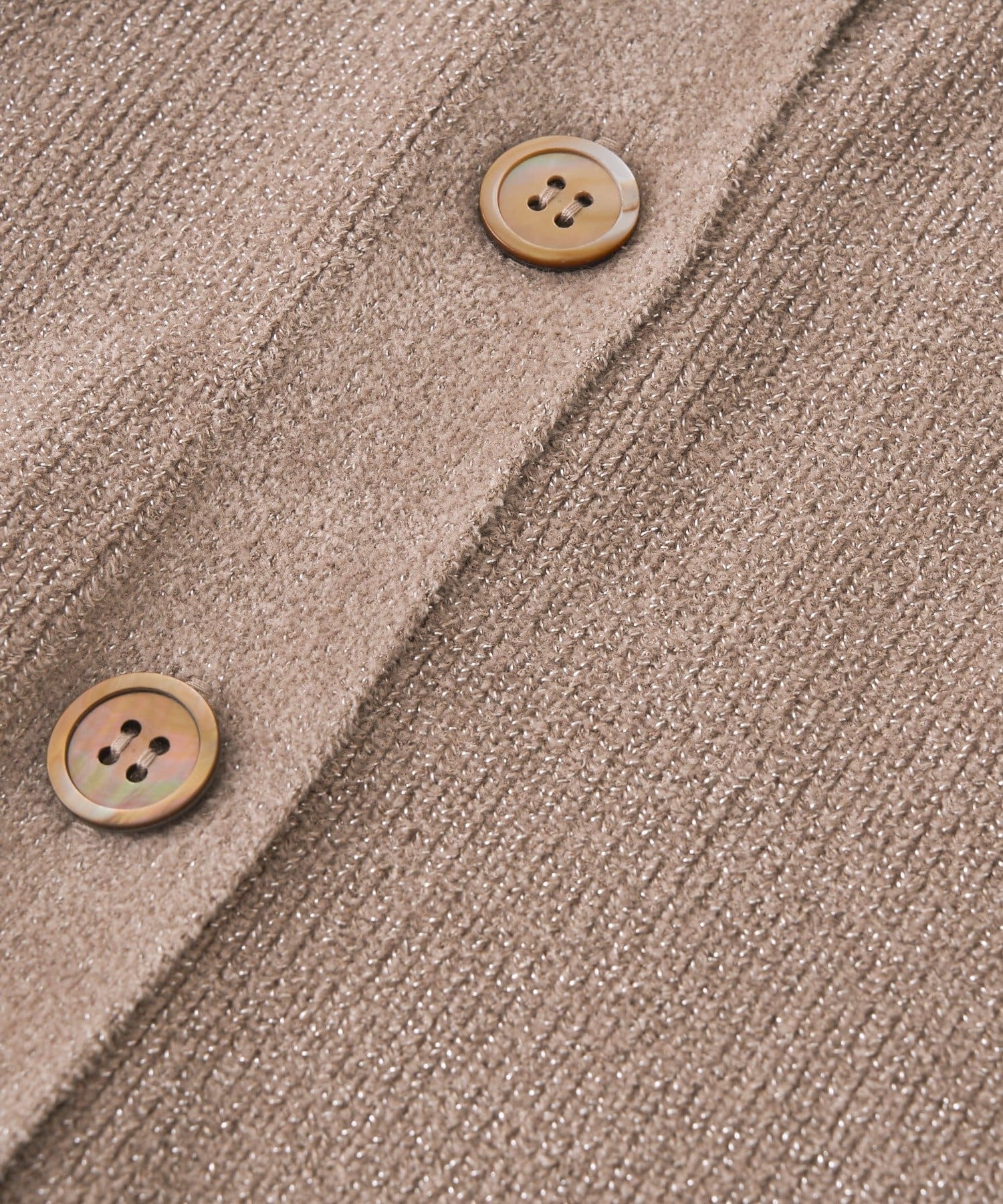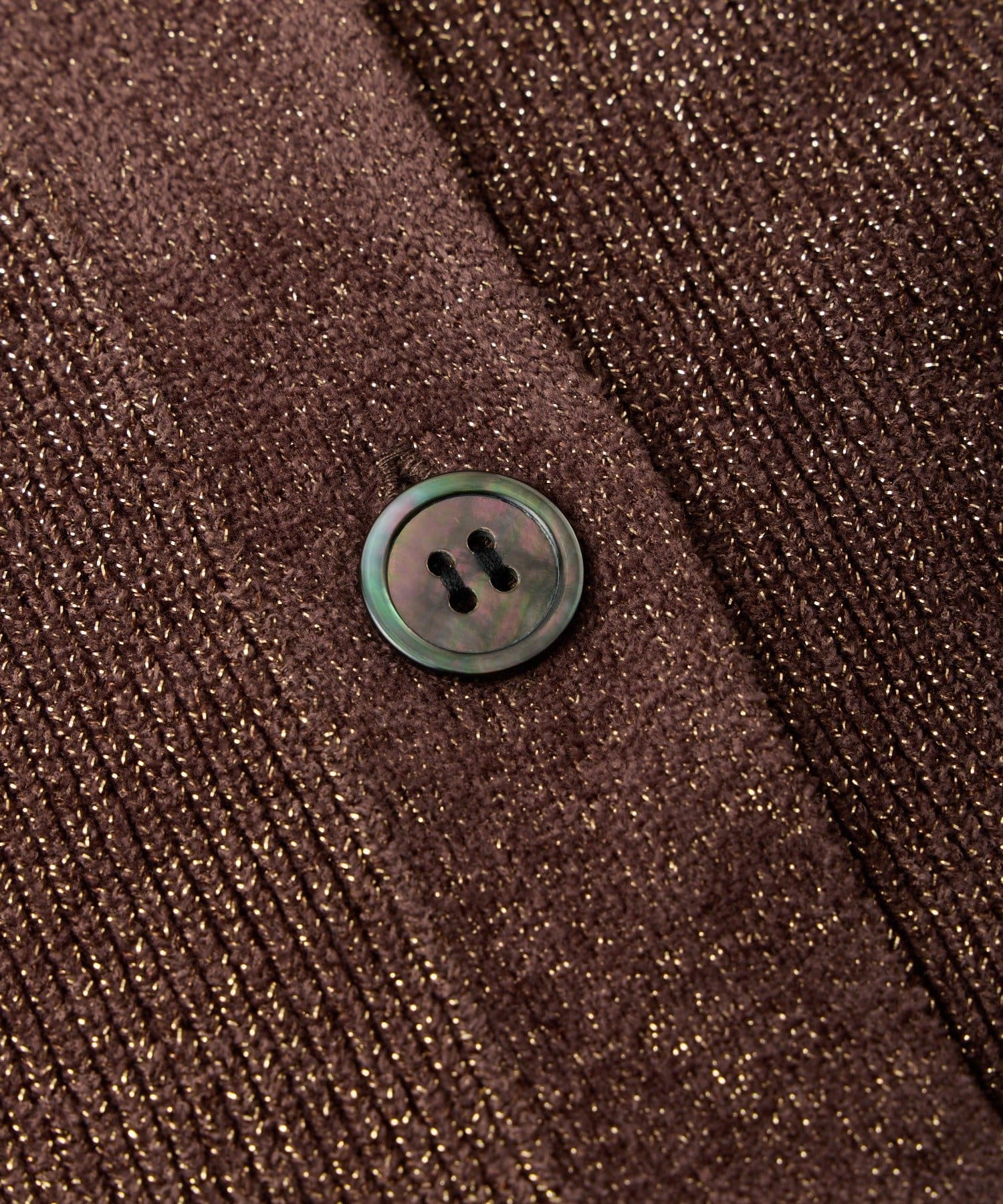 ・ベロアタッチのミニモールに繊細なラメをミックスしたフェミニンなムードのカーディガン。