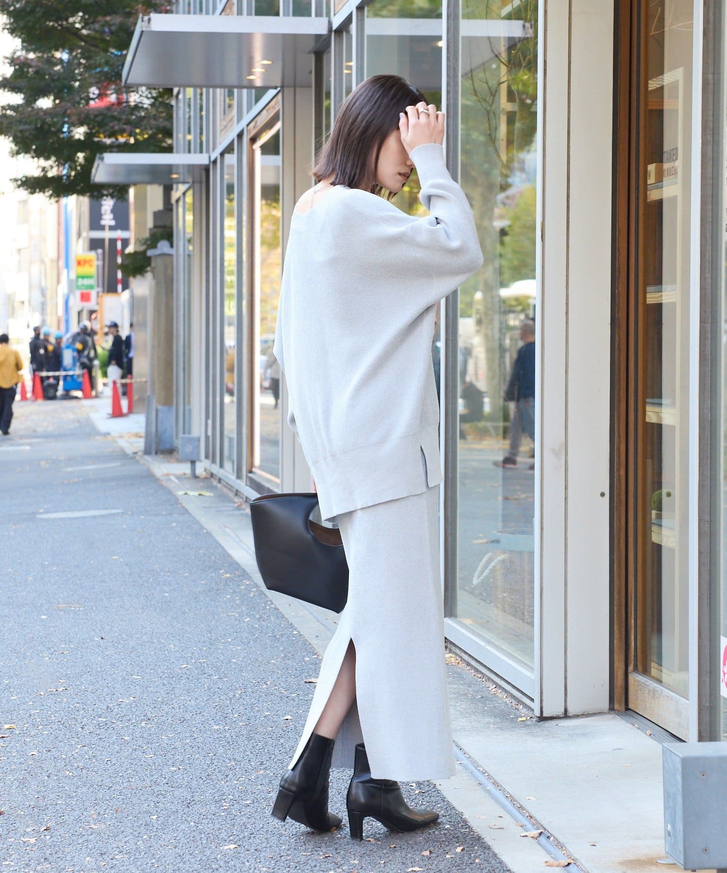 ・同素材を使用したラメモールニットタイトスカートとセットアップで華やかさも一層アップします。