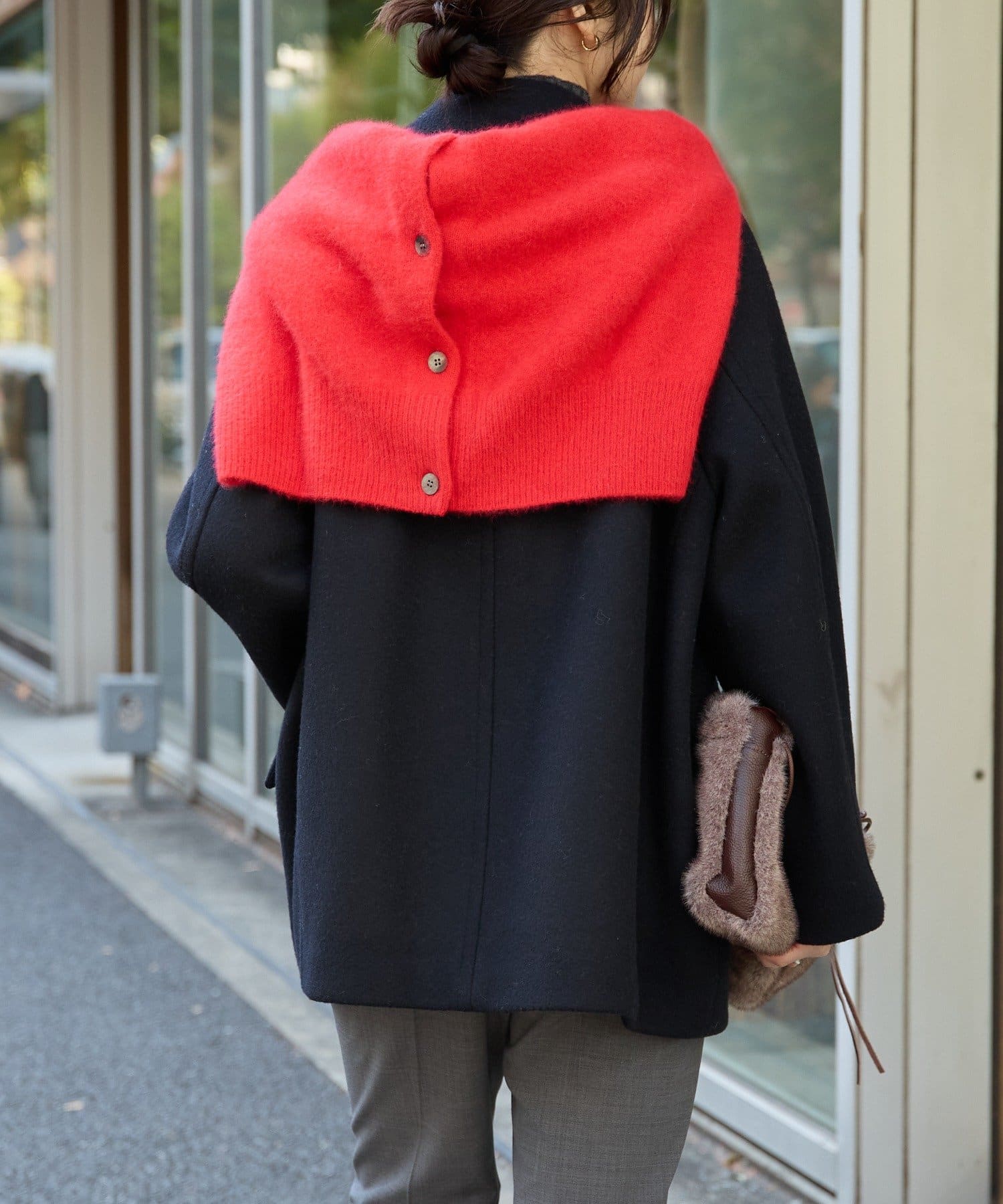 華やかに着映えしながら首元の防寒性も兼ね備えており、マフラーいらずで暖かく着用いただけます。