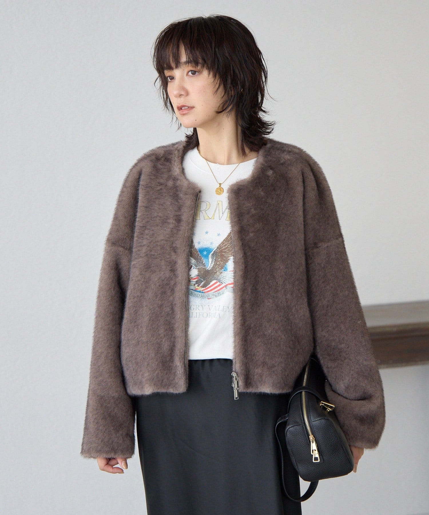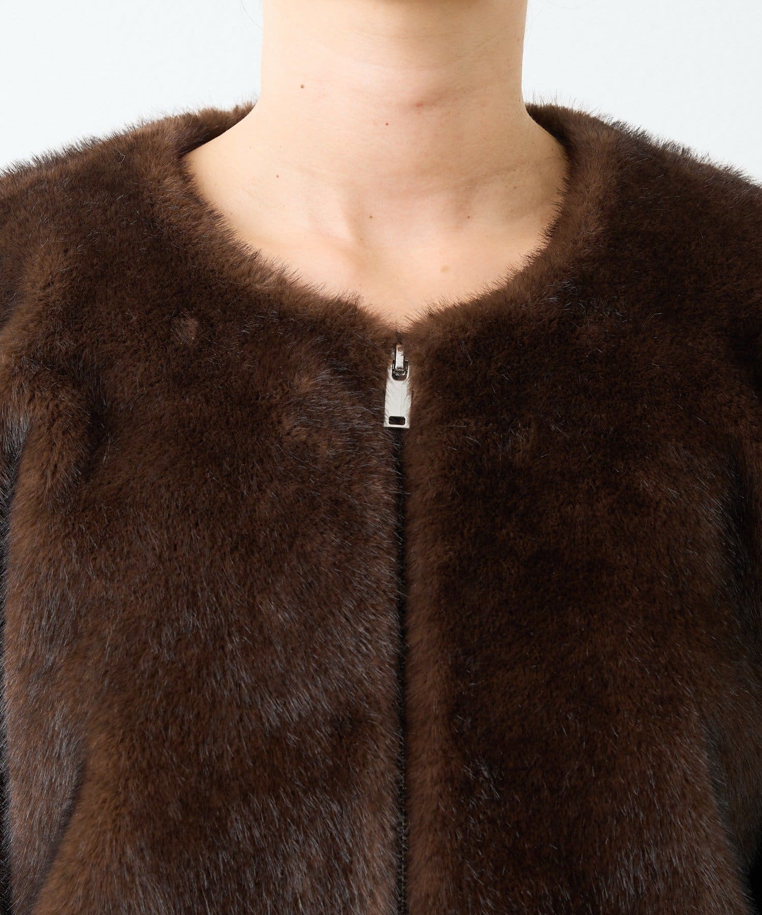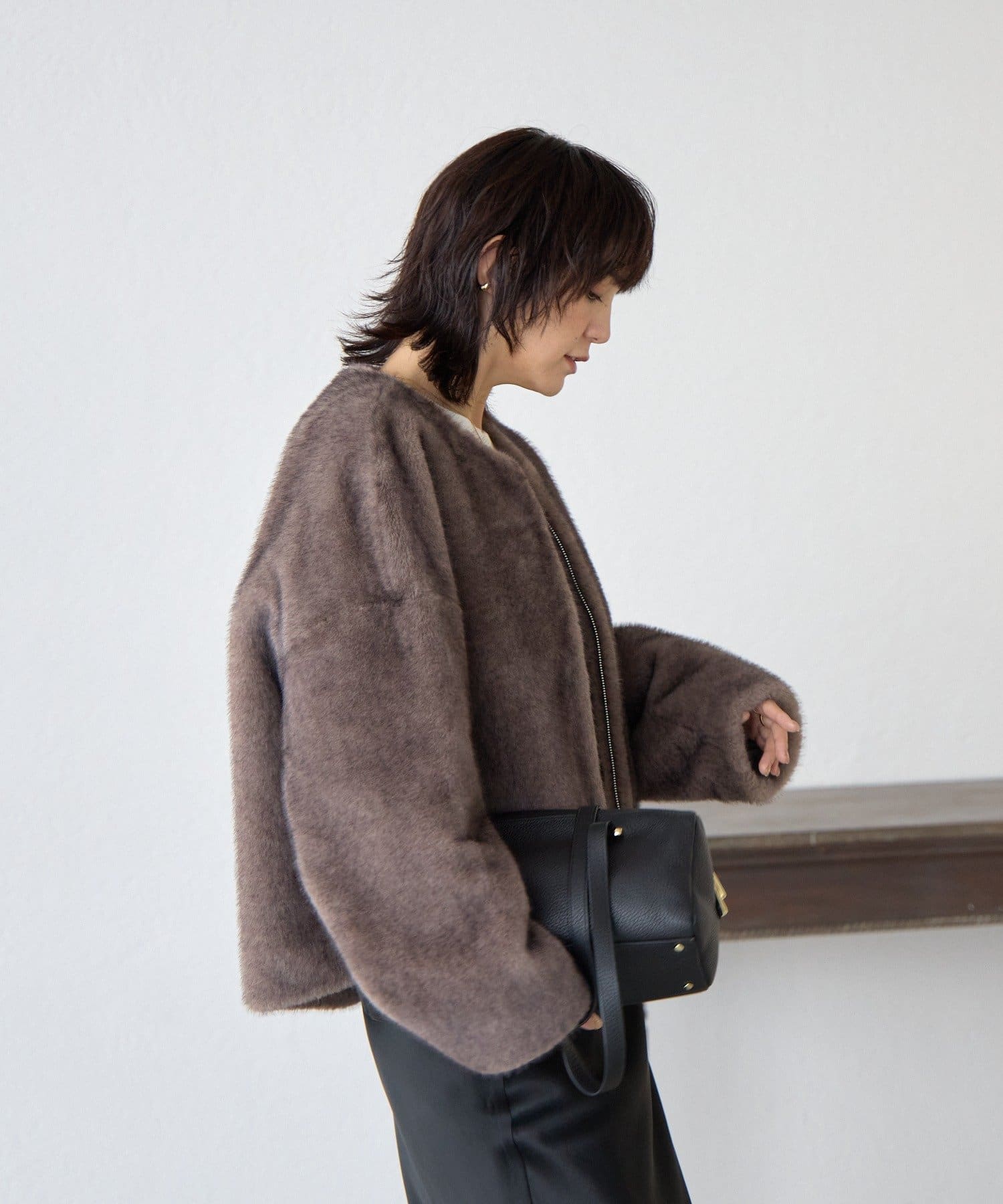 長すぎない着丈ですっきりと着れるため『ファーコートは着ぶくれが気になる…』という方にも着ていただきやすいアイテムです。