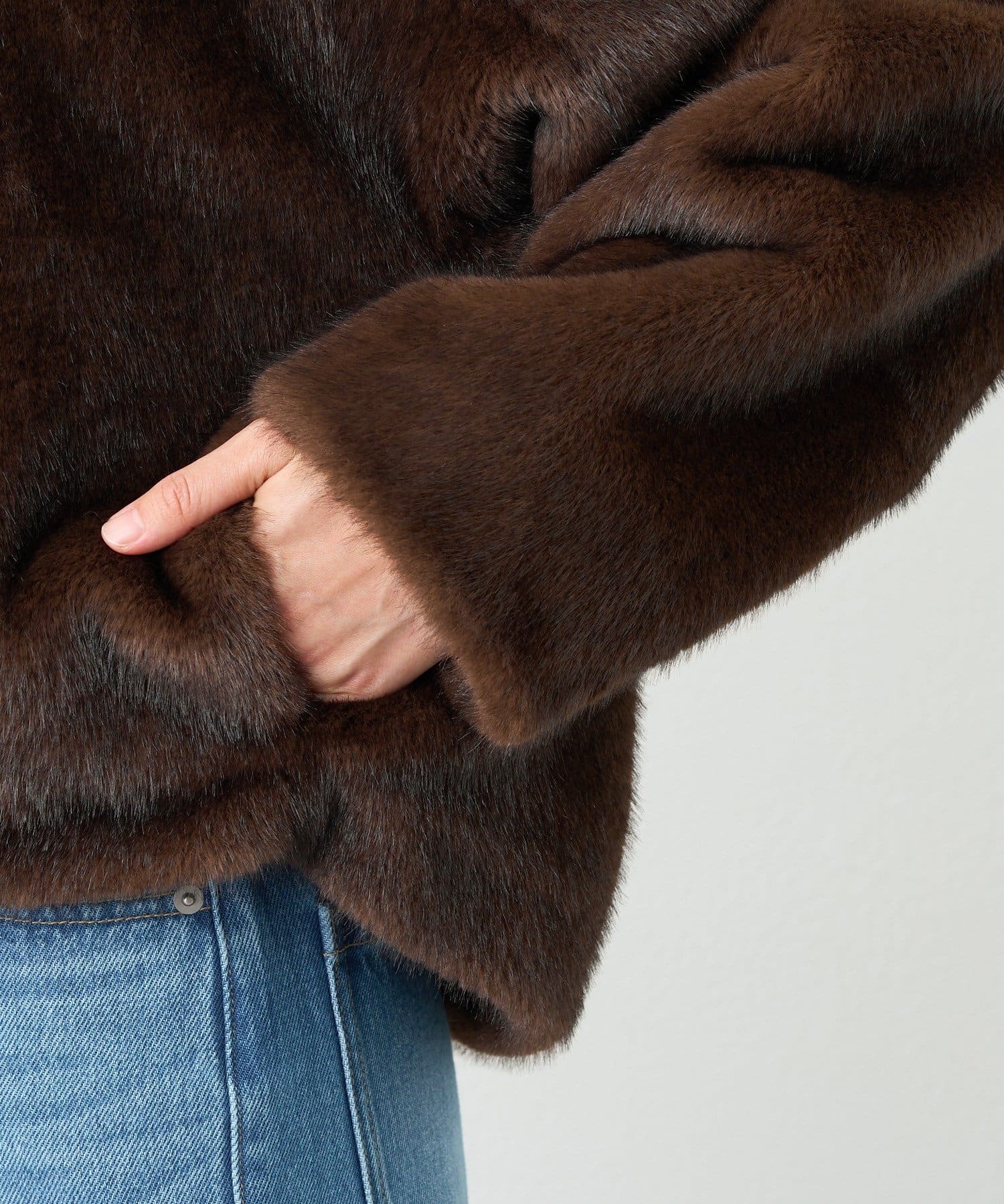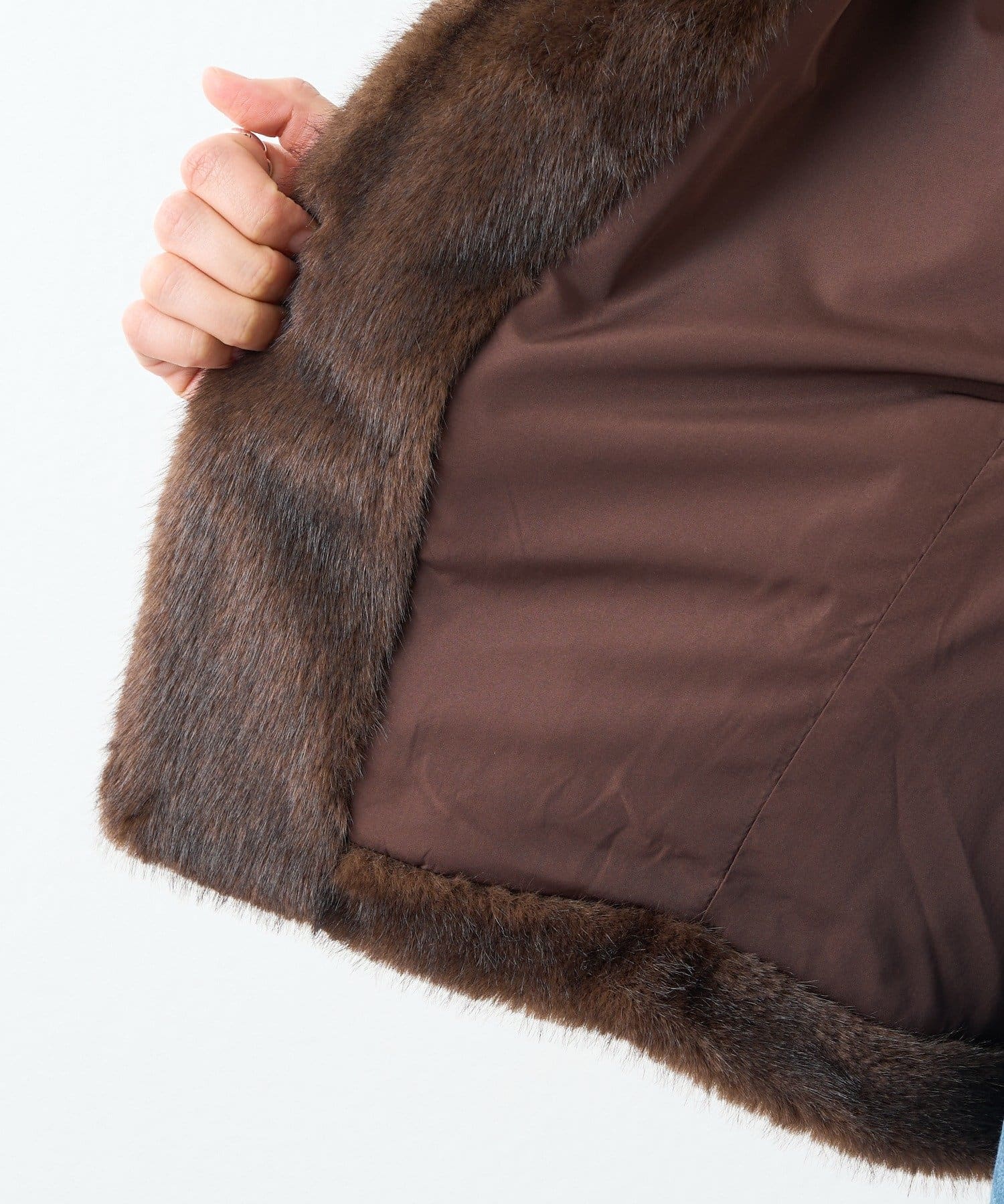 ・ミンクのようななめらかな光沢と柔らかな肌触りのフェイクファー。