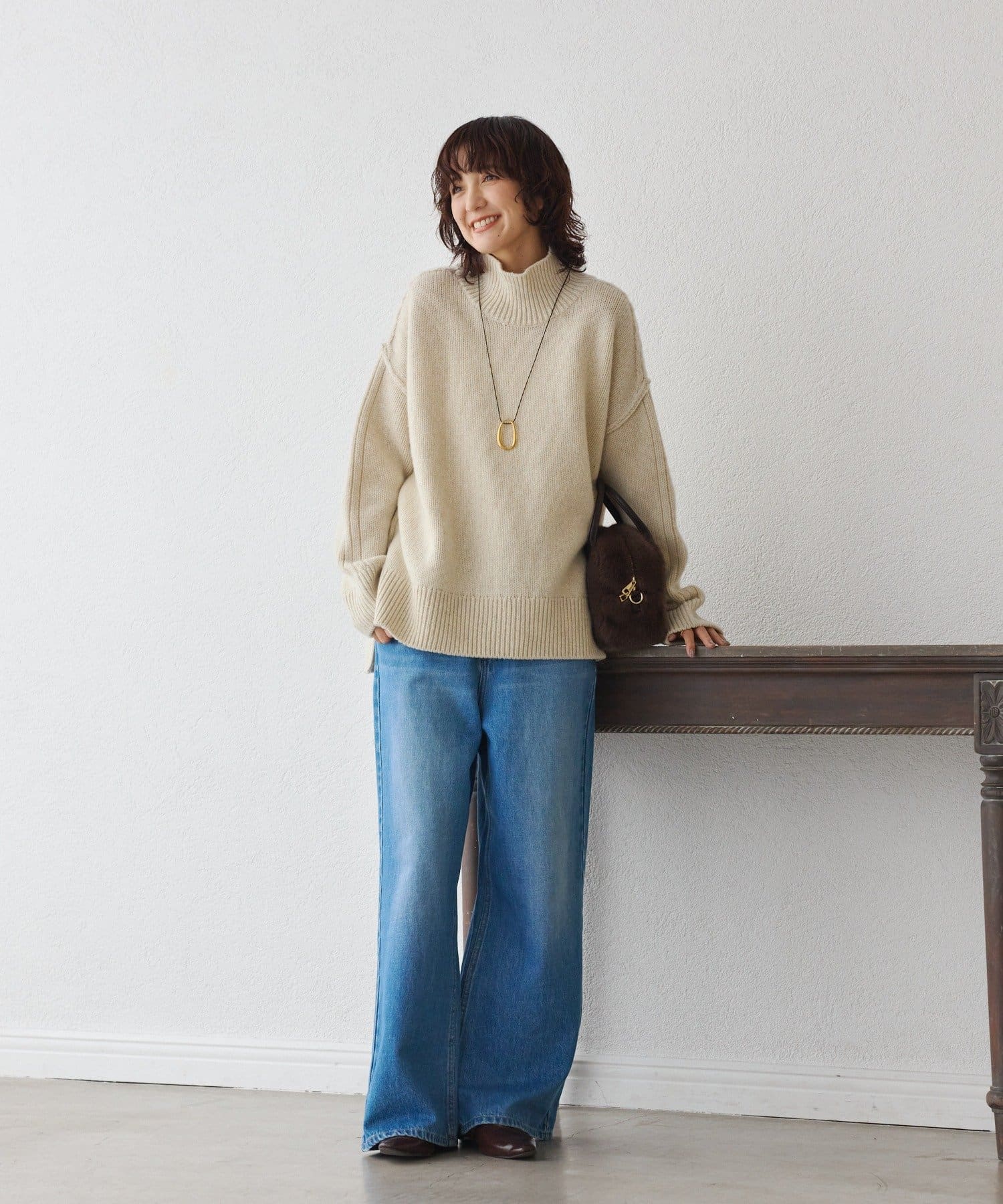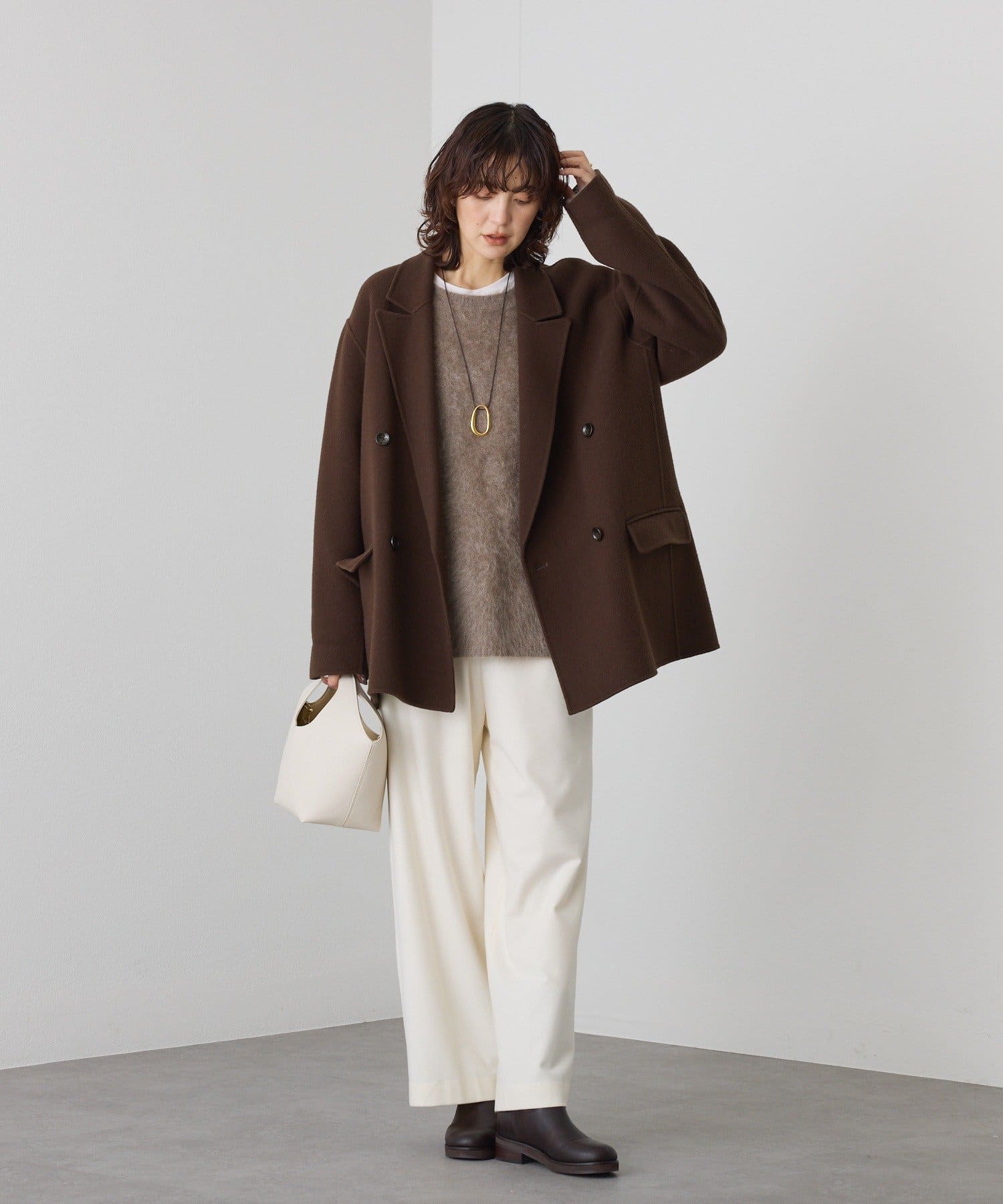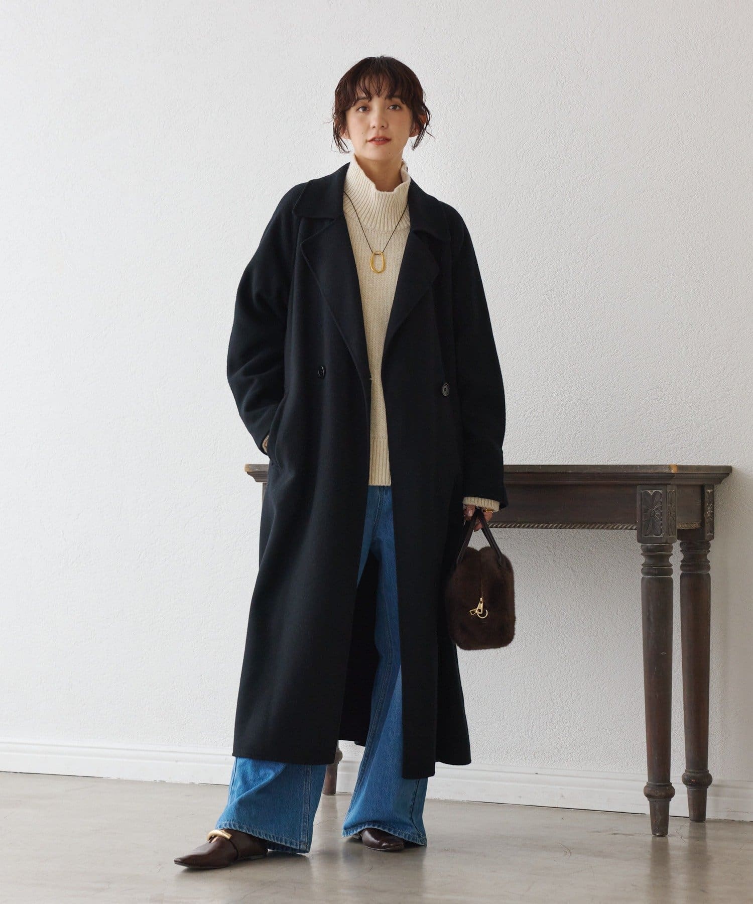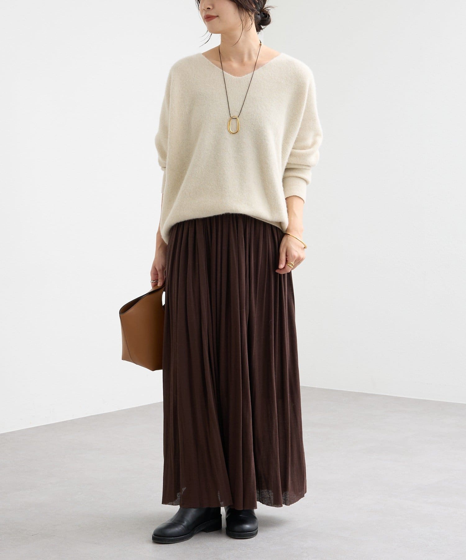 ・コードが首回りの印象を引き締めてくれてこなれたスタイリングに仕上げてくれる