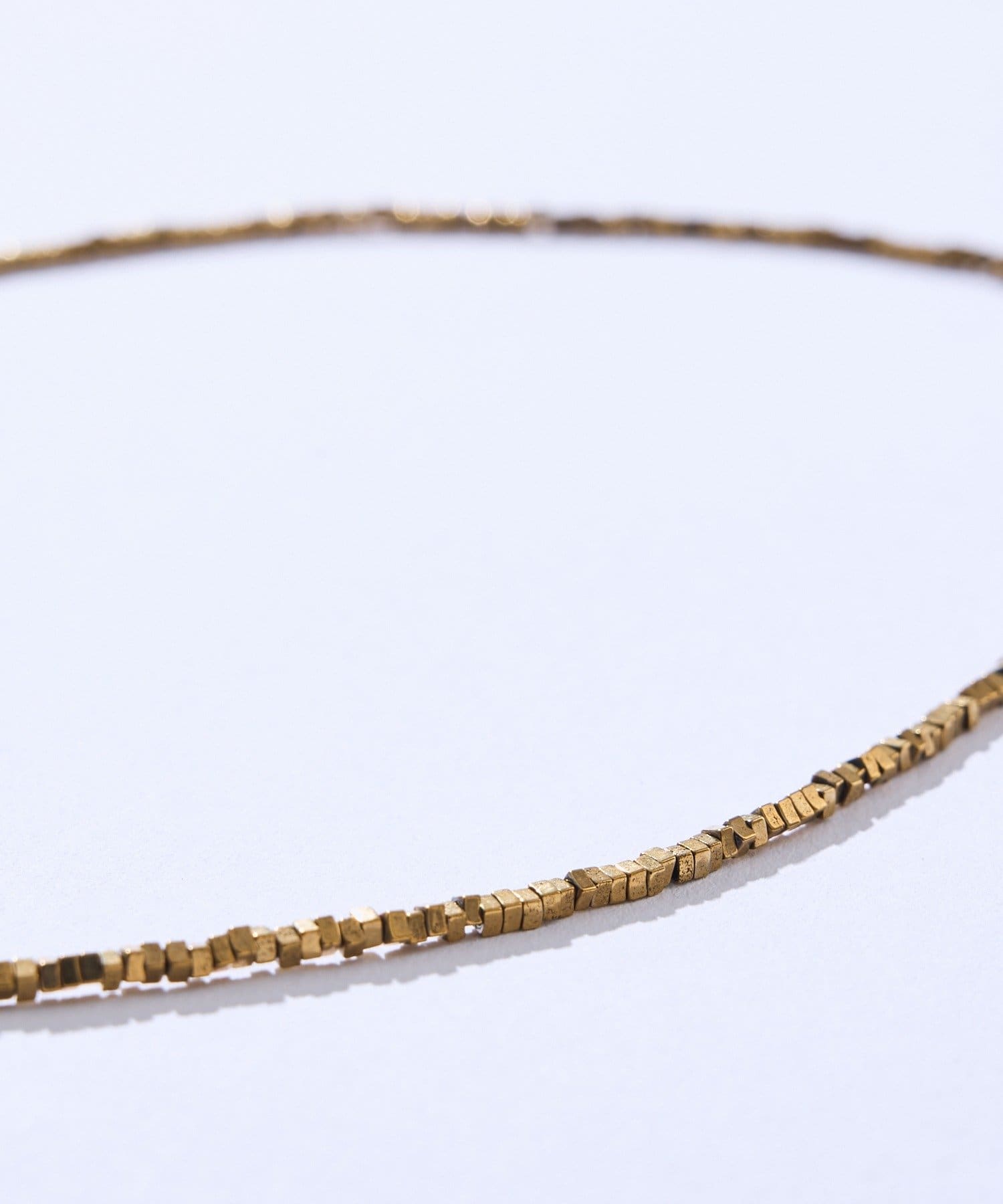 ・スクエアカットのヘマタイトビーズが首元にさりげないアクセントをプラス