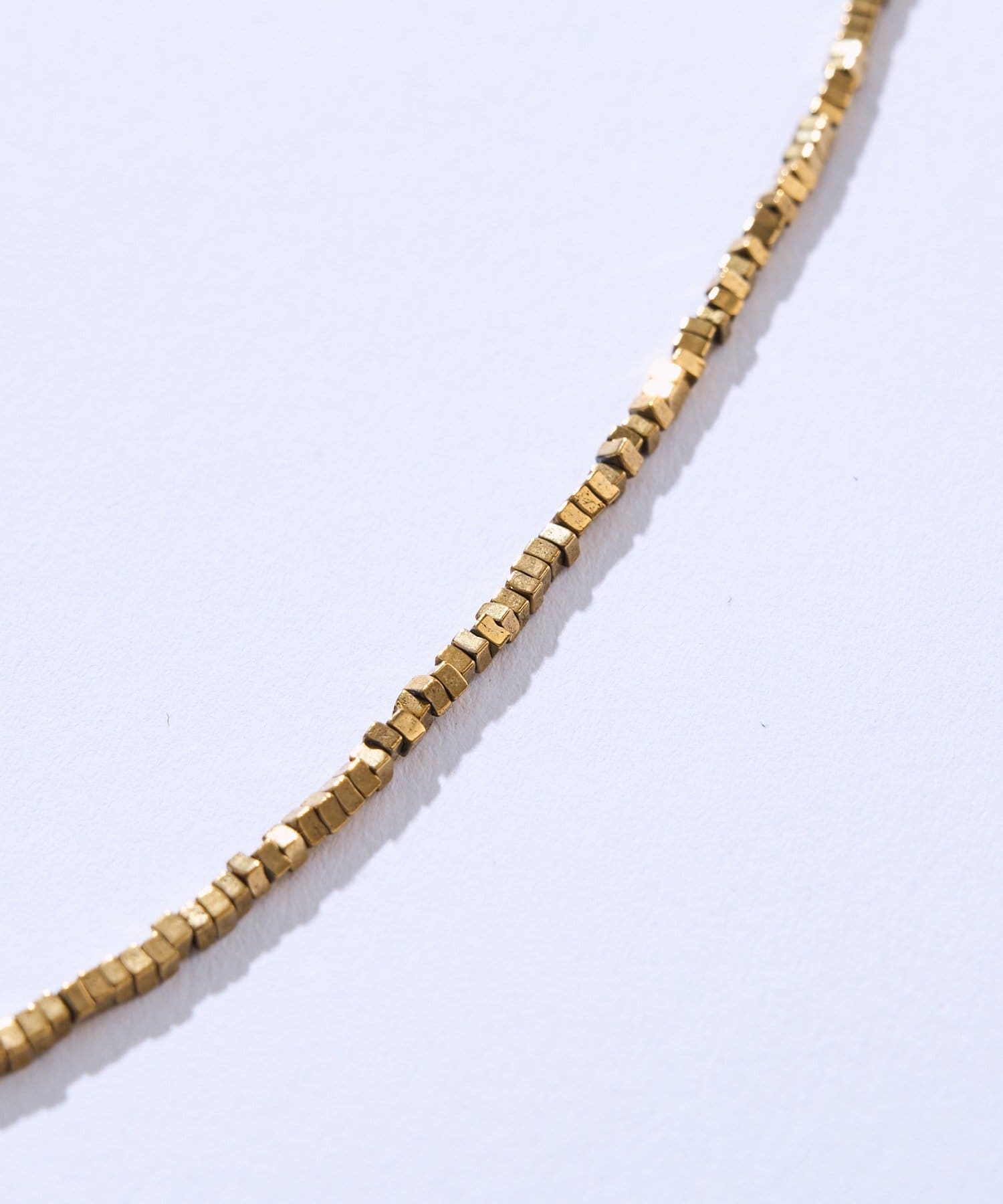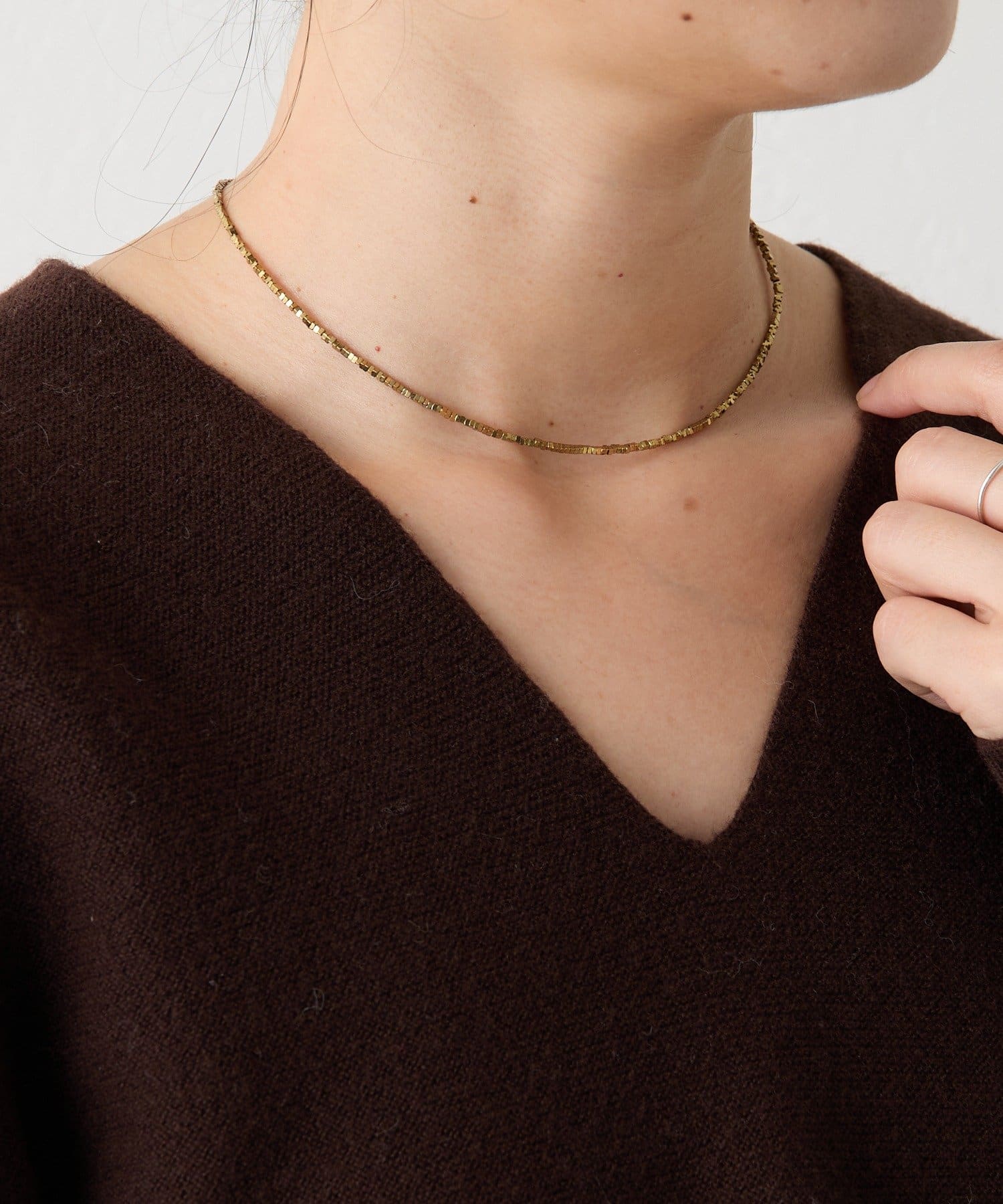 ・スクエアカットのヘマタイトビーズが首元にさりげないアクセントをプラス