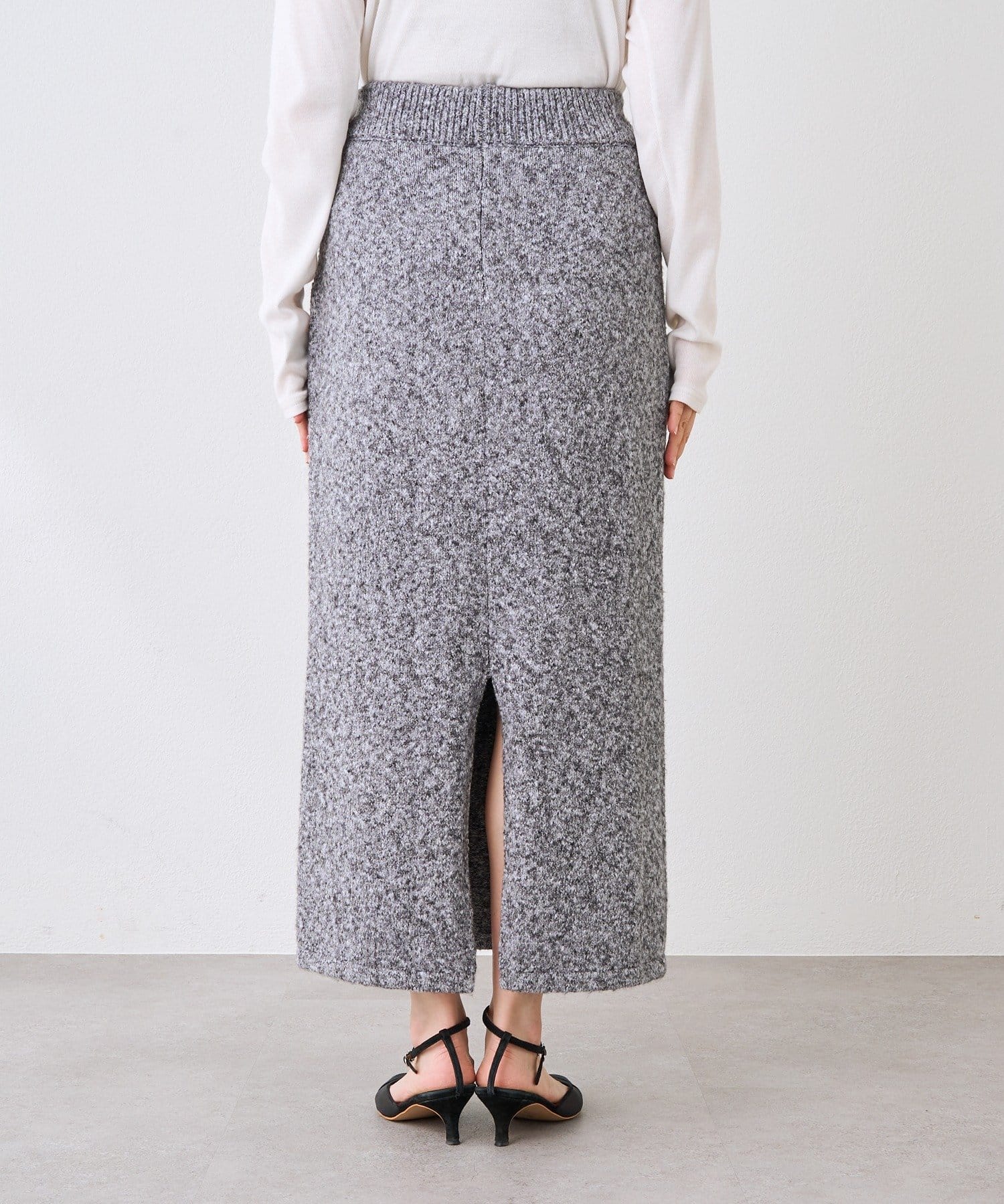 • ストレッチ入りで、目の詰まった編地のタイトスカート