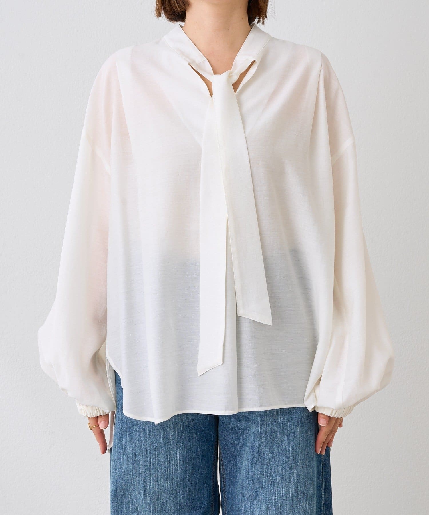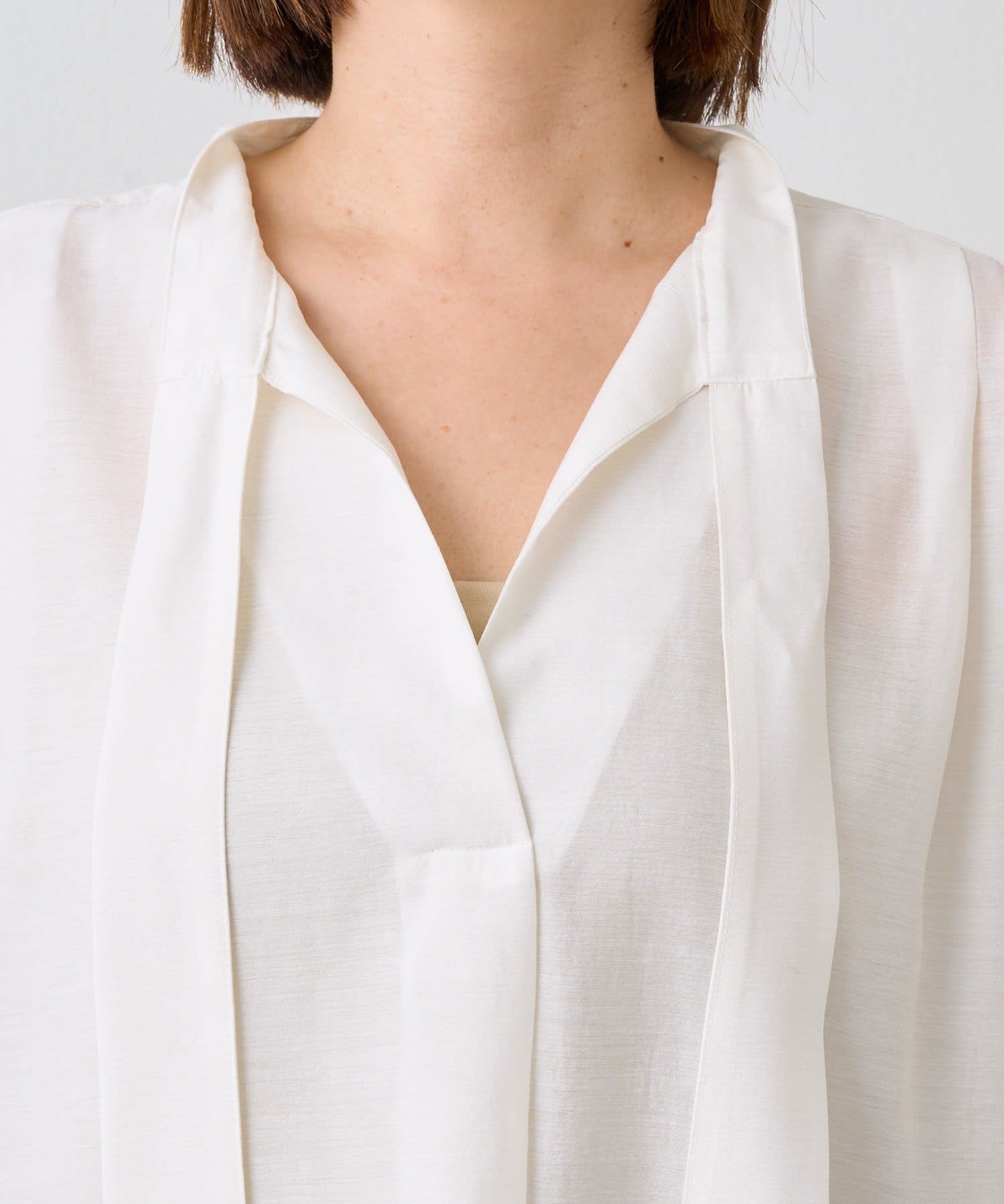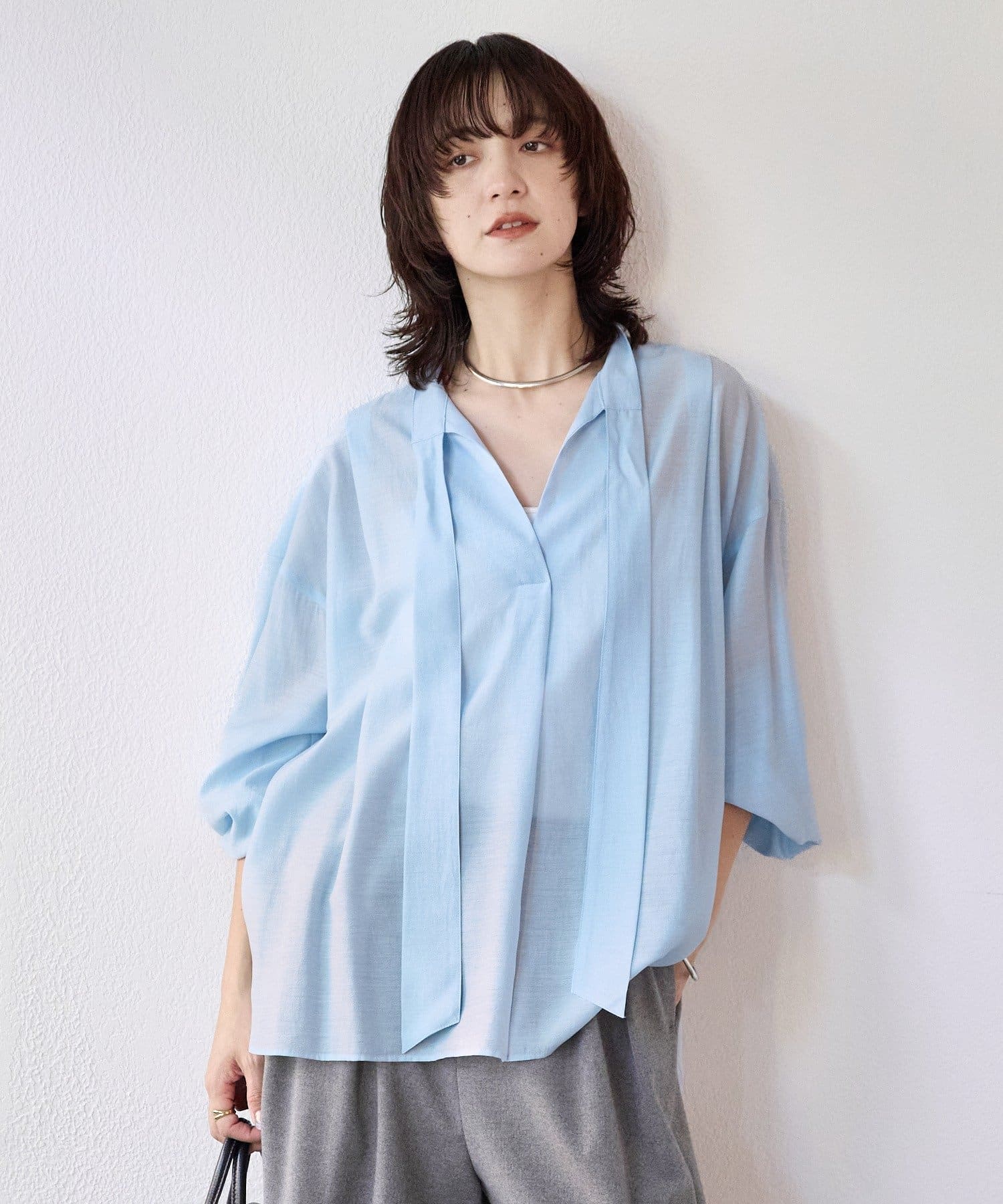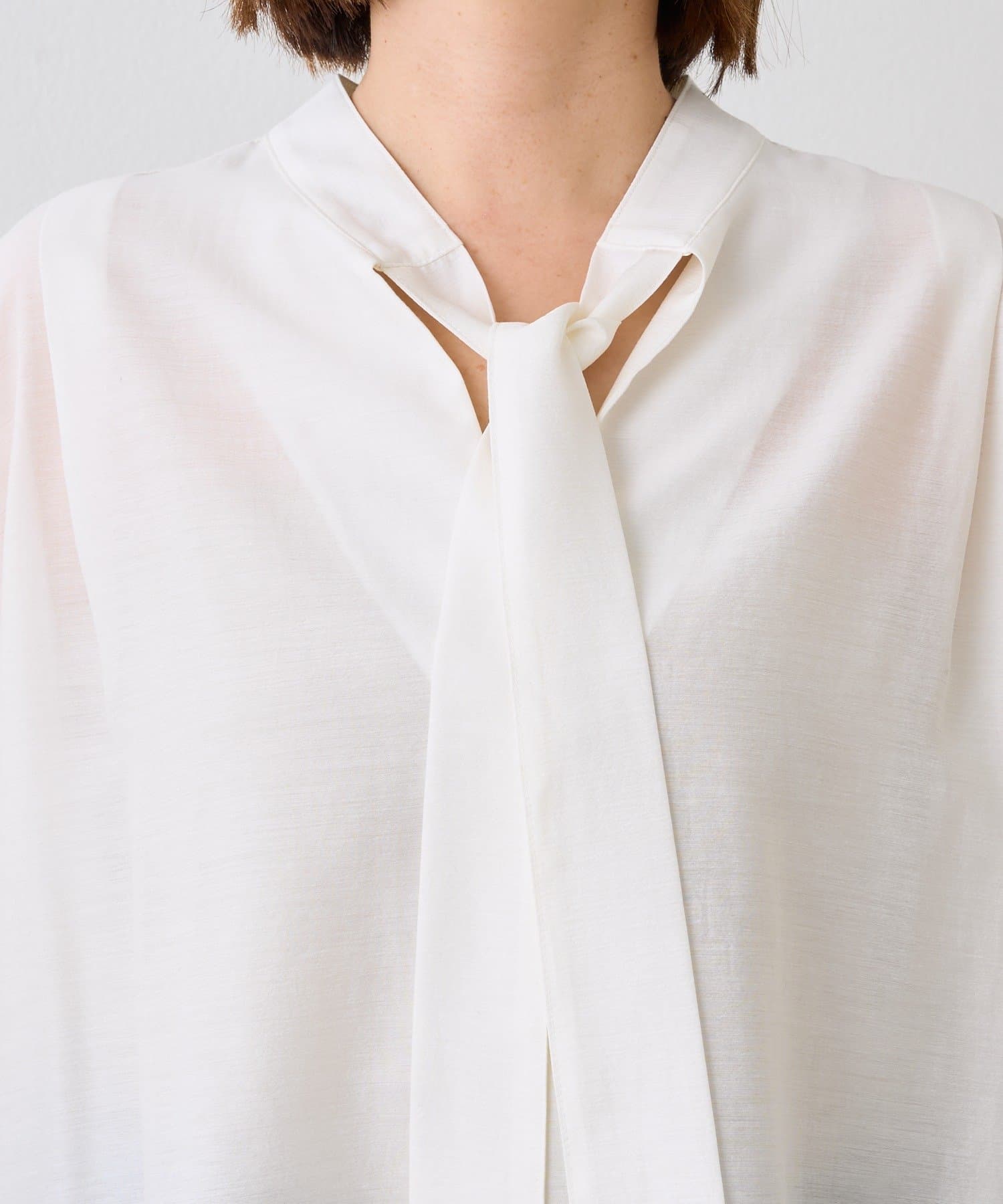 ・細幅のボウタイディテールが上品なブラウス