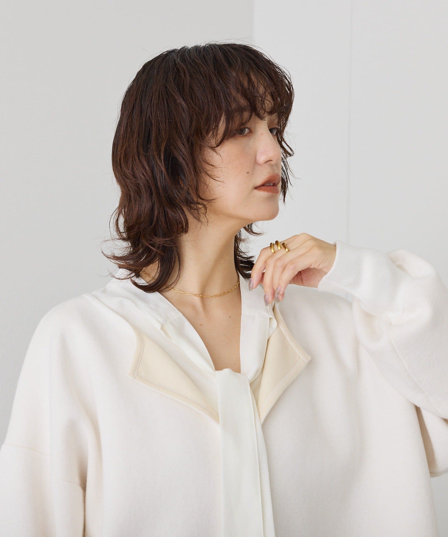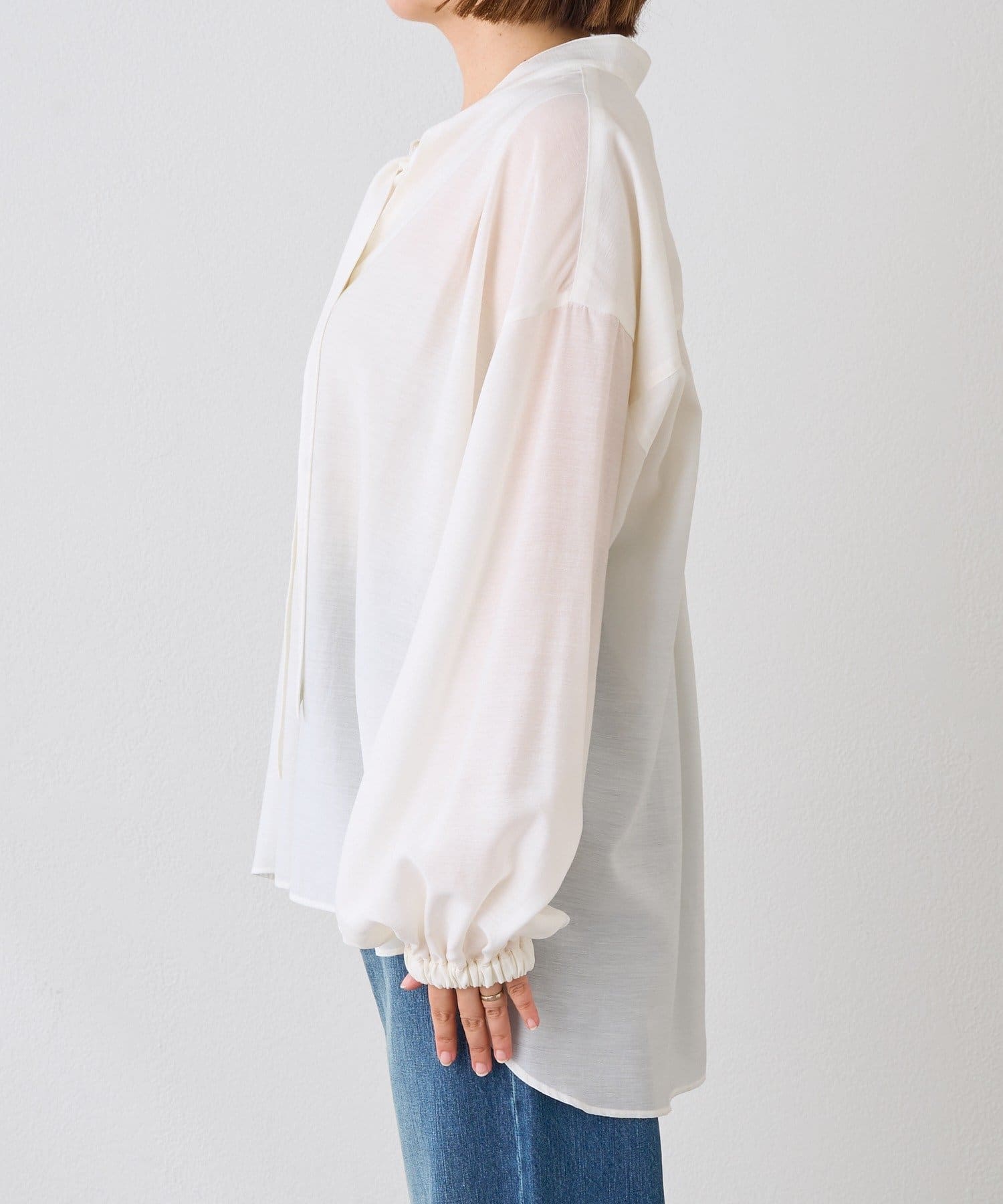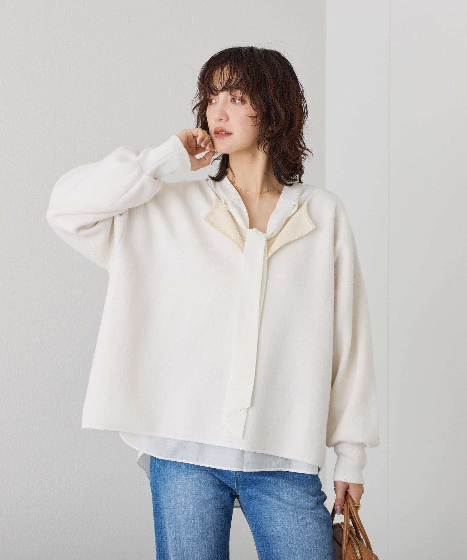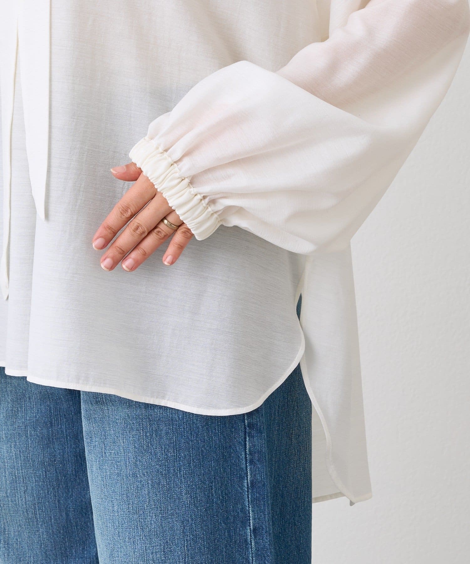・細幅のボウタイディテールが上品なブラウス