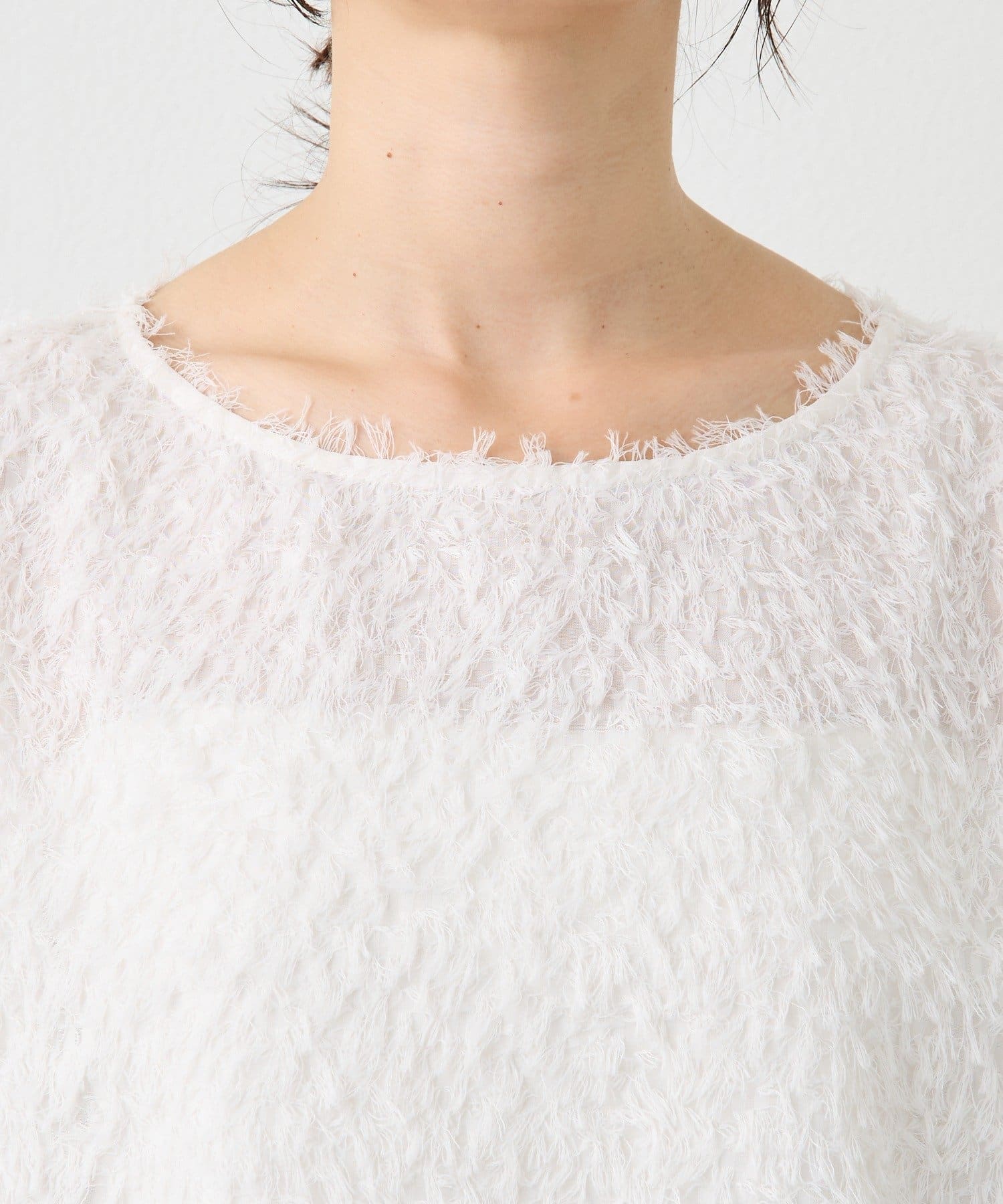 • ボートネックと両脇のスリットで自然な抜け感を演出