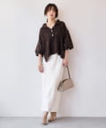 ・後丈が長めのゆるっとしたシルエットと袖口のボリューム感で、女性らしい抜け感を出してくれます