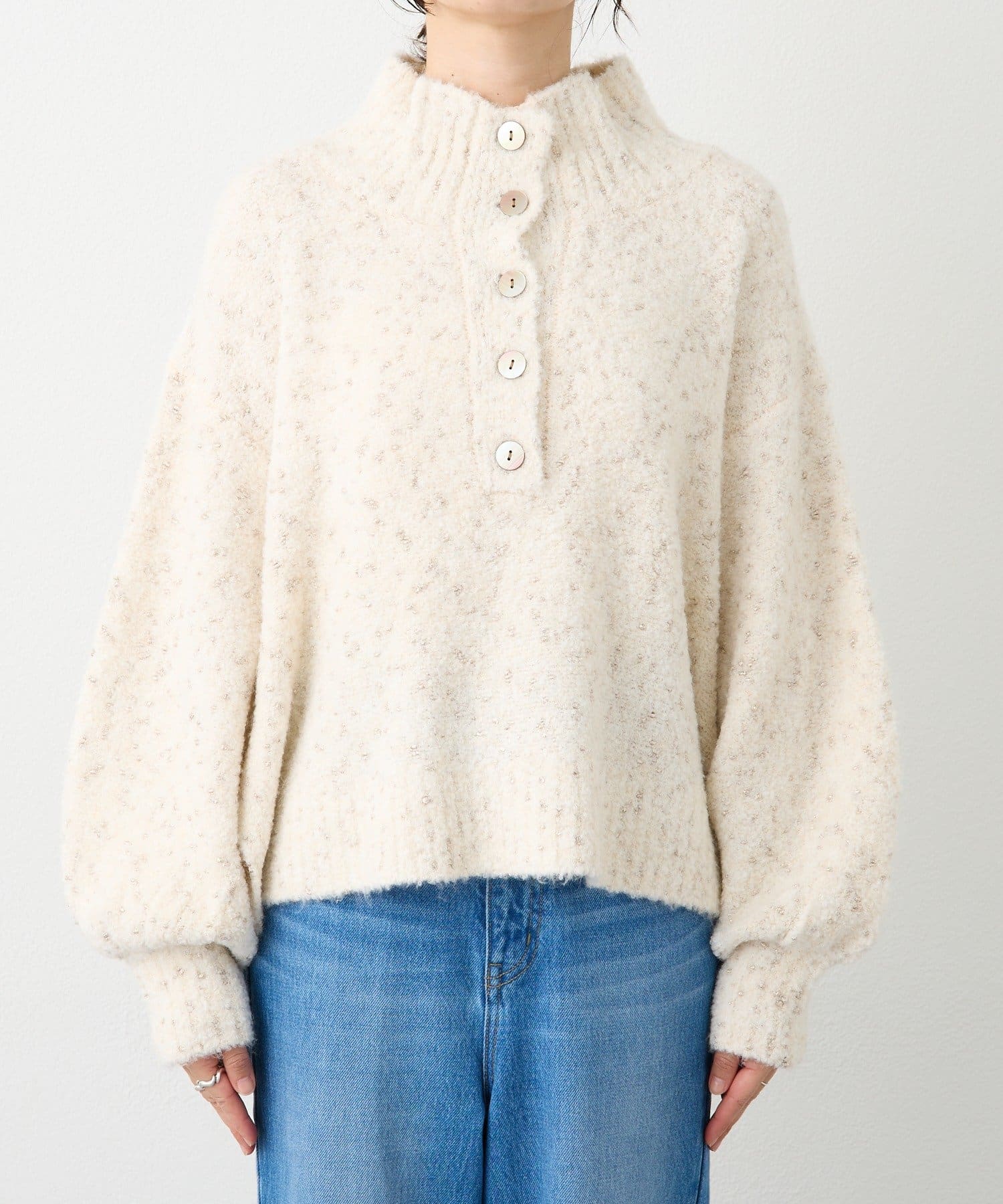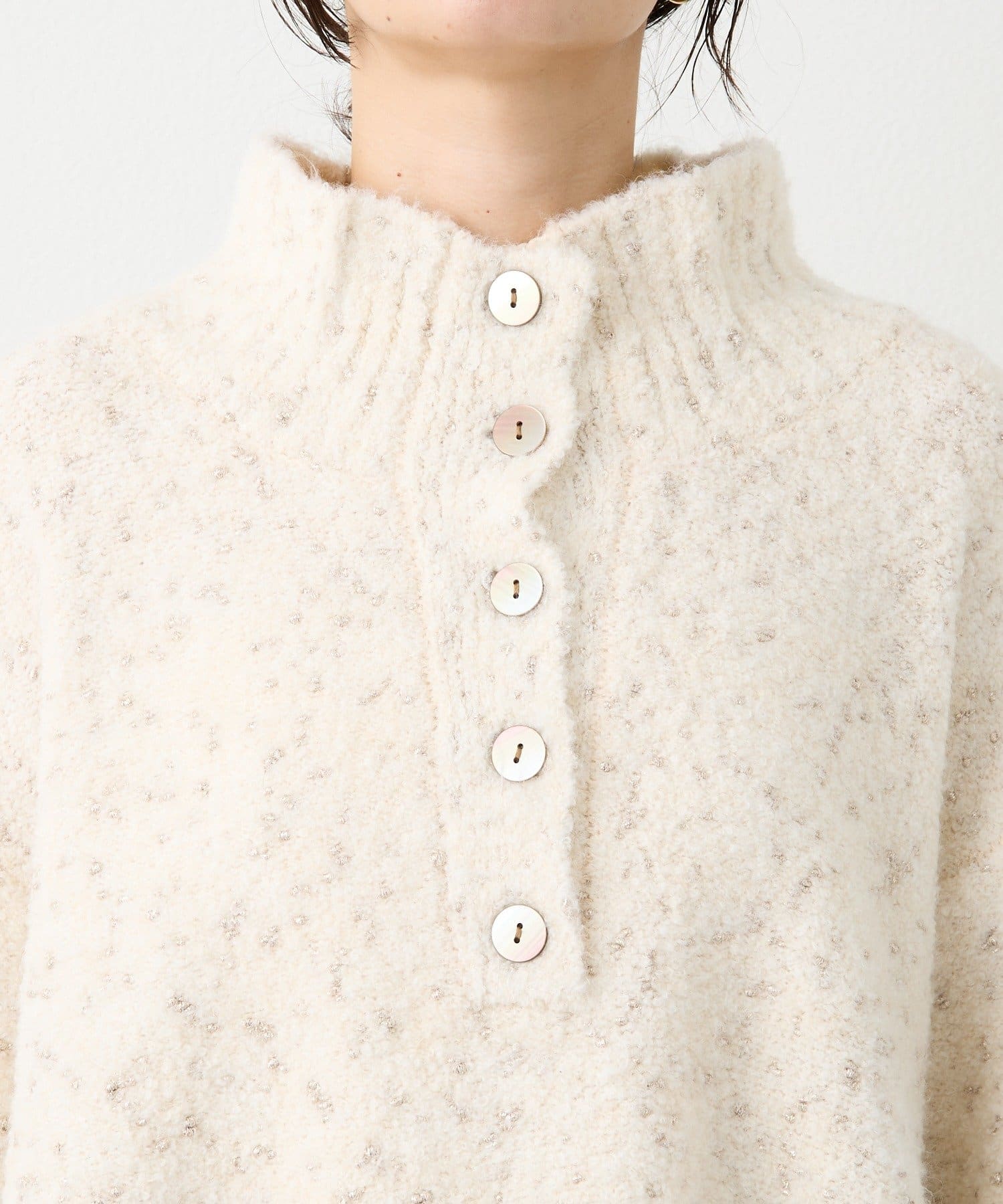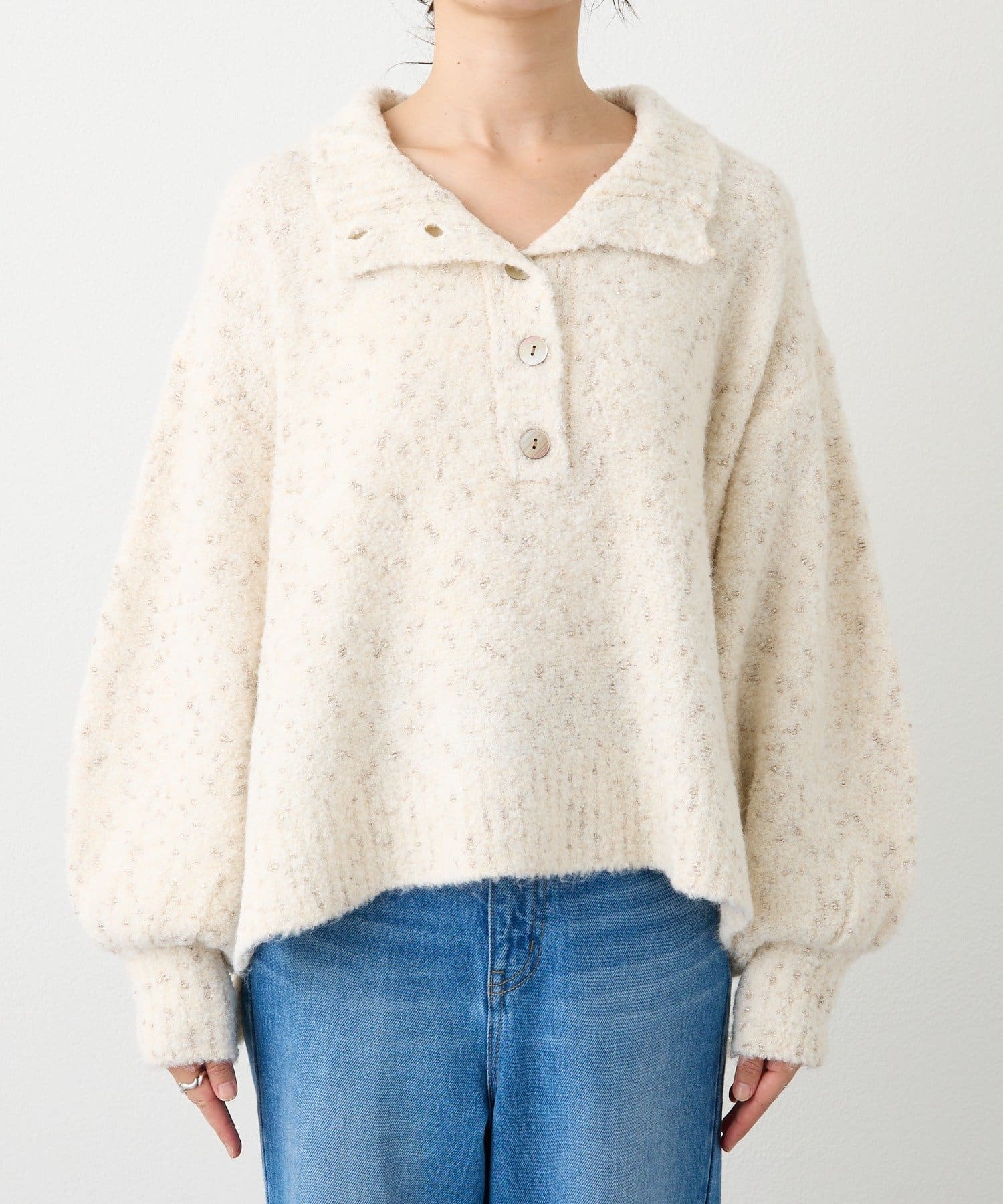 衿のアレンジで、タートルとしてもスキッパーとしてもお使いいただけるニット