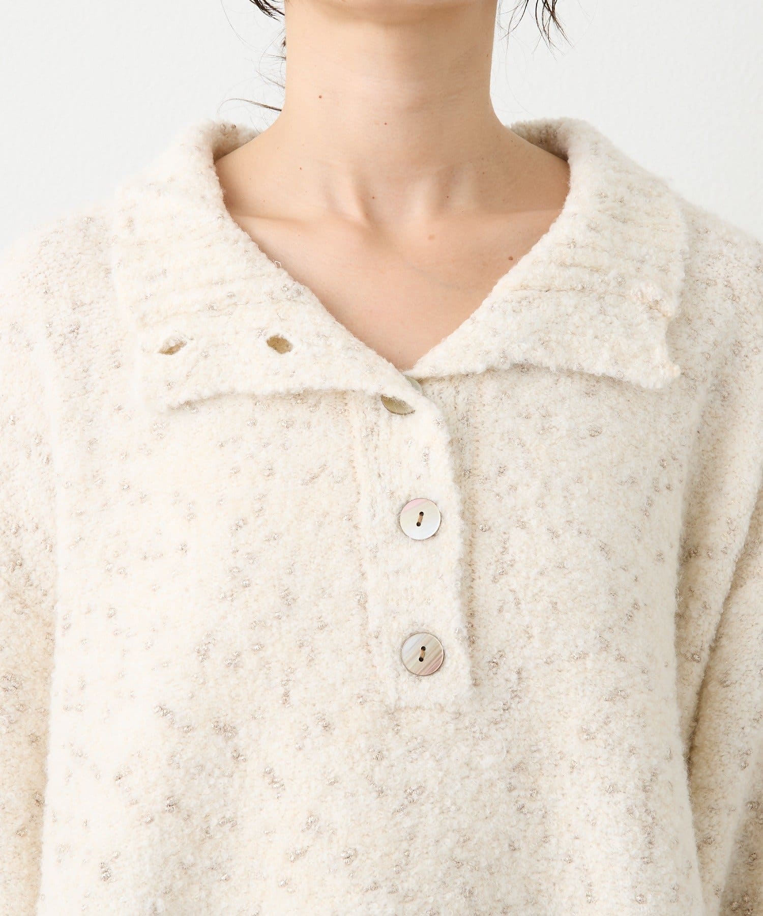 ・衿のアレンジで、タートルとしてもスキッパーとしてもお使いいただけるニットプルオーバー