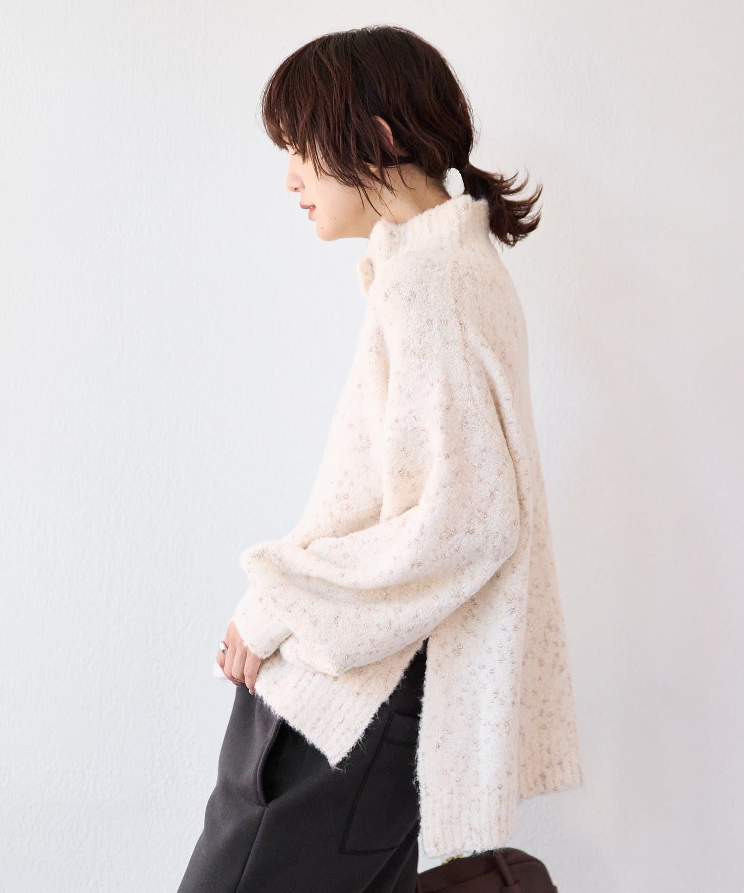 TOP > RIVE DROITE > レディース > トップス > ニット/セーター > 予約【キャッチーな編地】ラメノット2wayタートル/1月中旬お届け予定