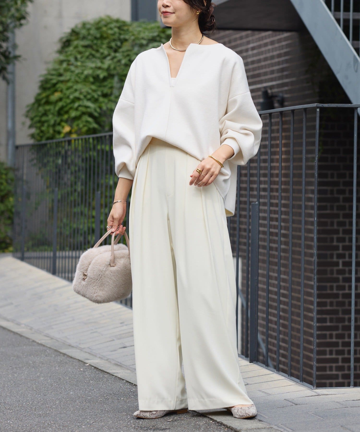 ・ボート風の衿あきとスッキリしたキーネックで抜け感もたっぷり。