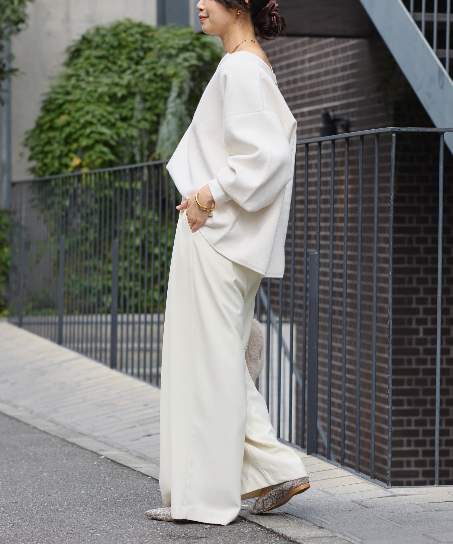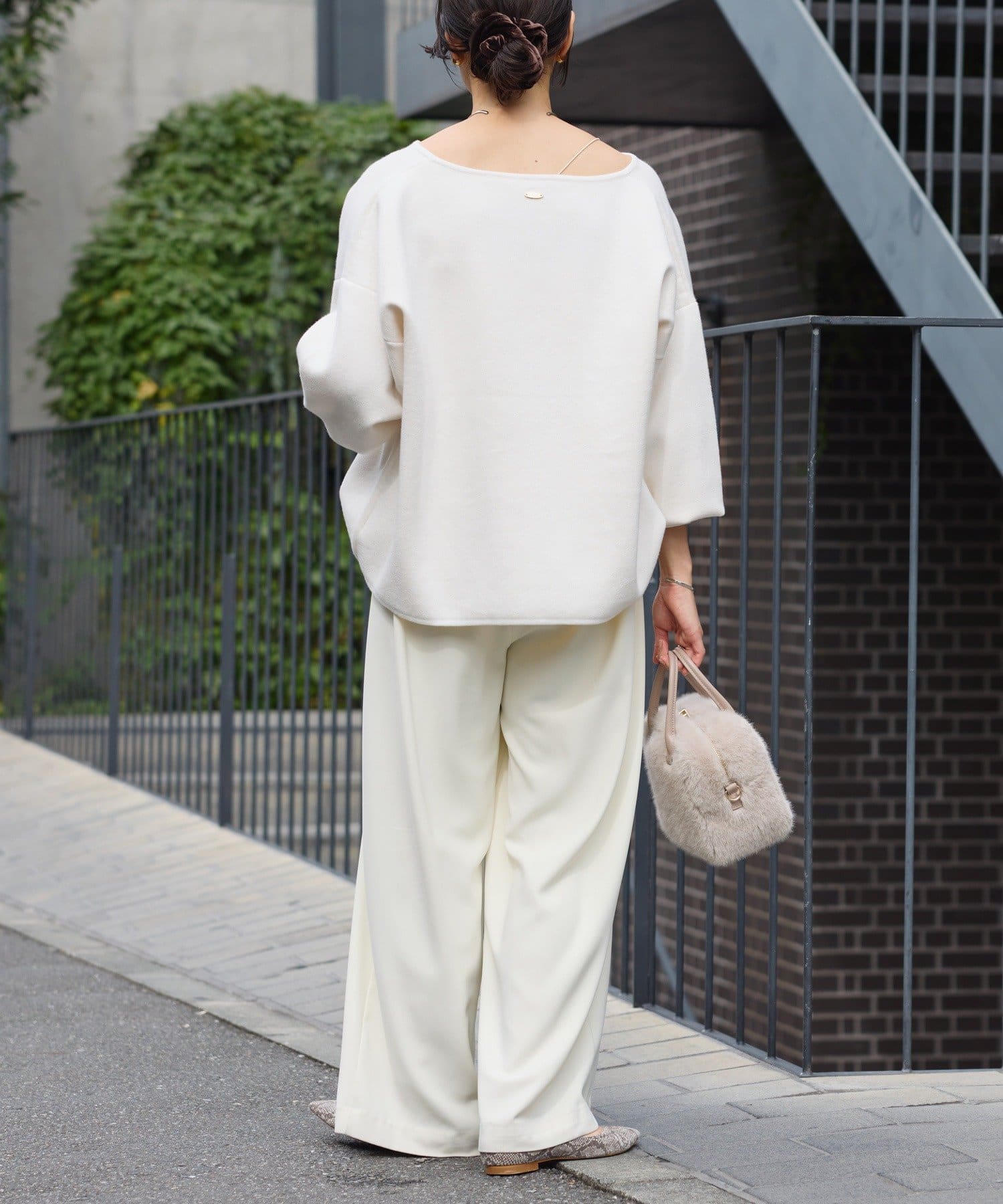 • ボート風の衿あきとスッキリしたキーネックで抜け感もたっぷり