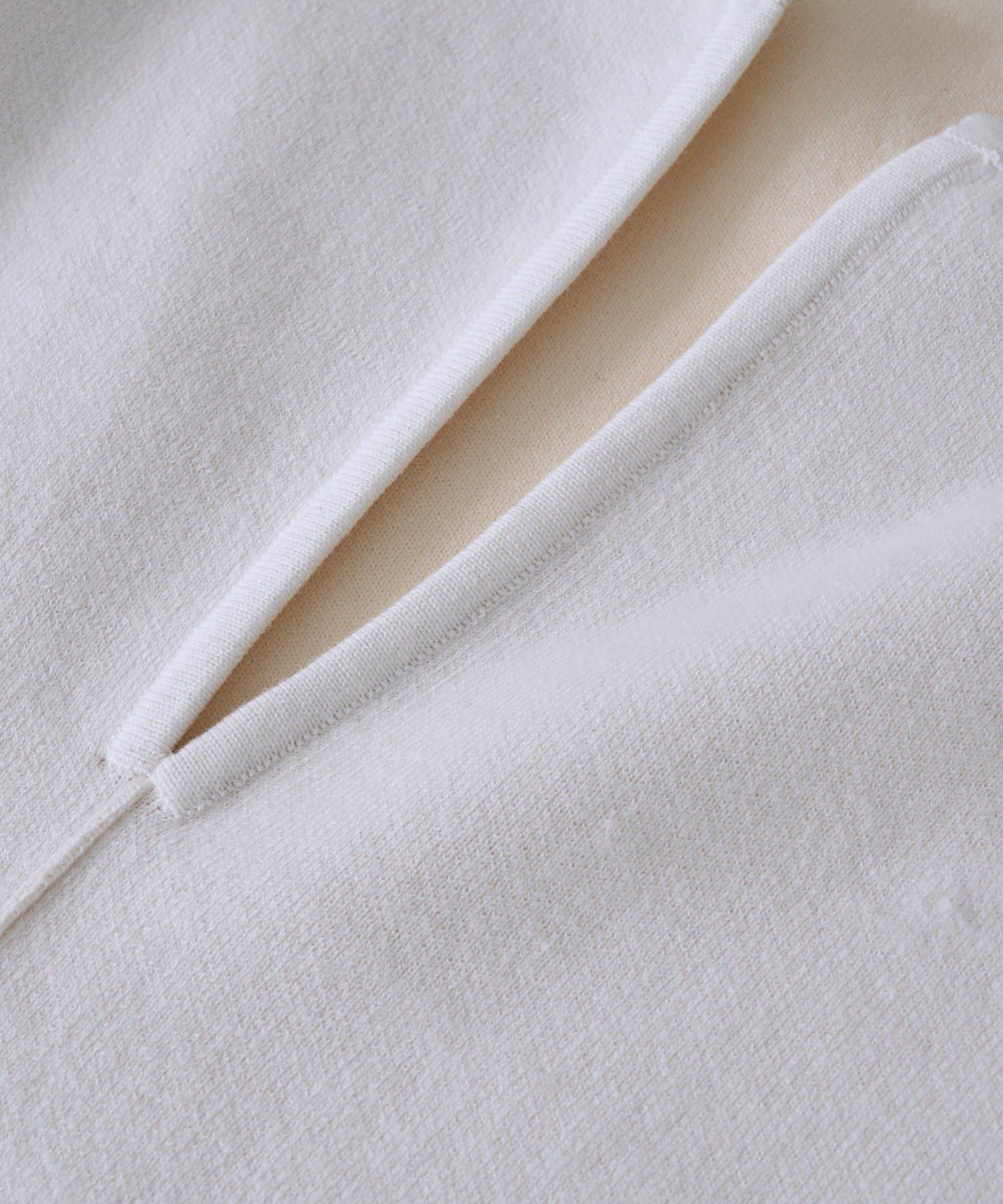 ・綿カシミヤとストレッチヤーンのダブルフェイスニット。ダンボールのようなクッション性が特徴。