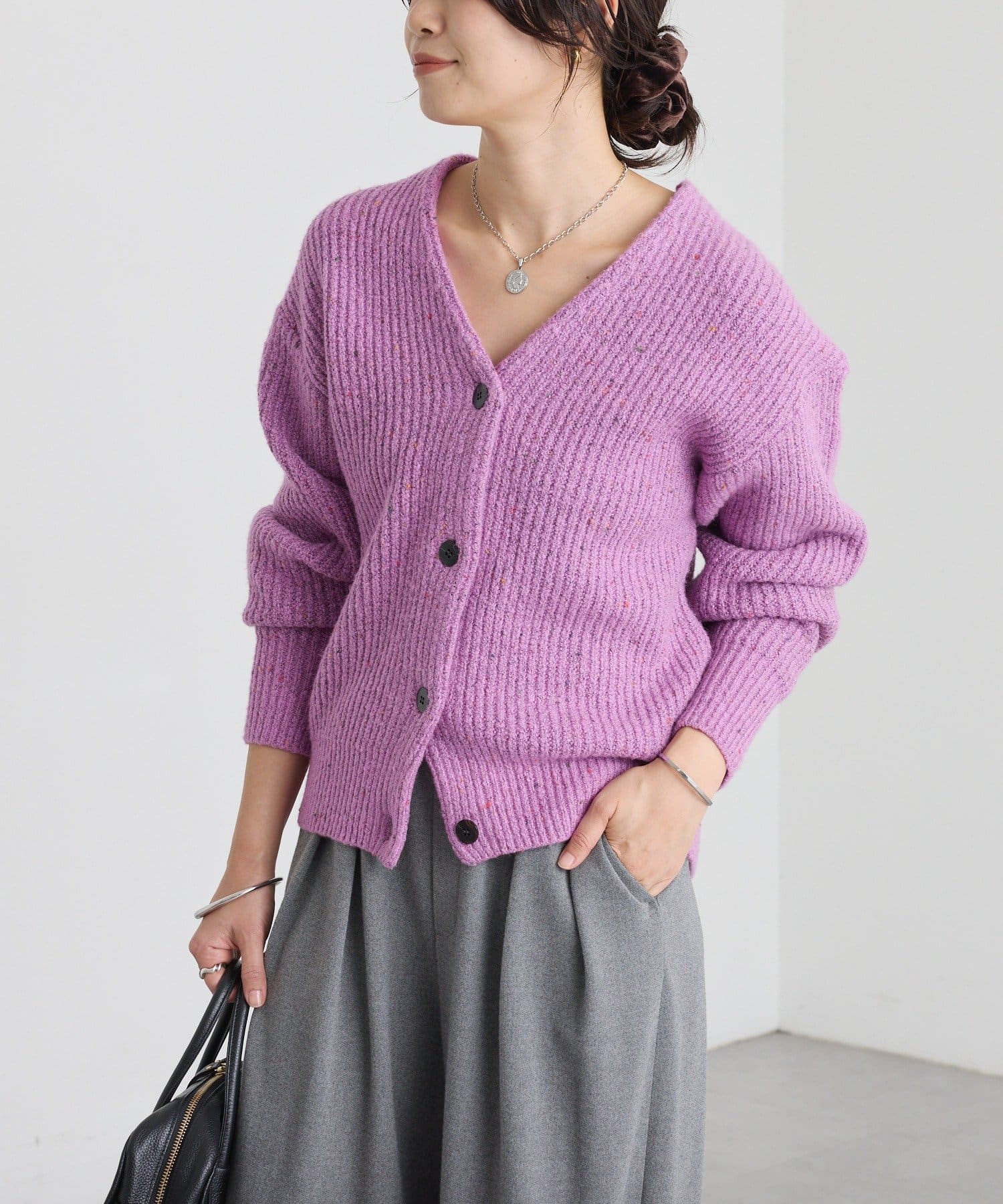 予約【キャッチーな素材感】ブークレーヤーンカーディガン