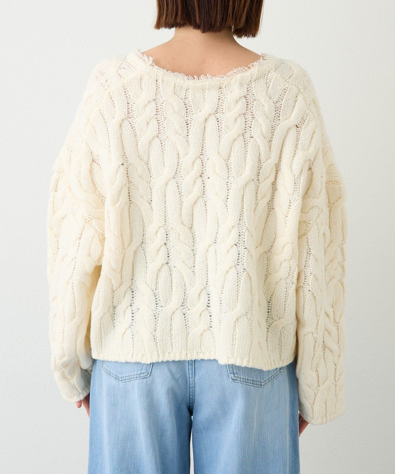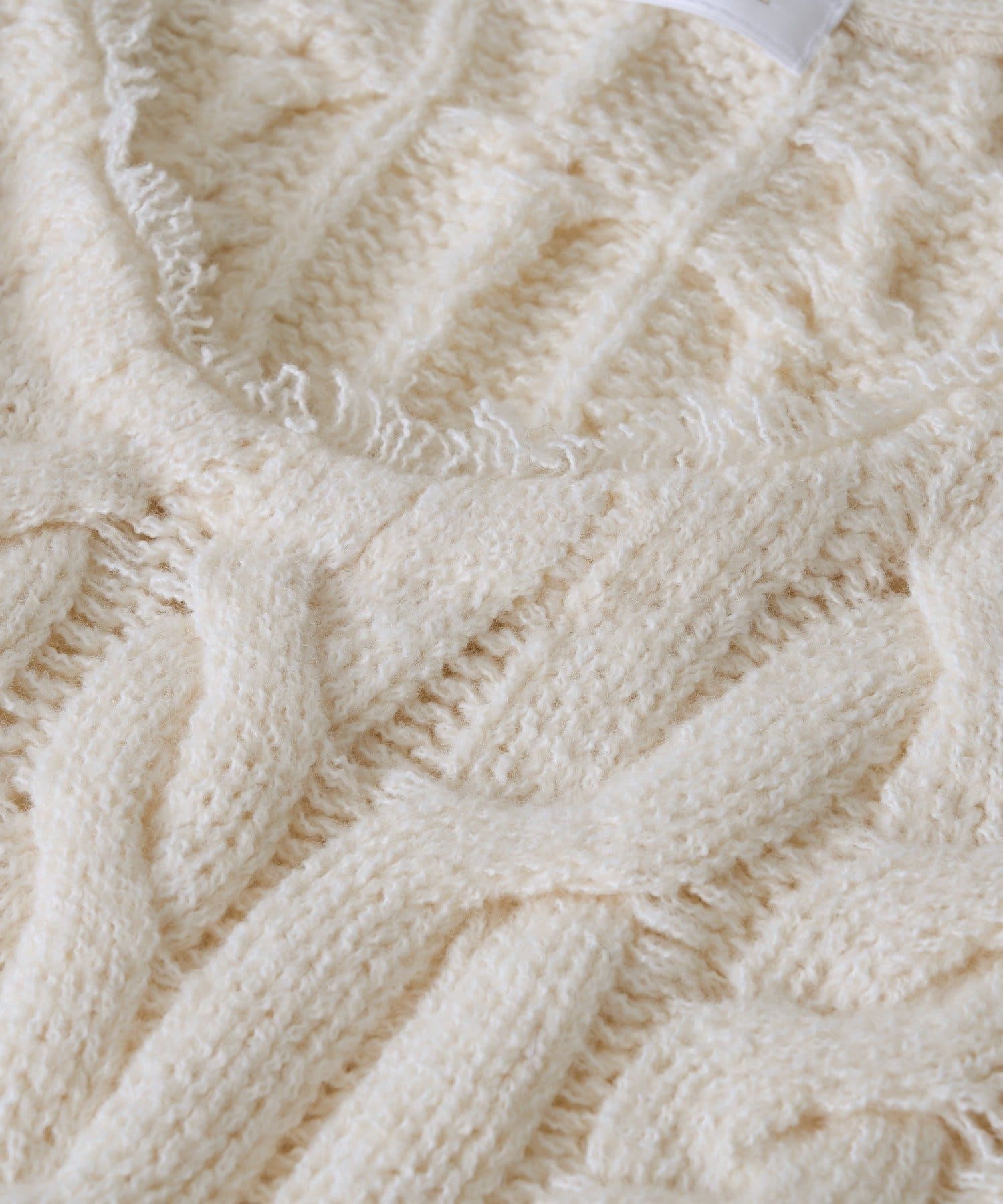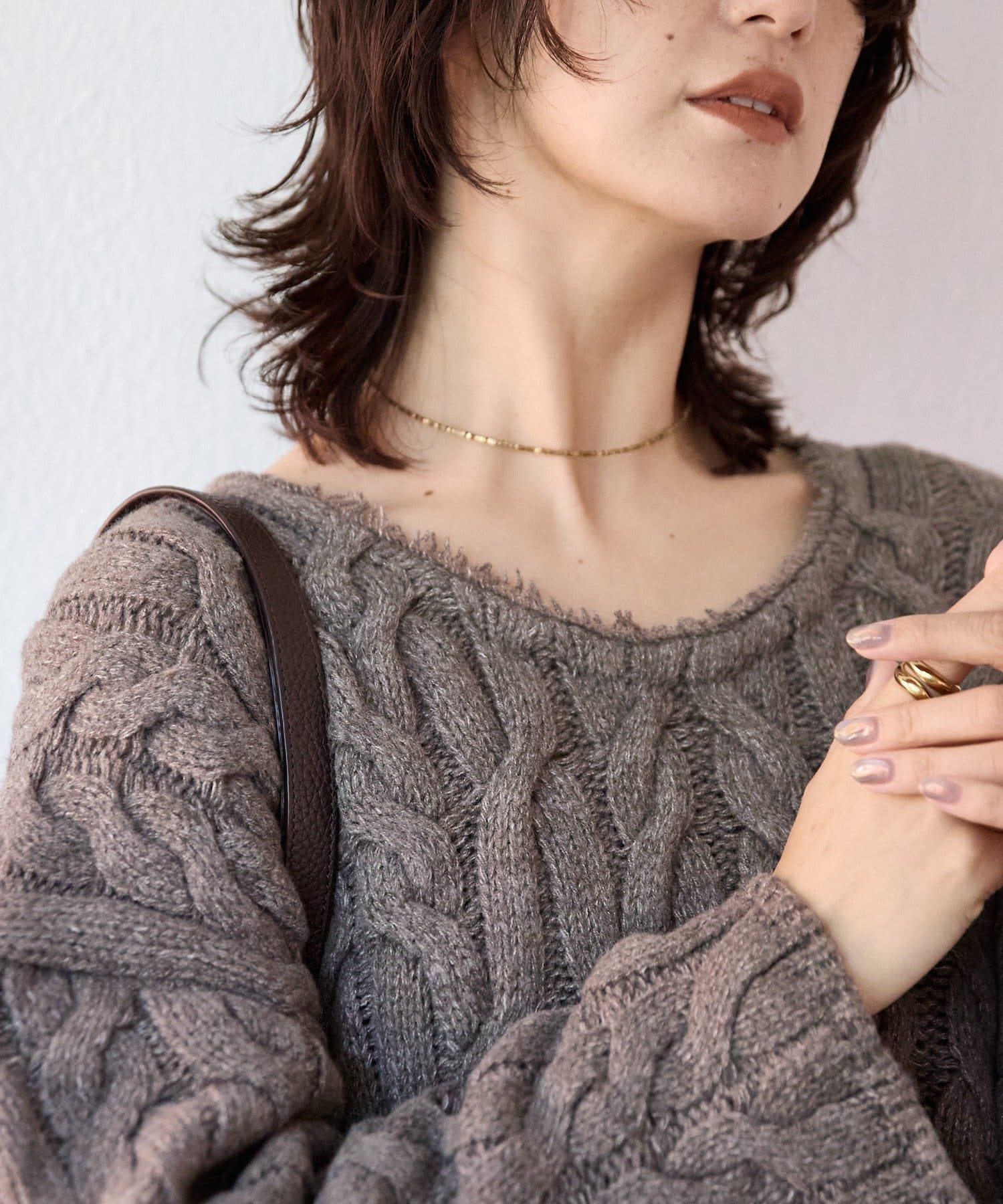 【大人のこなれ感を演出】フリンジネックケーブルニット