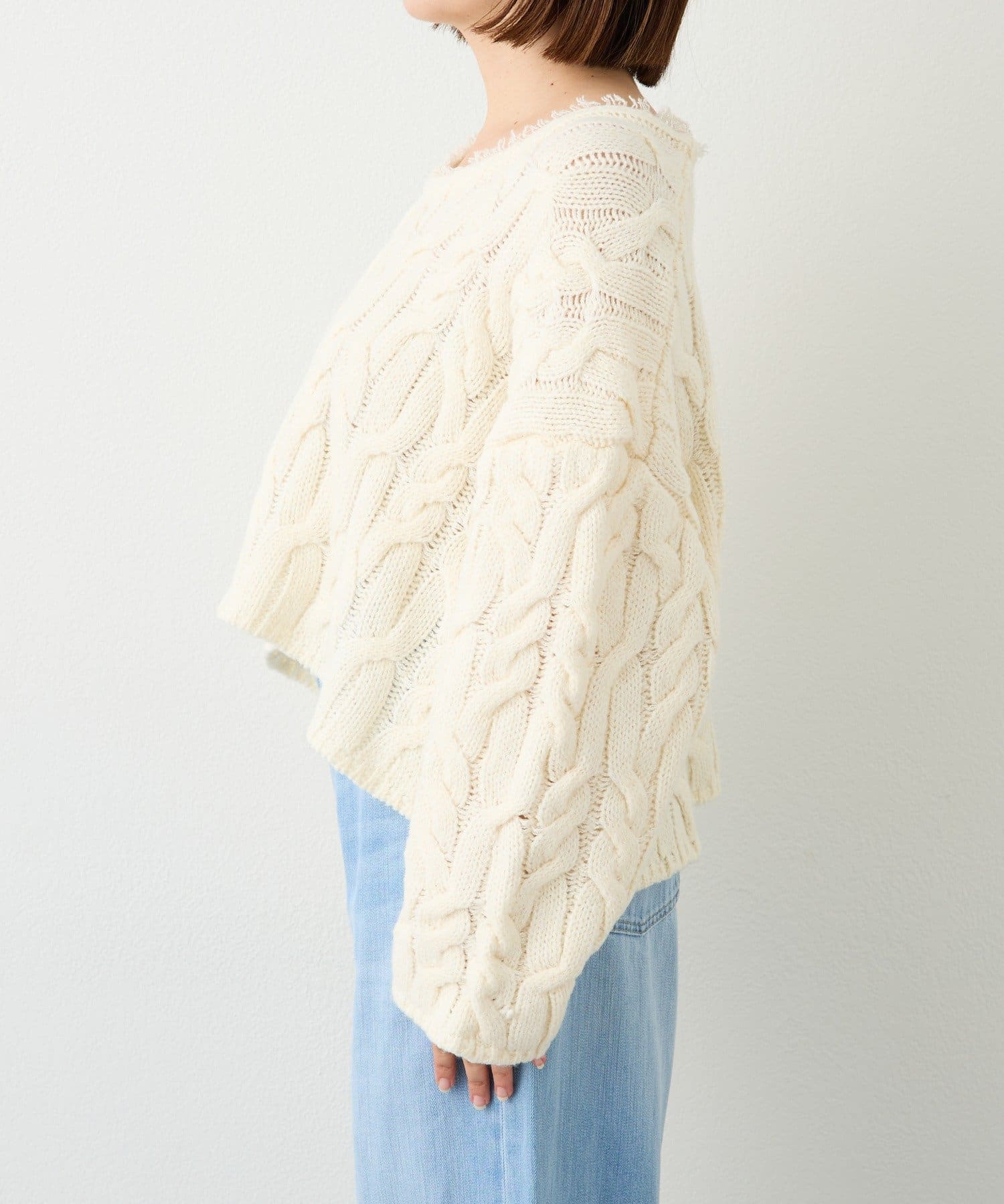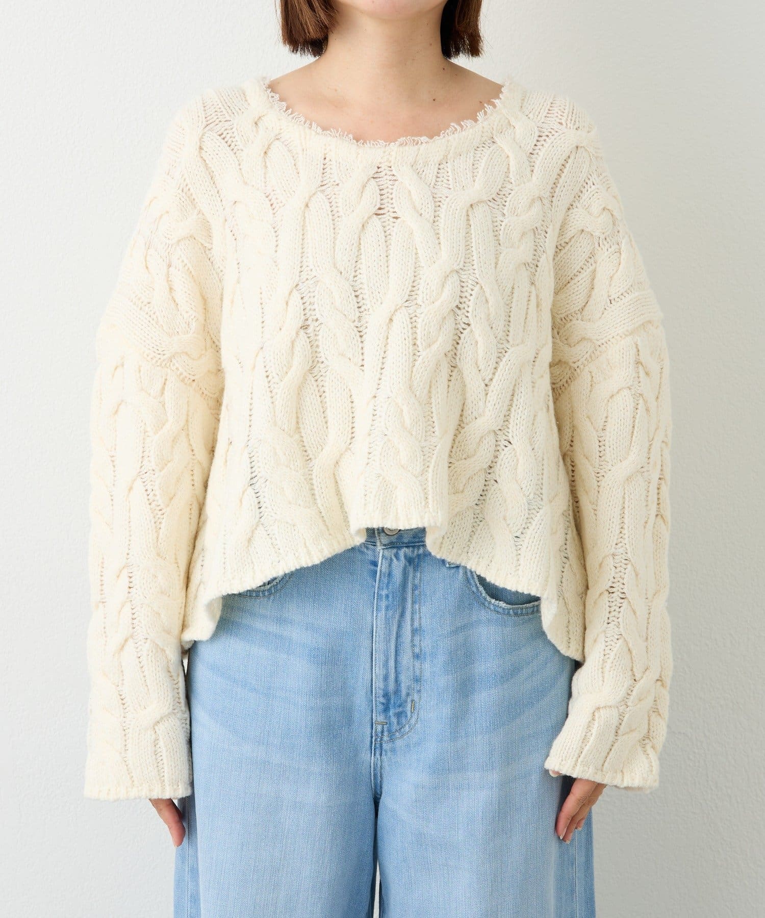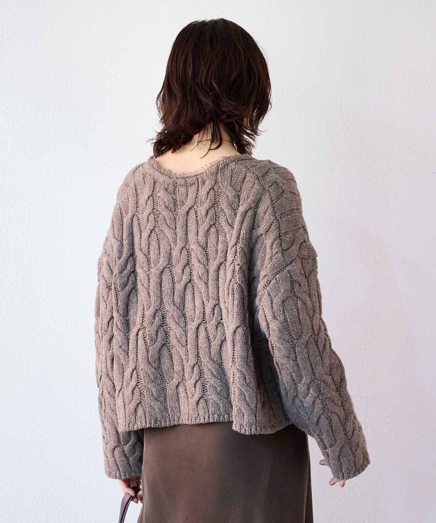 【大人のこなれ感を演出】フリンジネックケーブルニット
