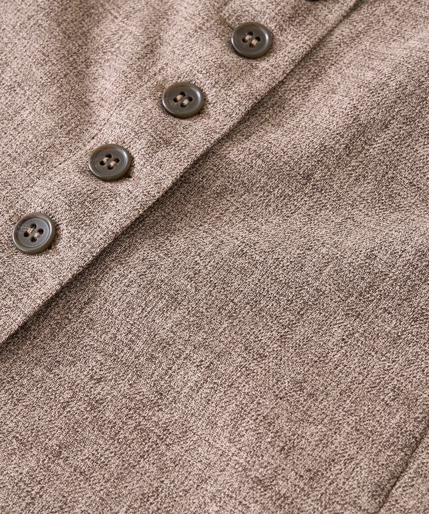 ・ボタンのレイアウトとヘムのカッティングで自然な抜け感も演出。