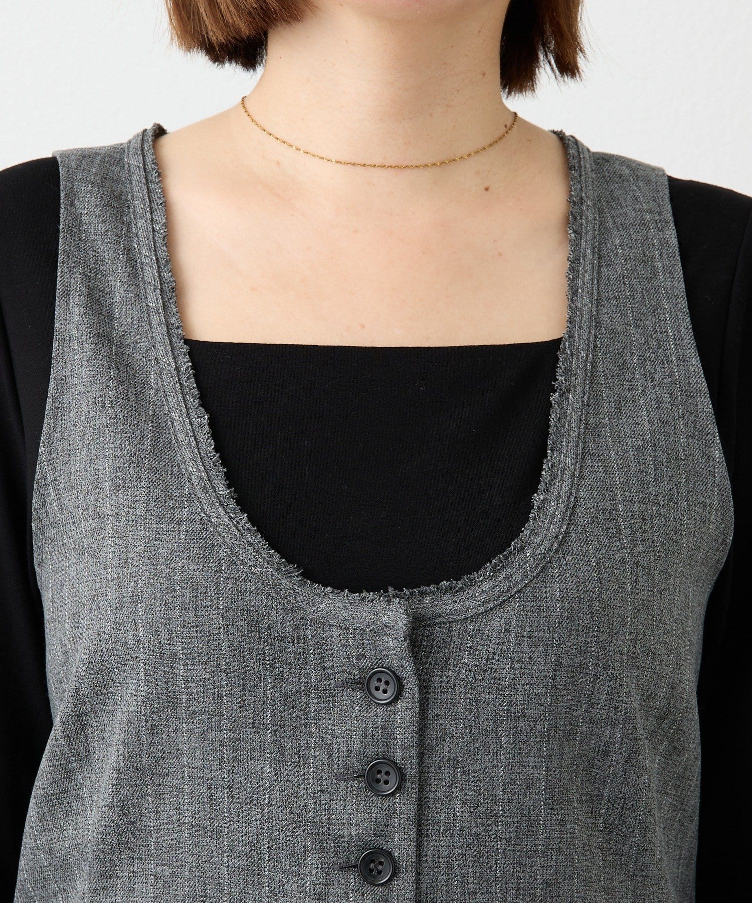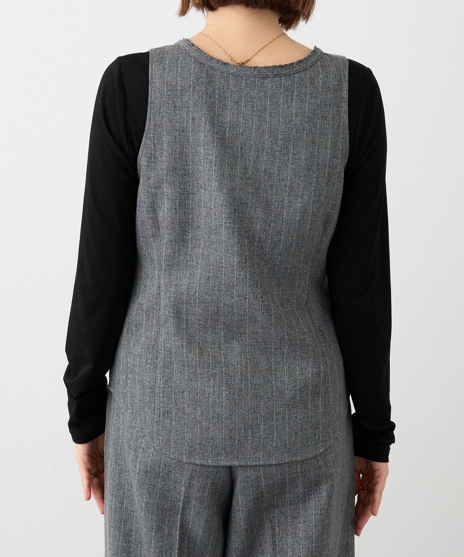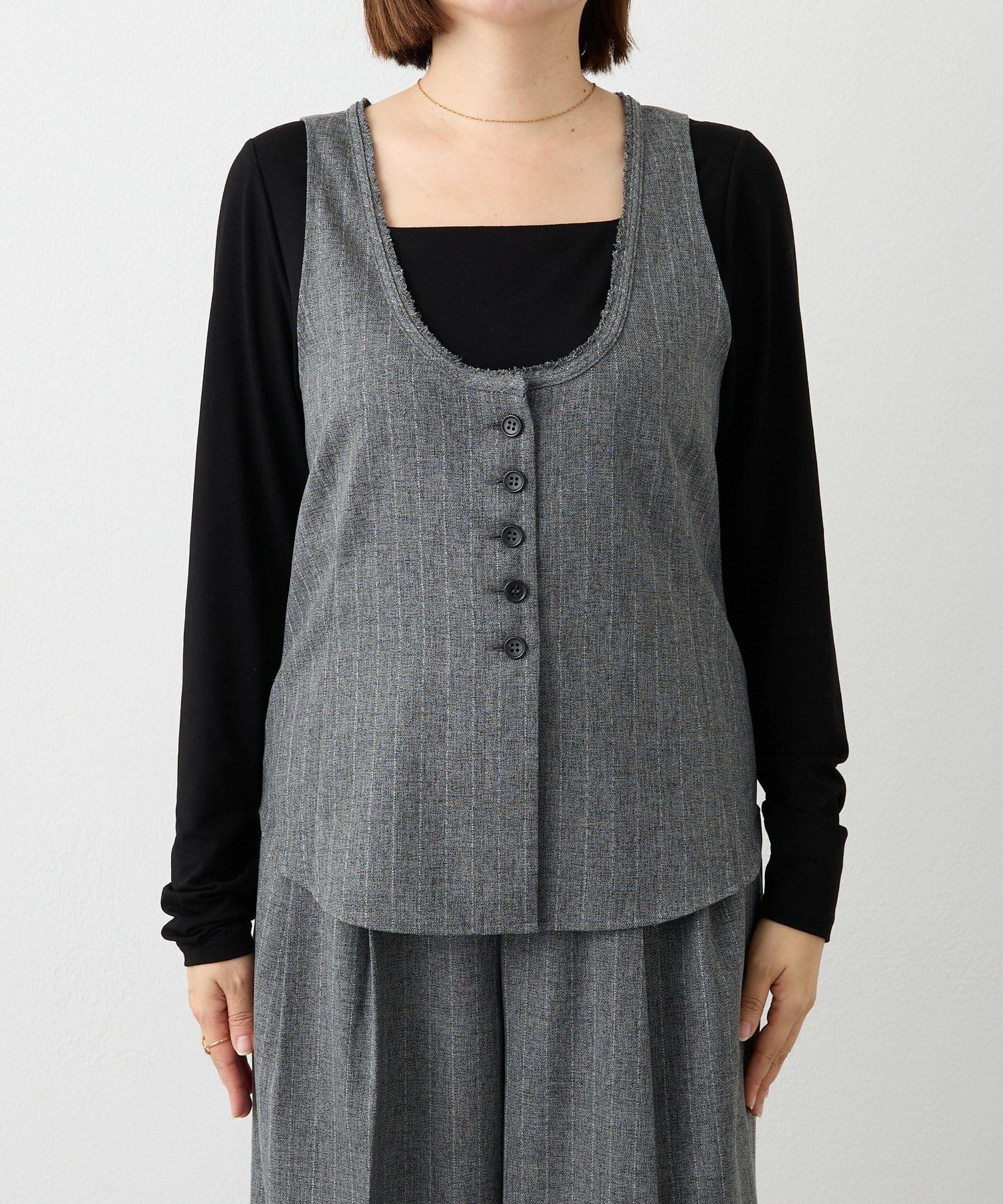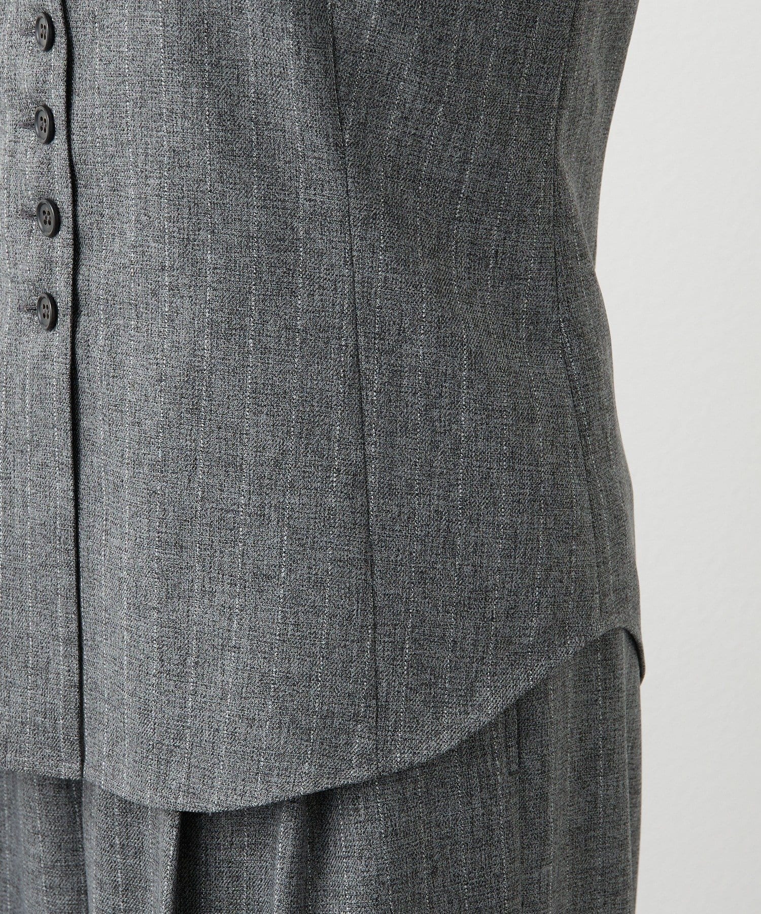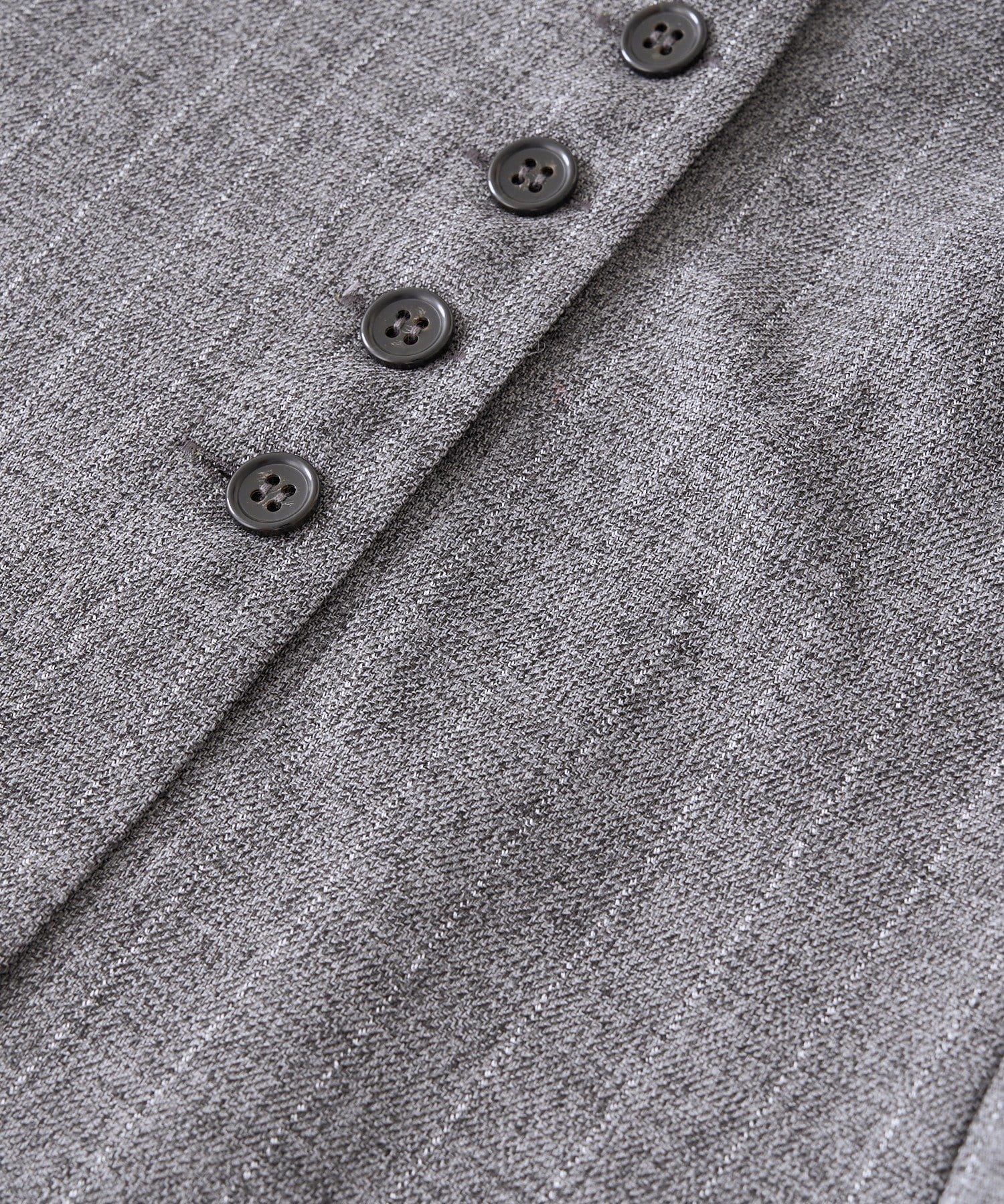 ・ボタンのレイアウトとヘムのカッティングで自然な抜け感も演出。