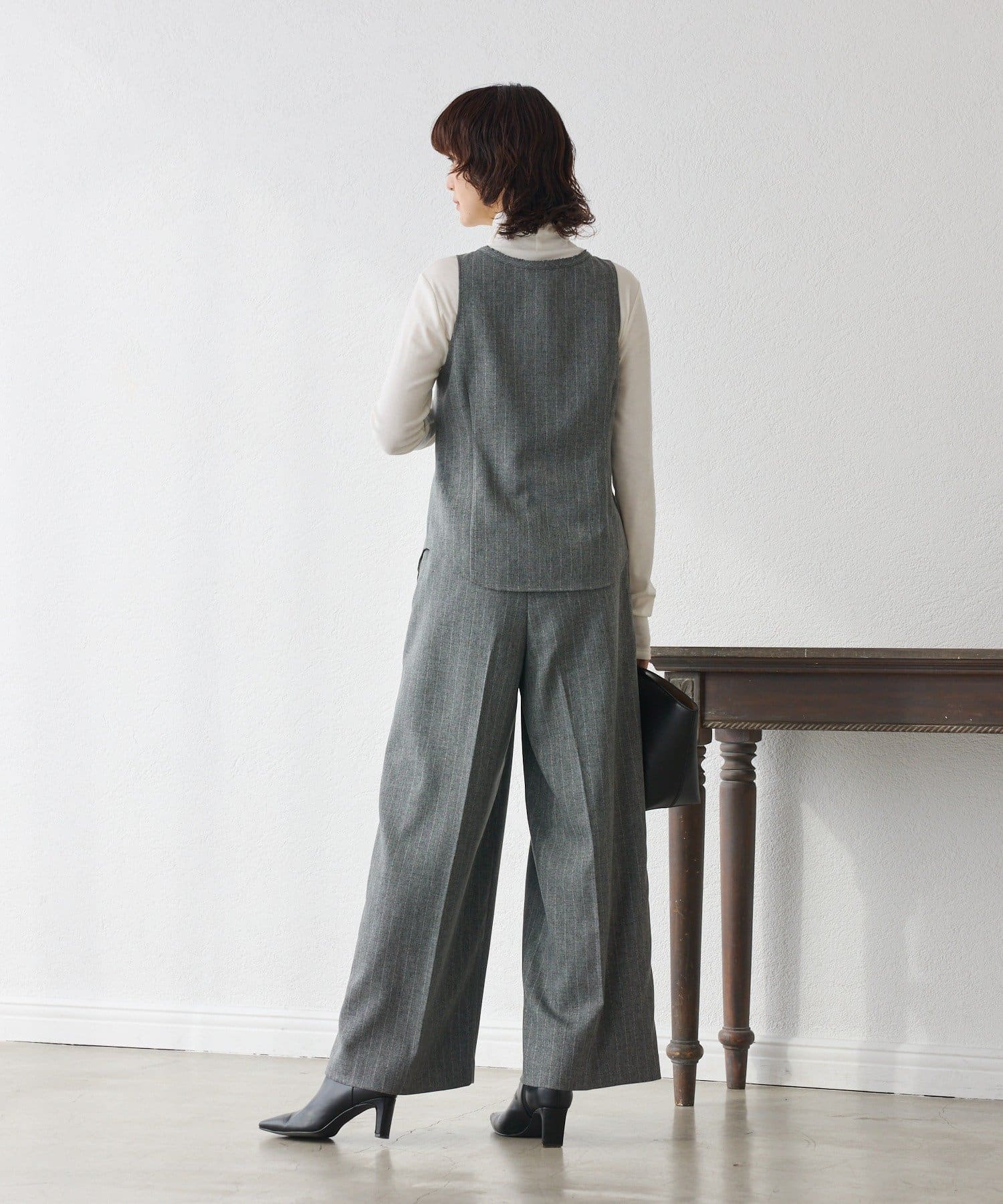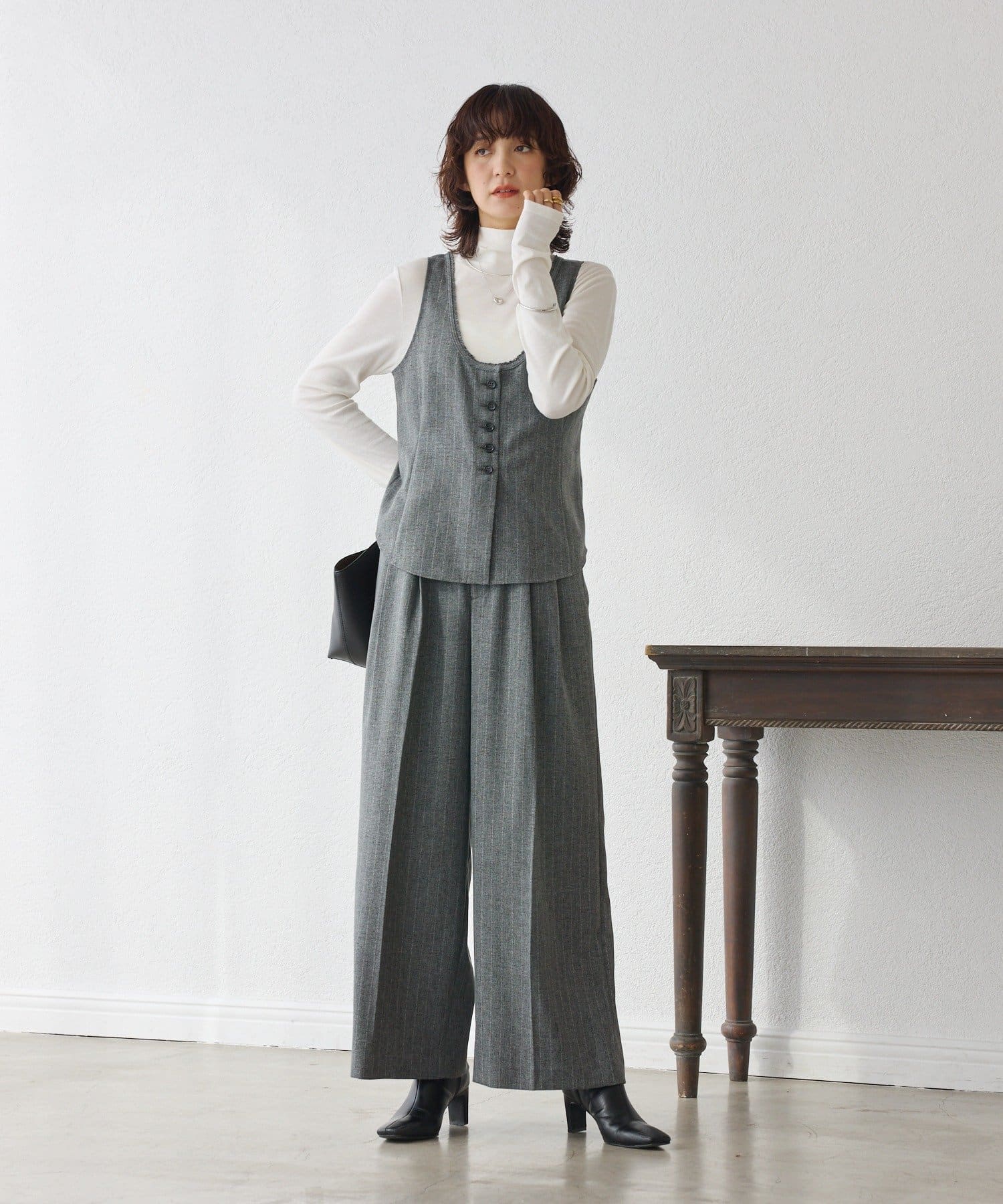 ・同じ素材でお作りしたウ-リーツイル2タックパンツ(RDZ1052502A0001)とのハンサムなセットアップコーデもおすすめ。