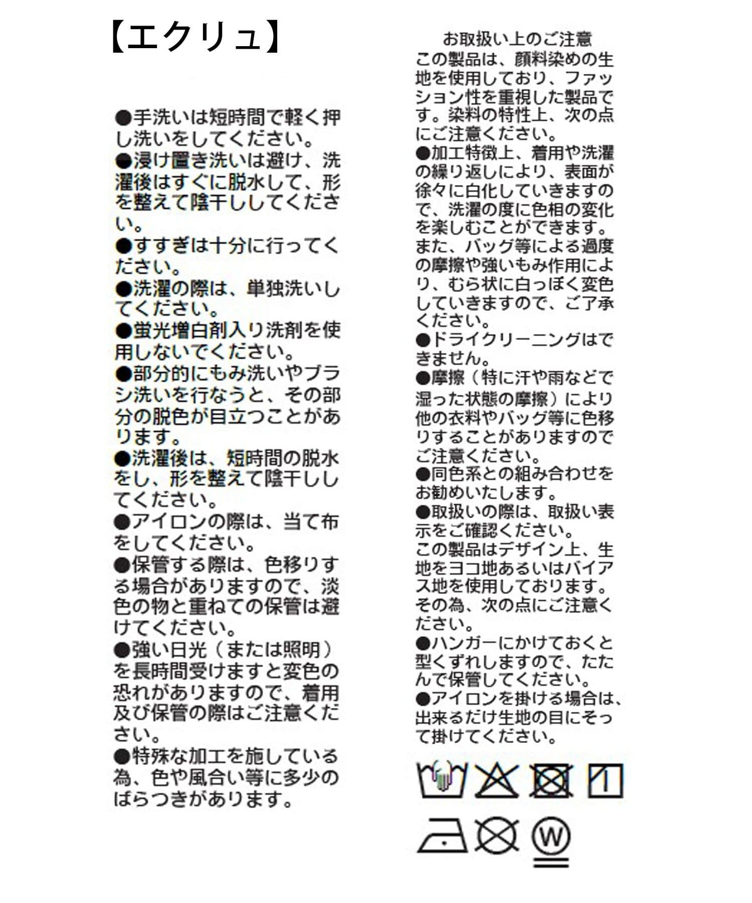 また着用の際には白や淡色のものとの重ね着は避けてください。色が移る場合があります。