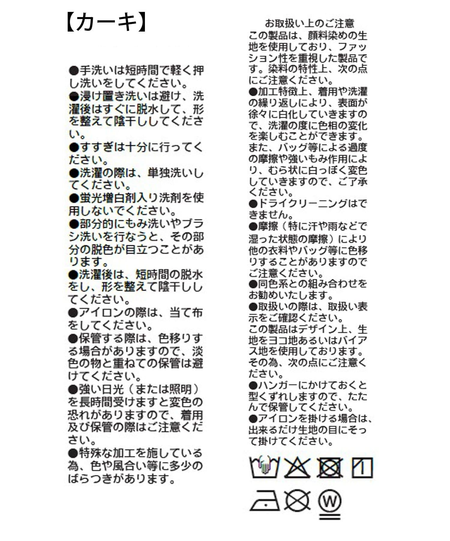 ●加工特徴上、着用や洗濯の繰り返しにより、表面が徐々に白化していきますので、洗濯の度に色相の変化を楽しむことができます。