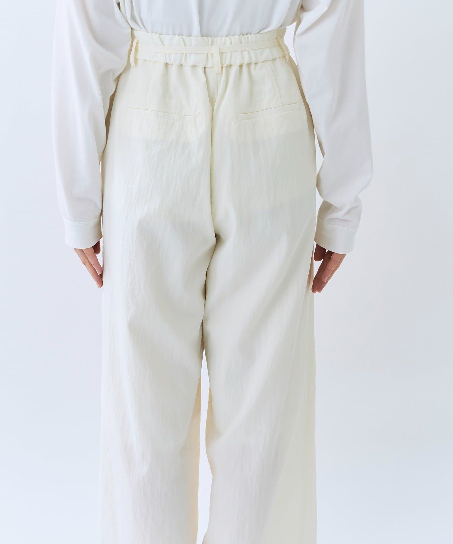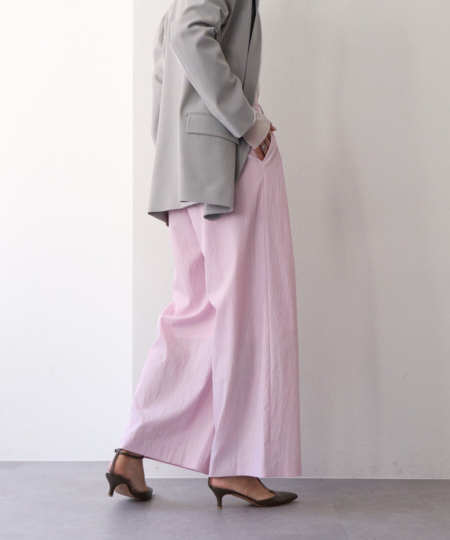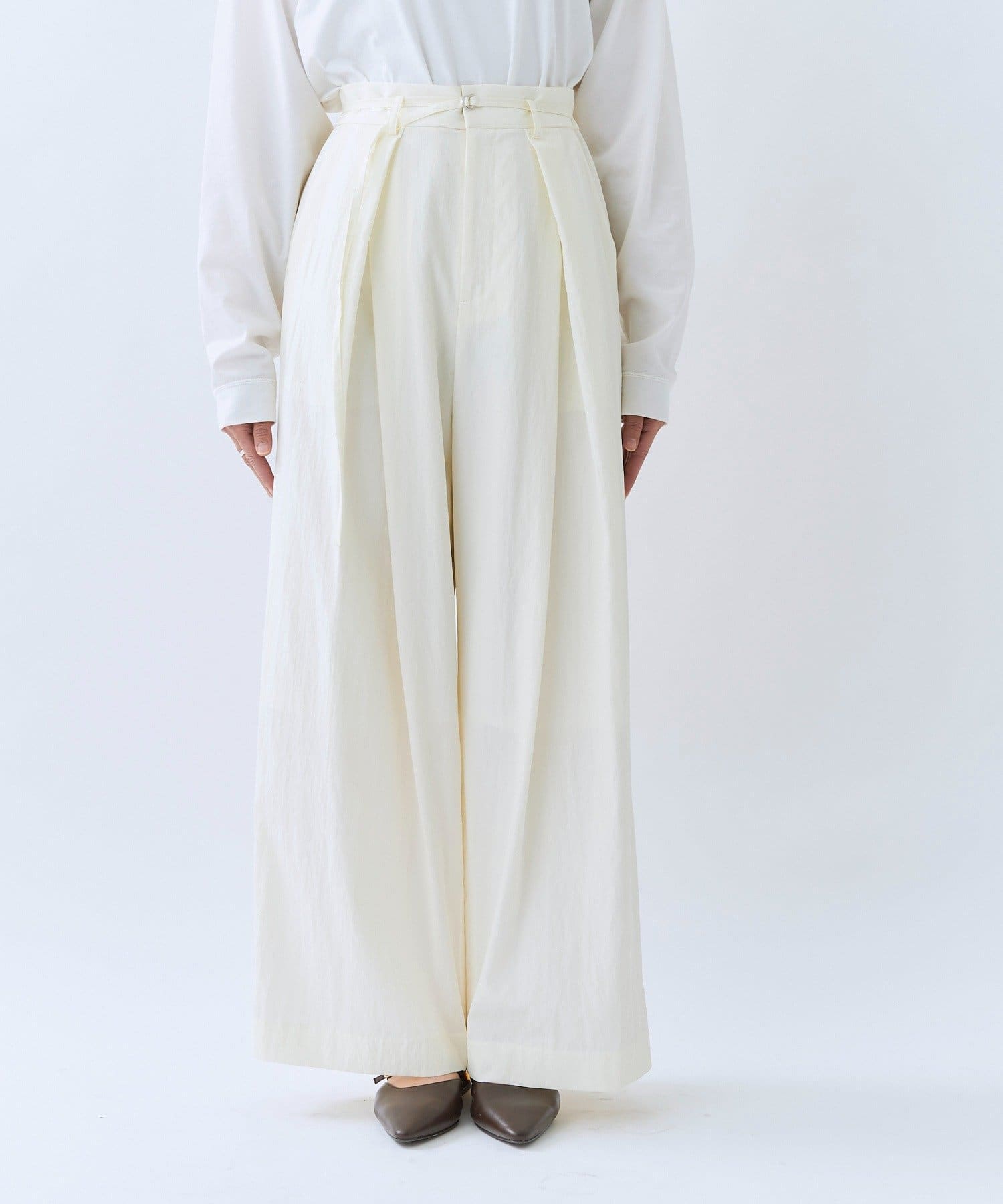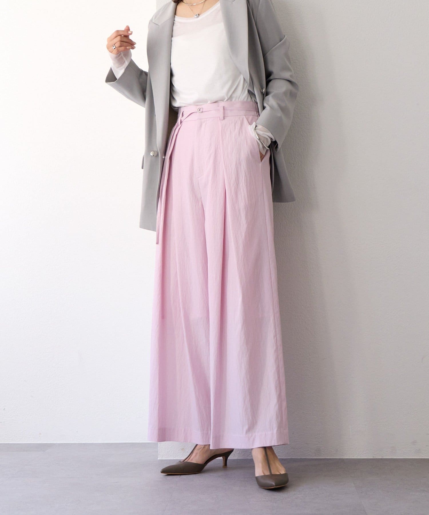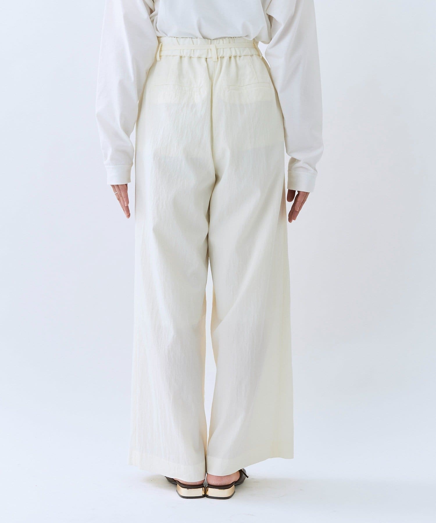 ・ハイウエストとワイドシルエットがメリハリを生むデザインです。