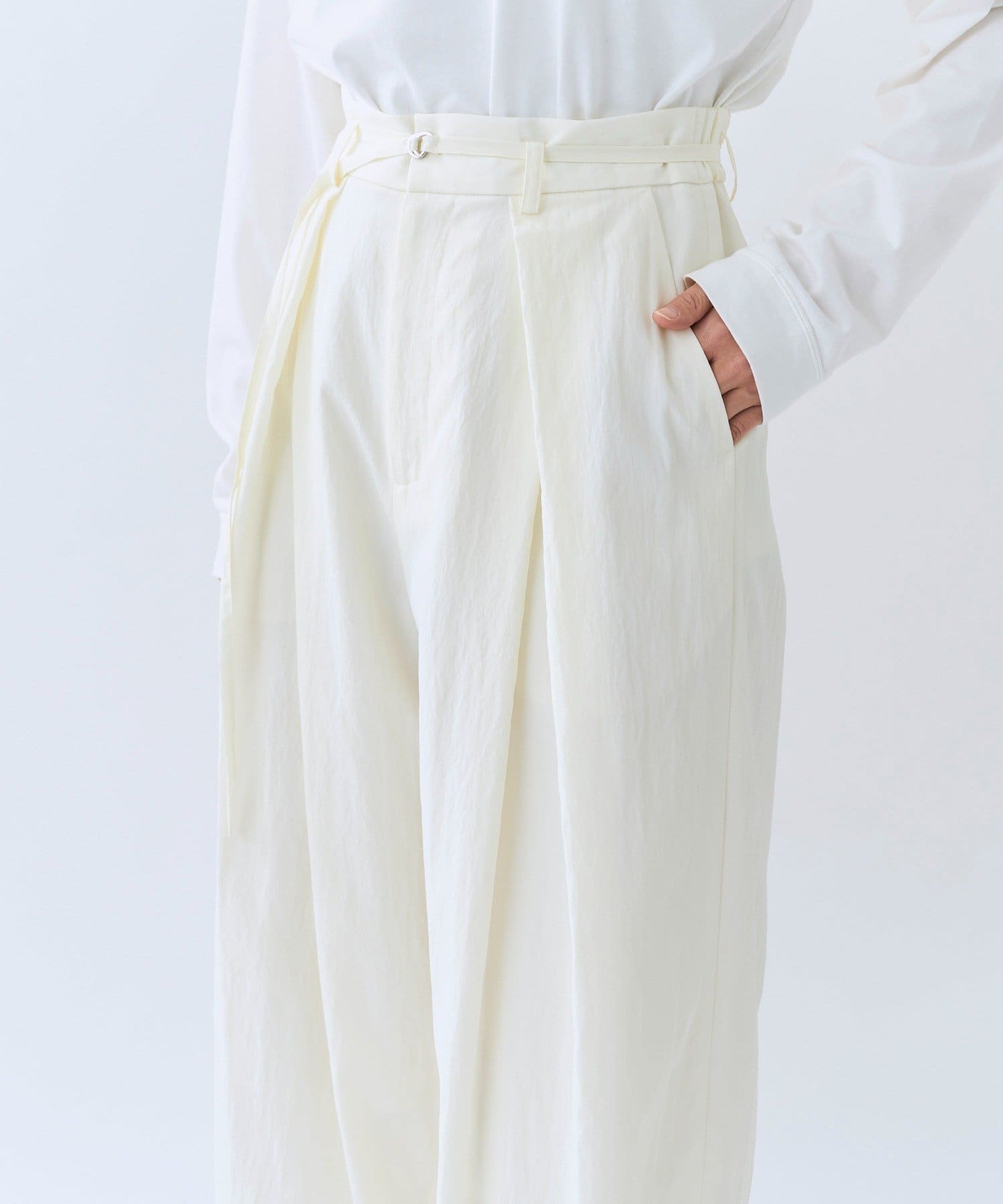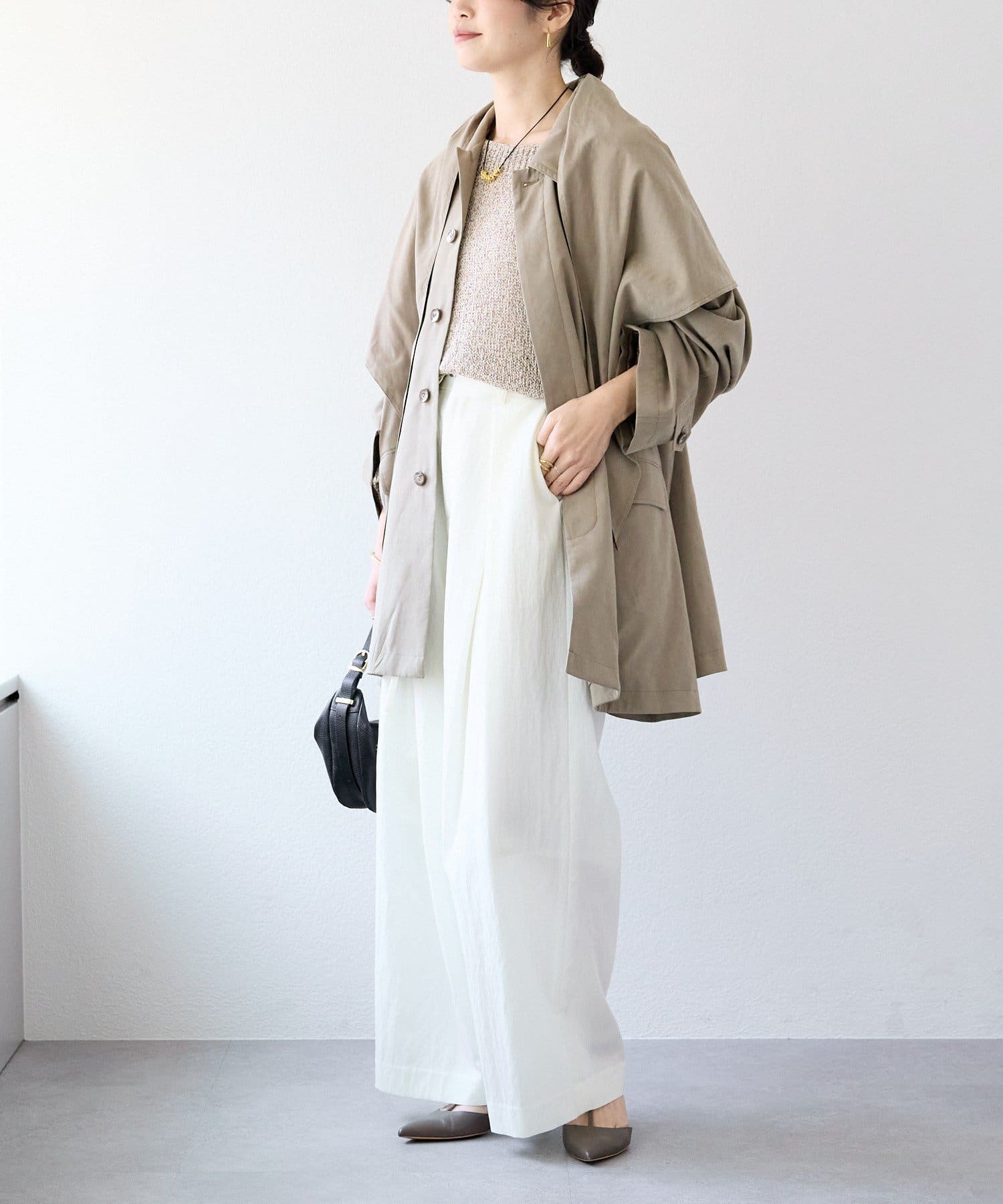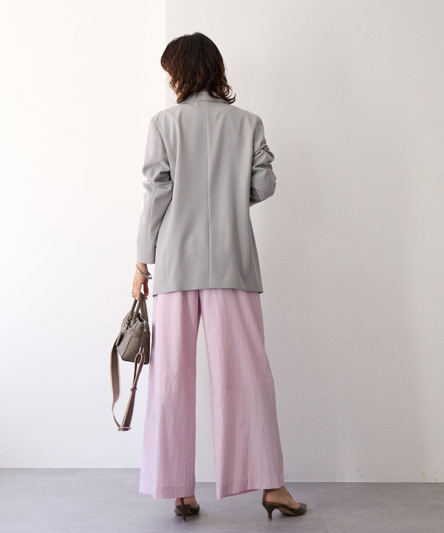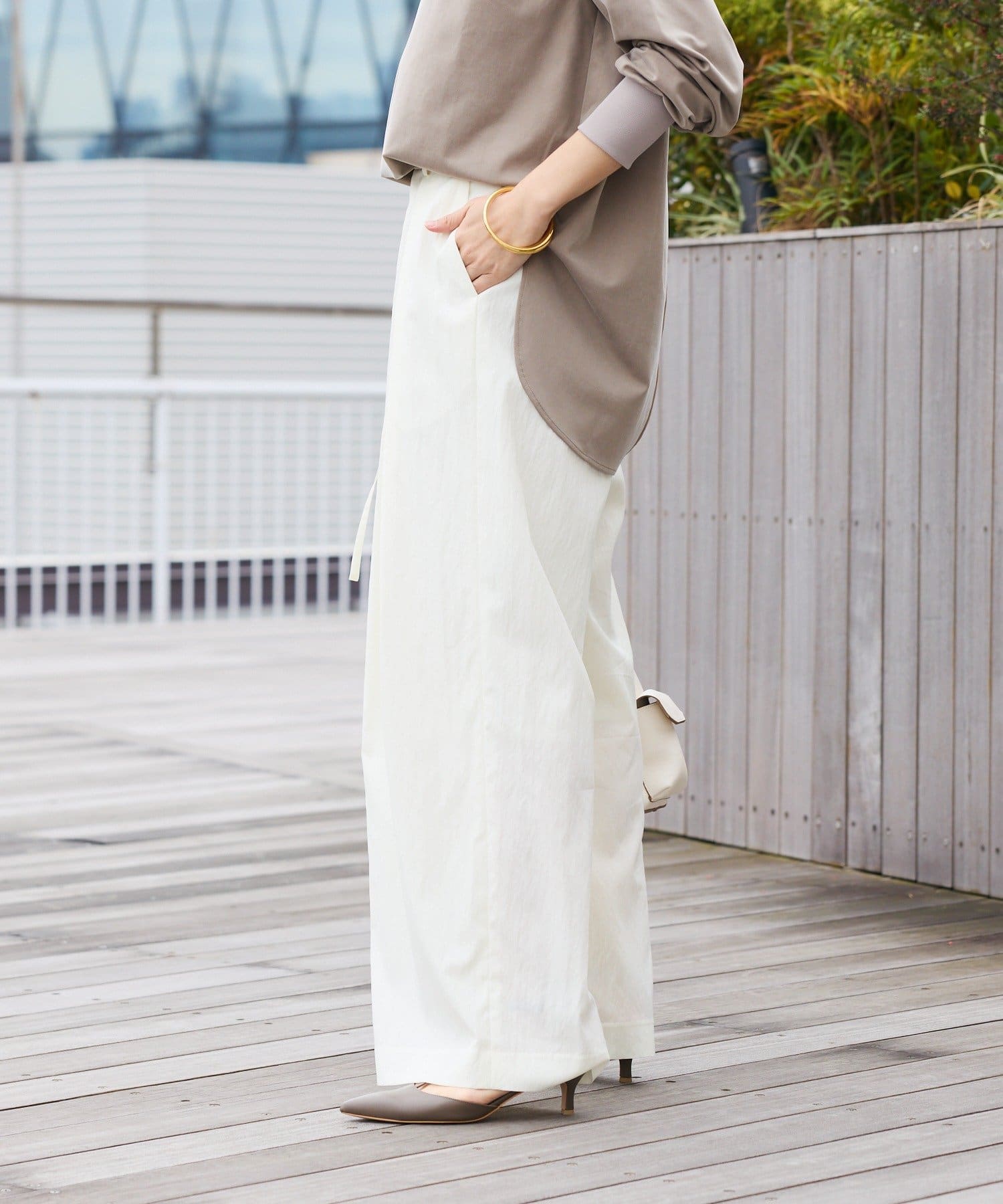 ・ハイウエストとワイドシルエットがメリハリを生むデザインです。