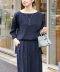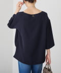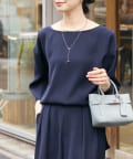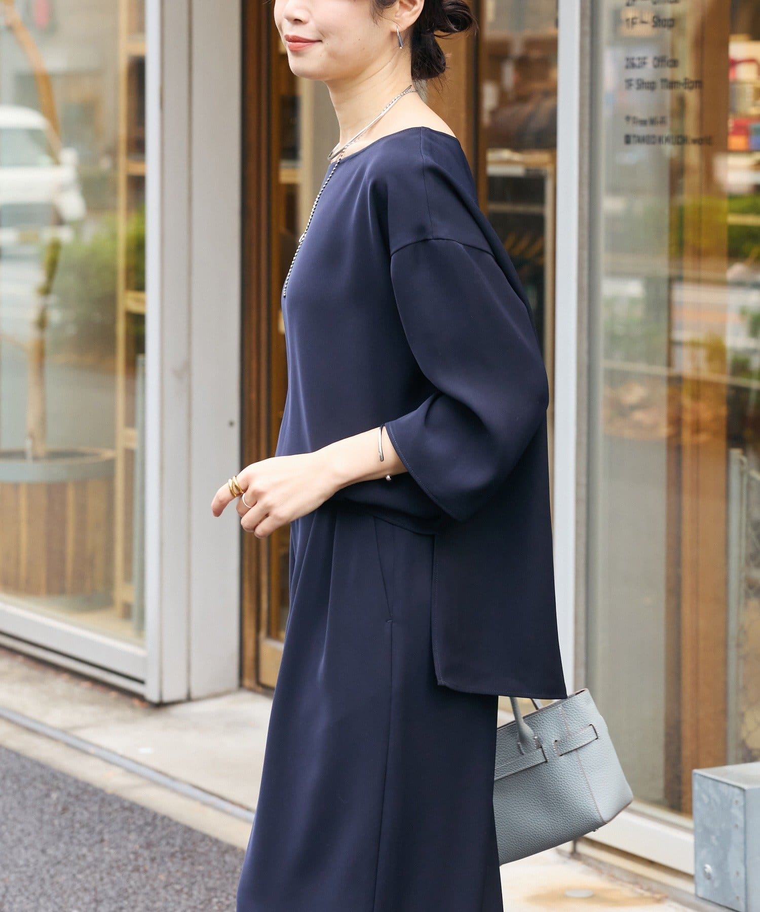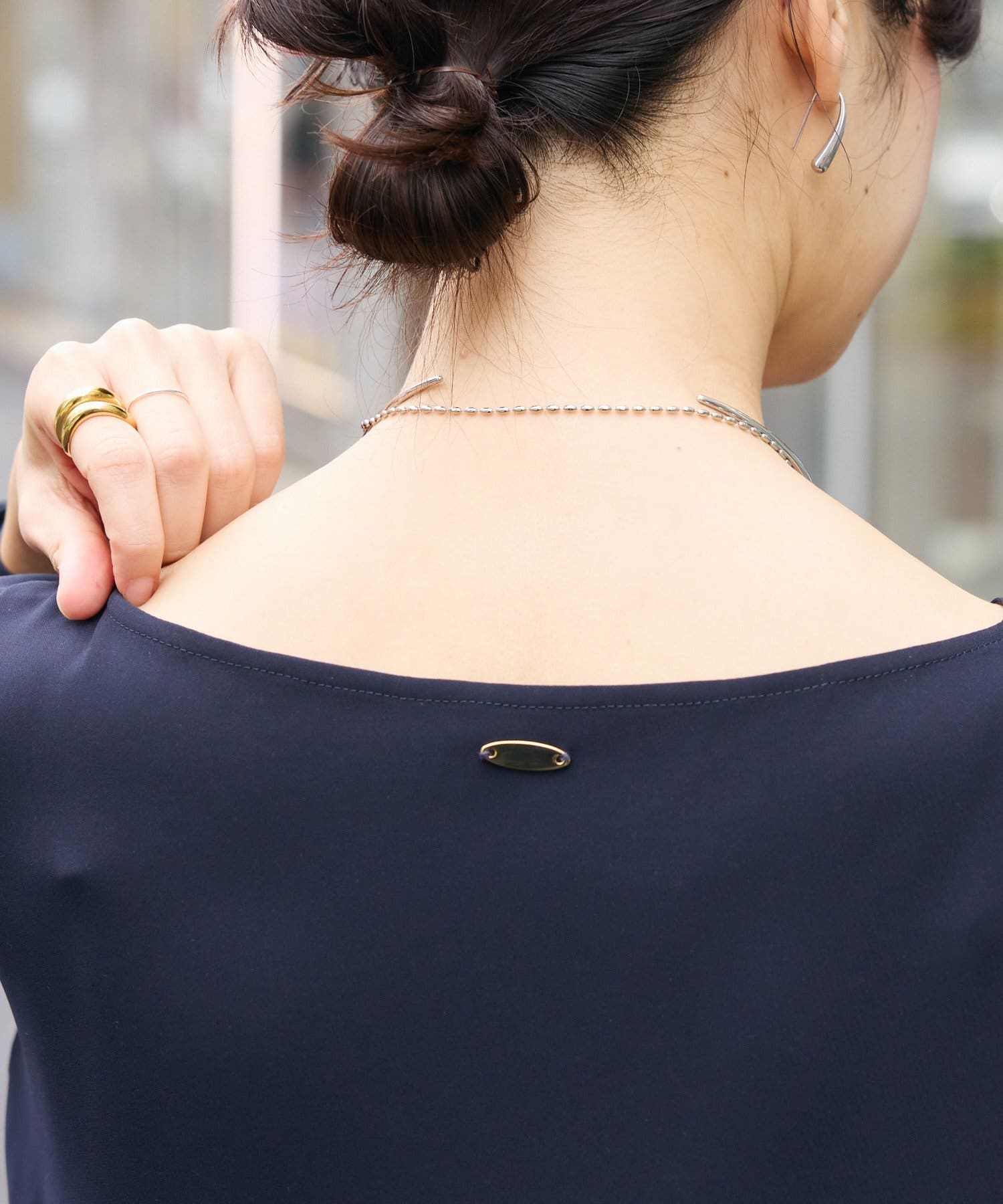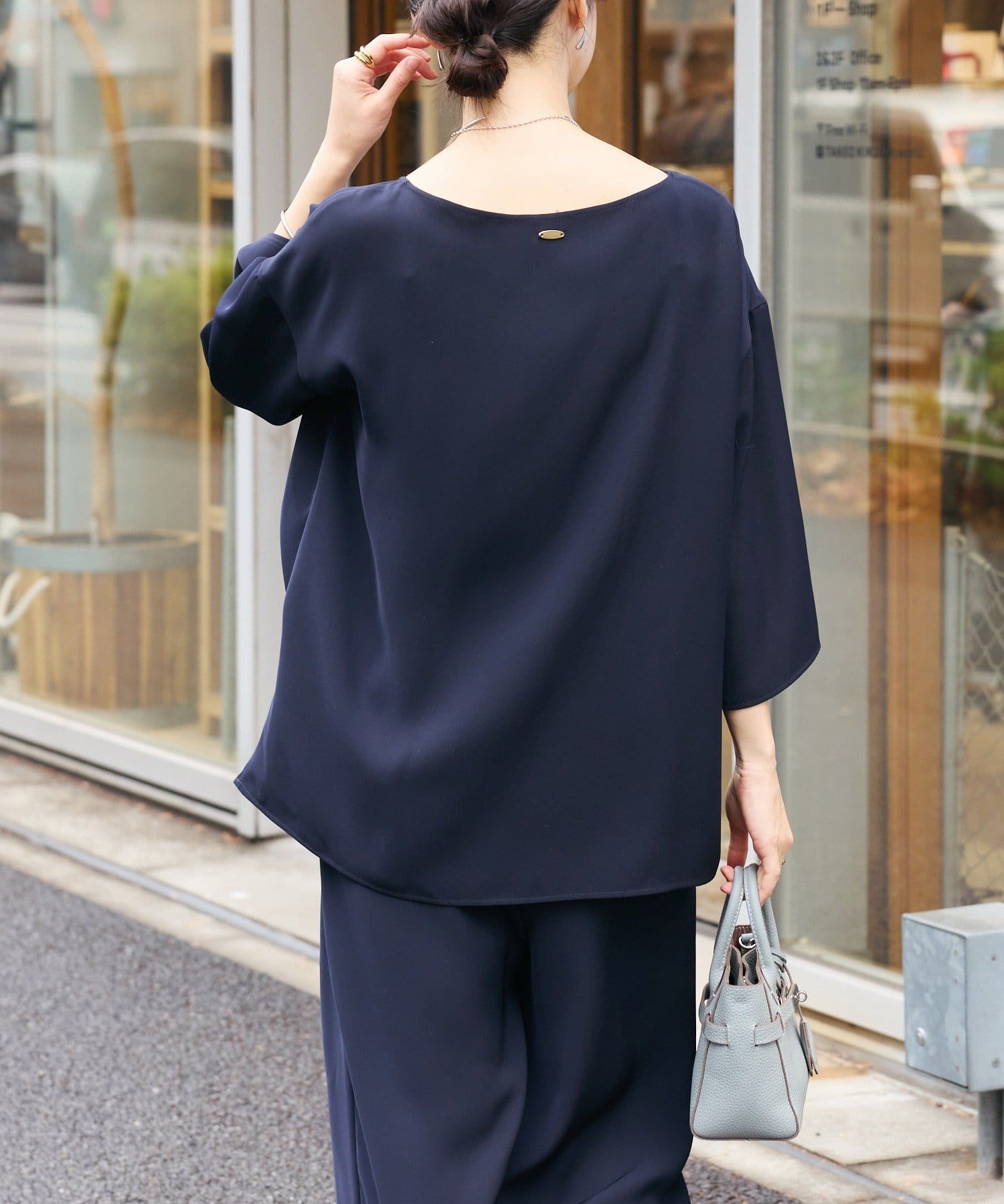 ・横に抜けた衿ぐりと、手首の覗く袖丈で女性らしい抜けのあるブラウス