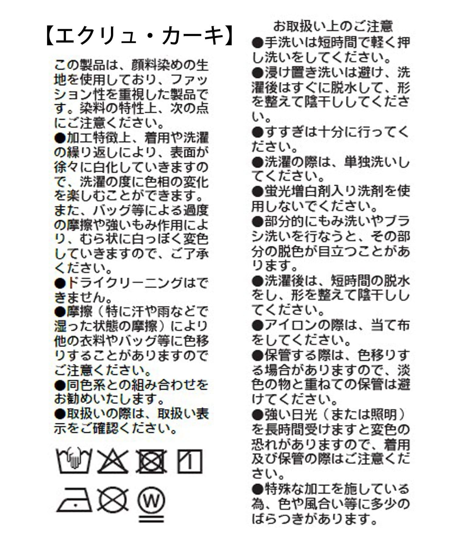 ●摩擦(特に汗や雨などで湿った状態の摩擦)により他の衣料やバッグ等に色移りすることがありますのでご注意ください。