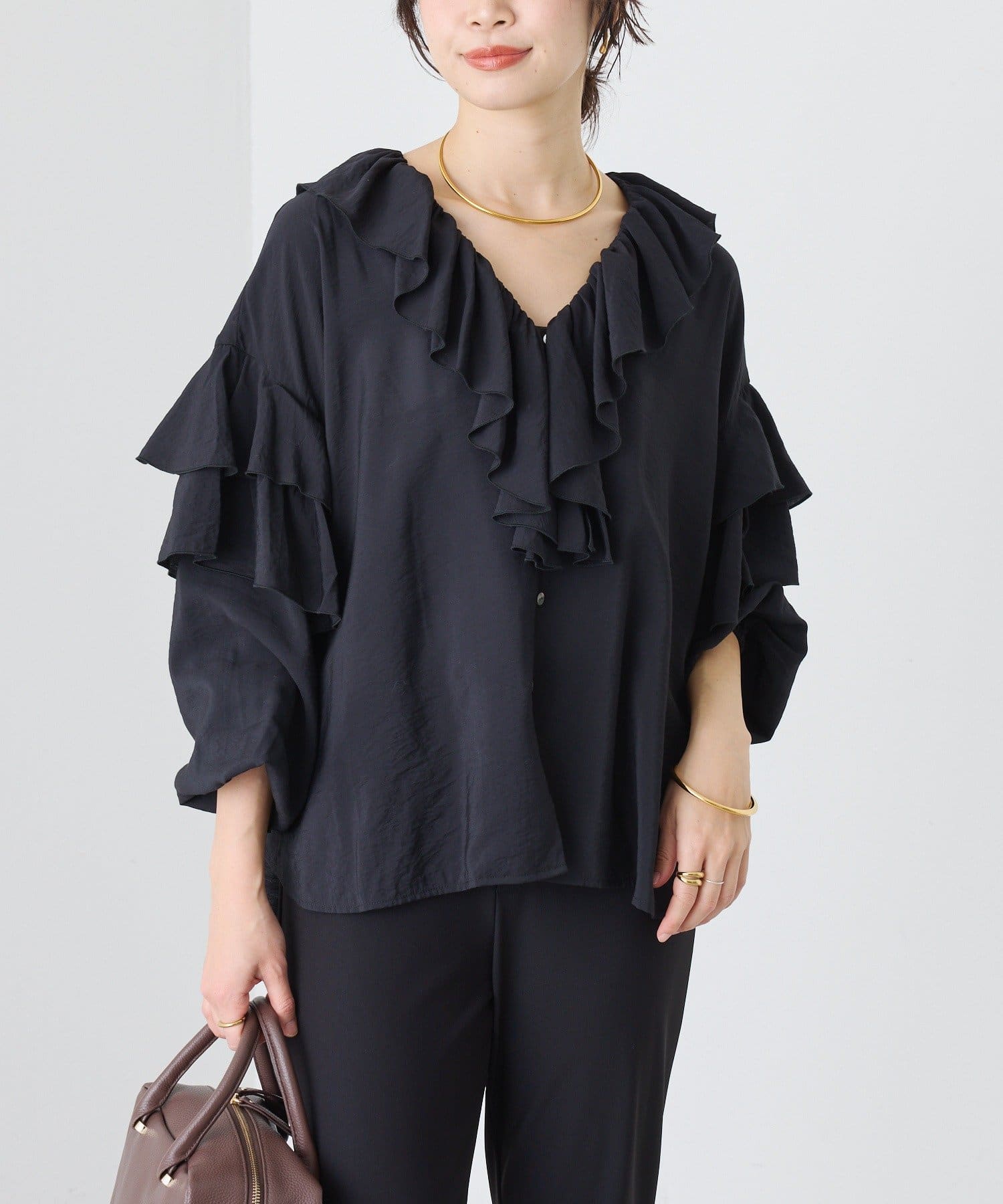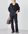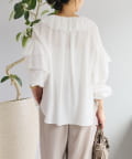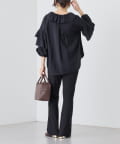 ・衿ぐりと袖のフリルディテールが華やかな着映えブラウス