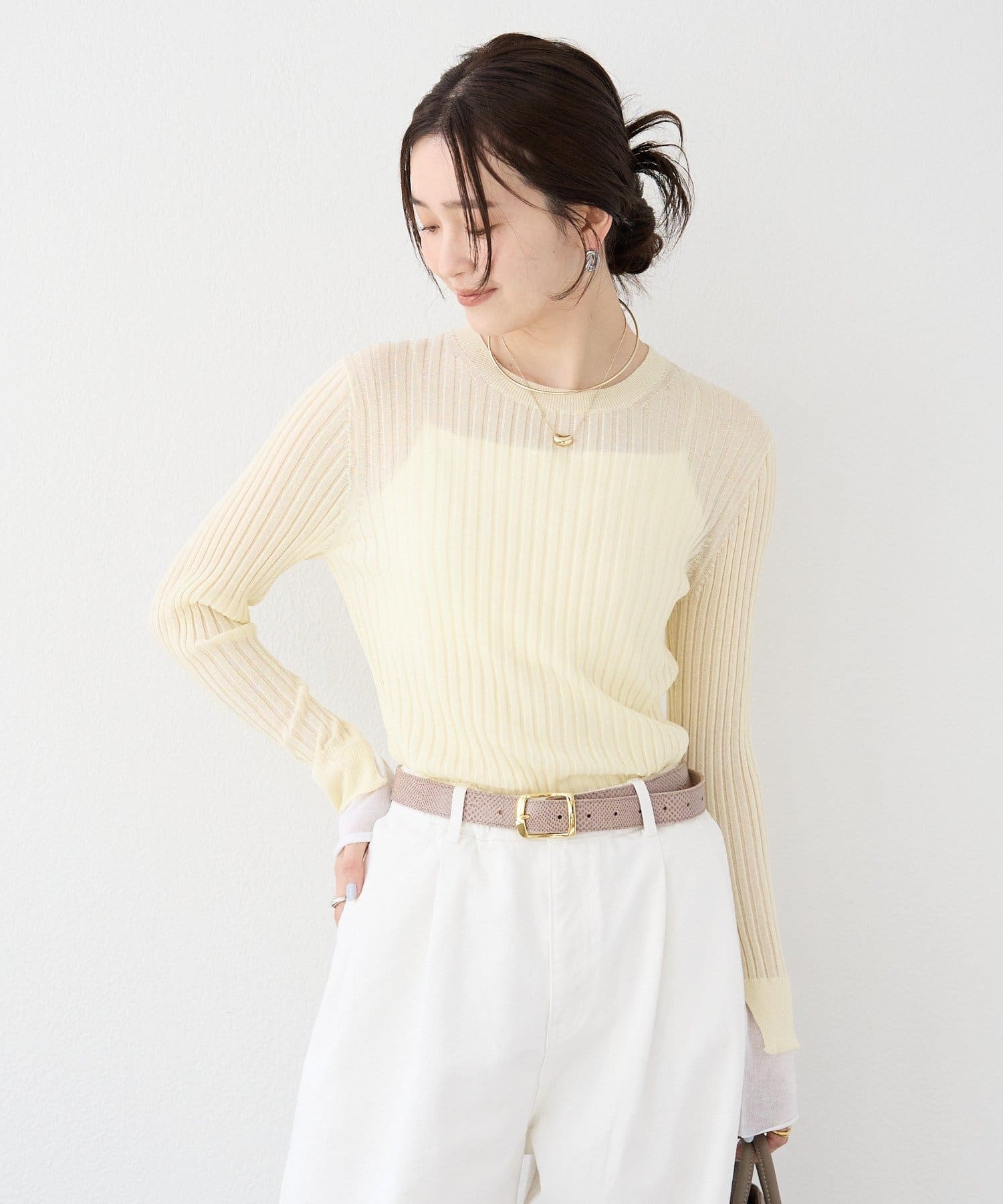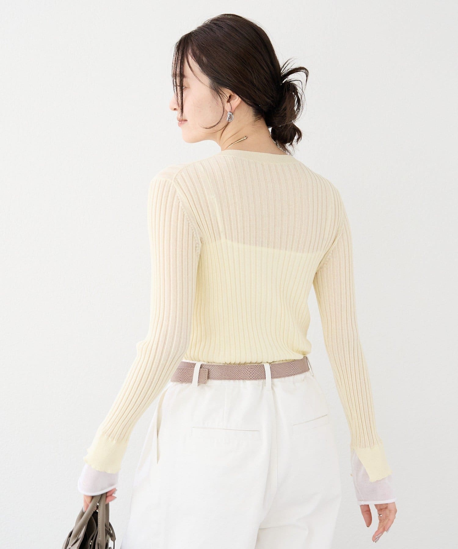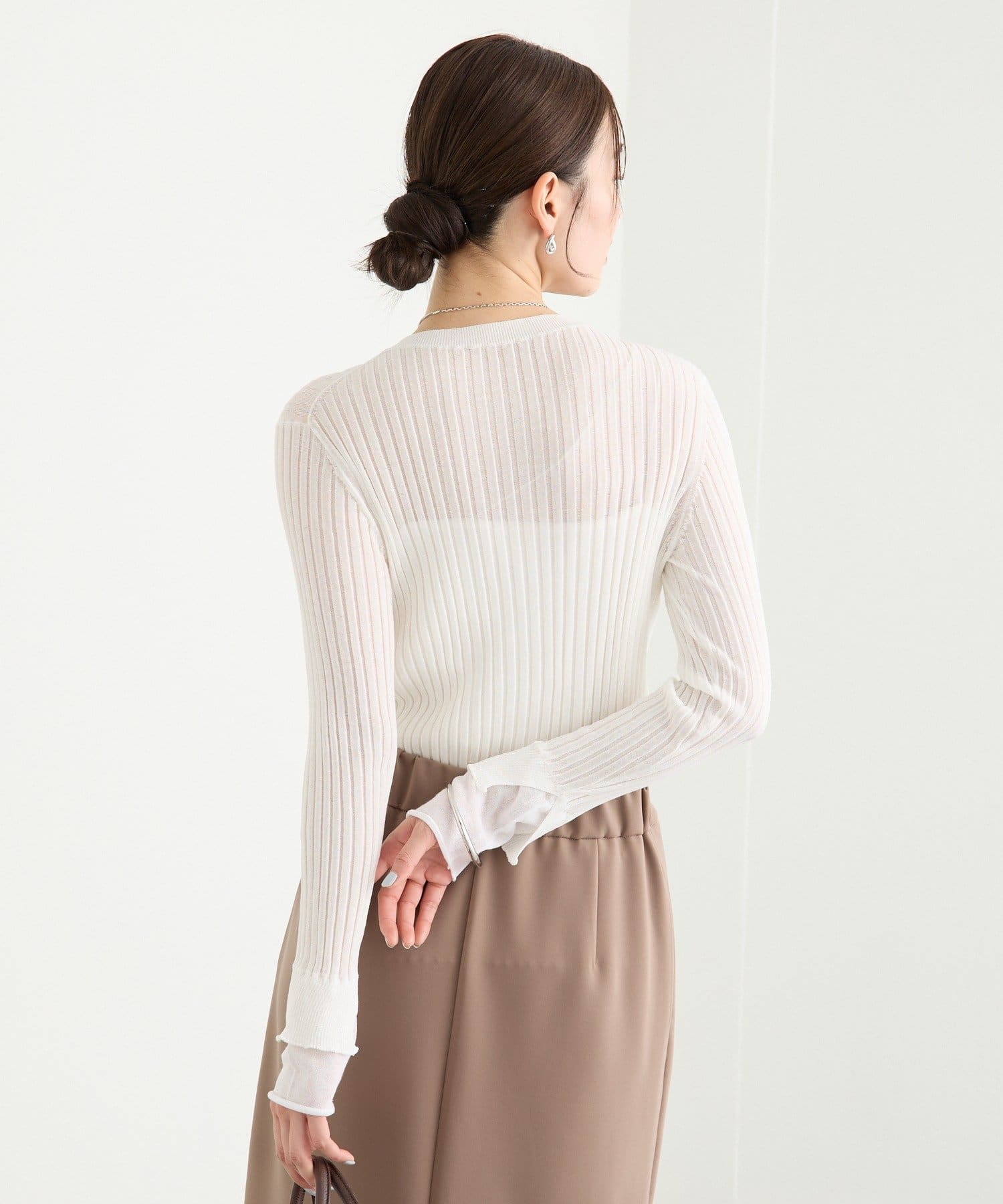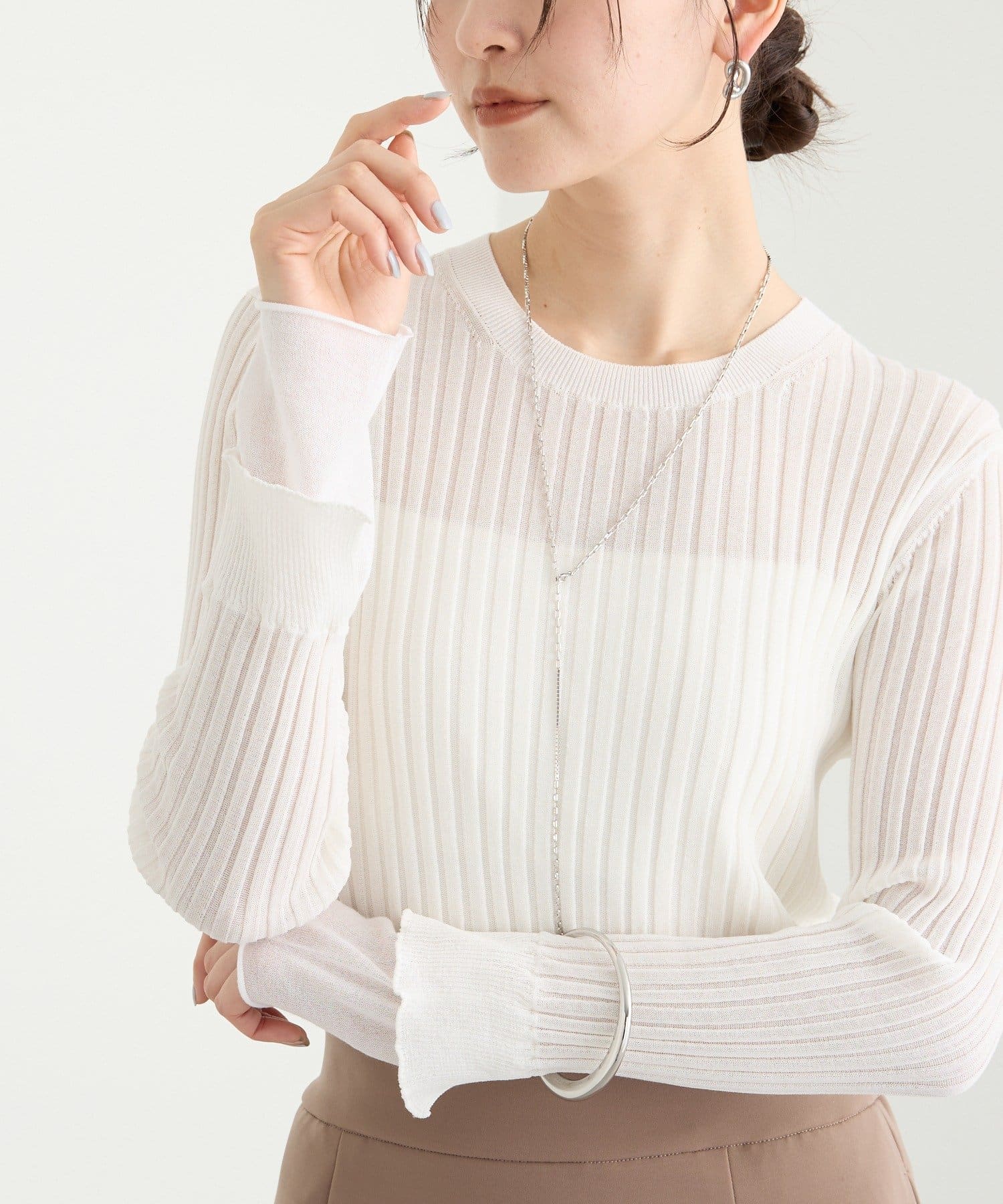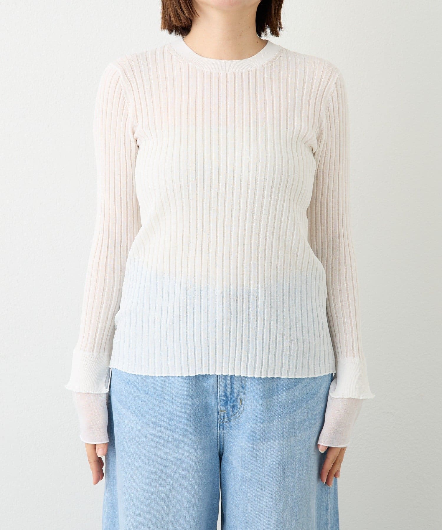TOP > RIVE DROITE > レディース > トップス > ニット/セーター > 予約【レイヤード風の袖口】シアーカフスリブニット