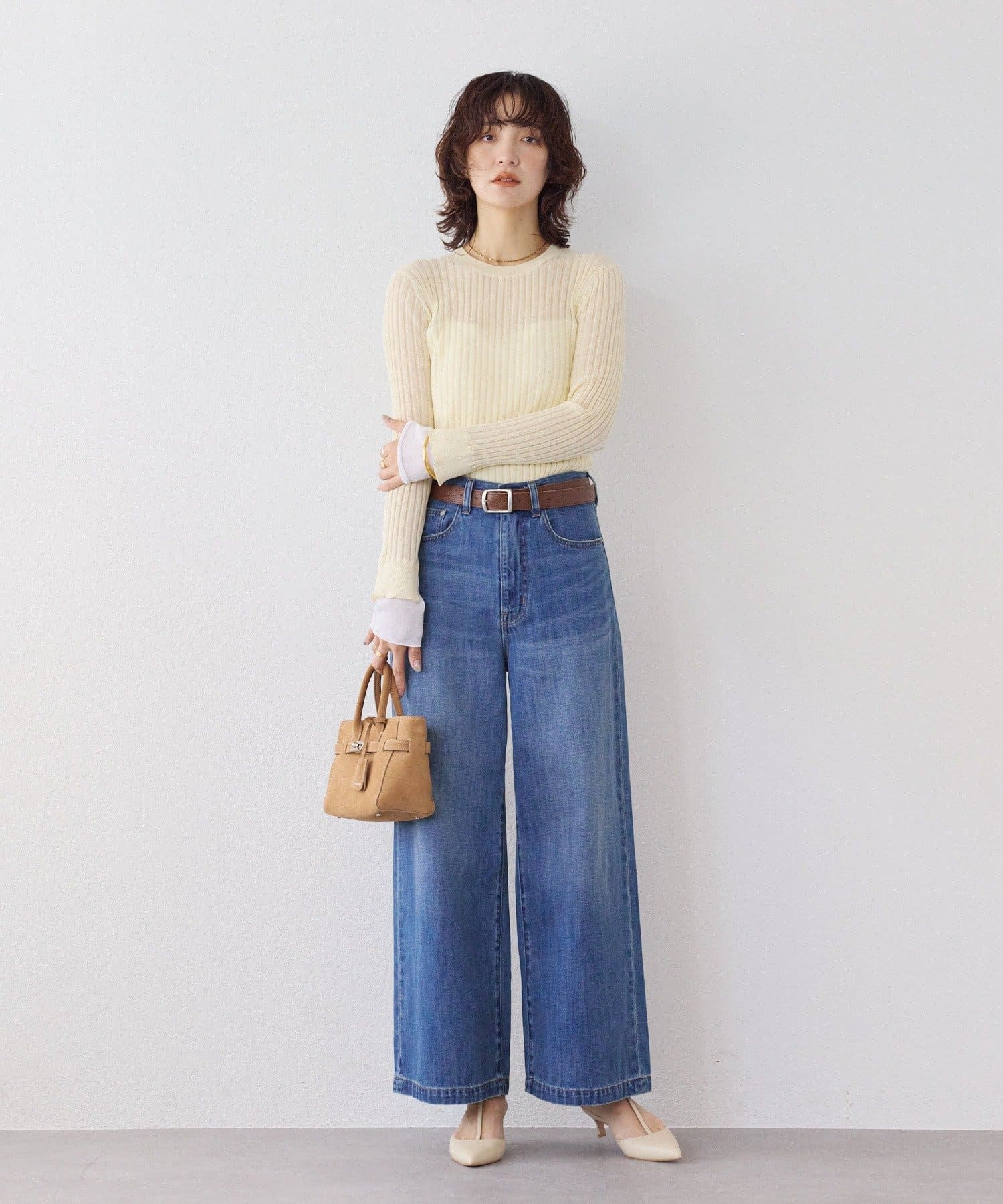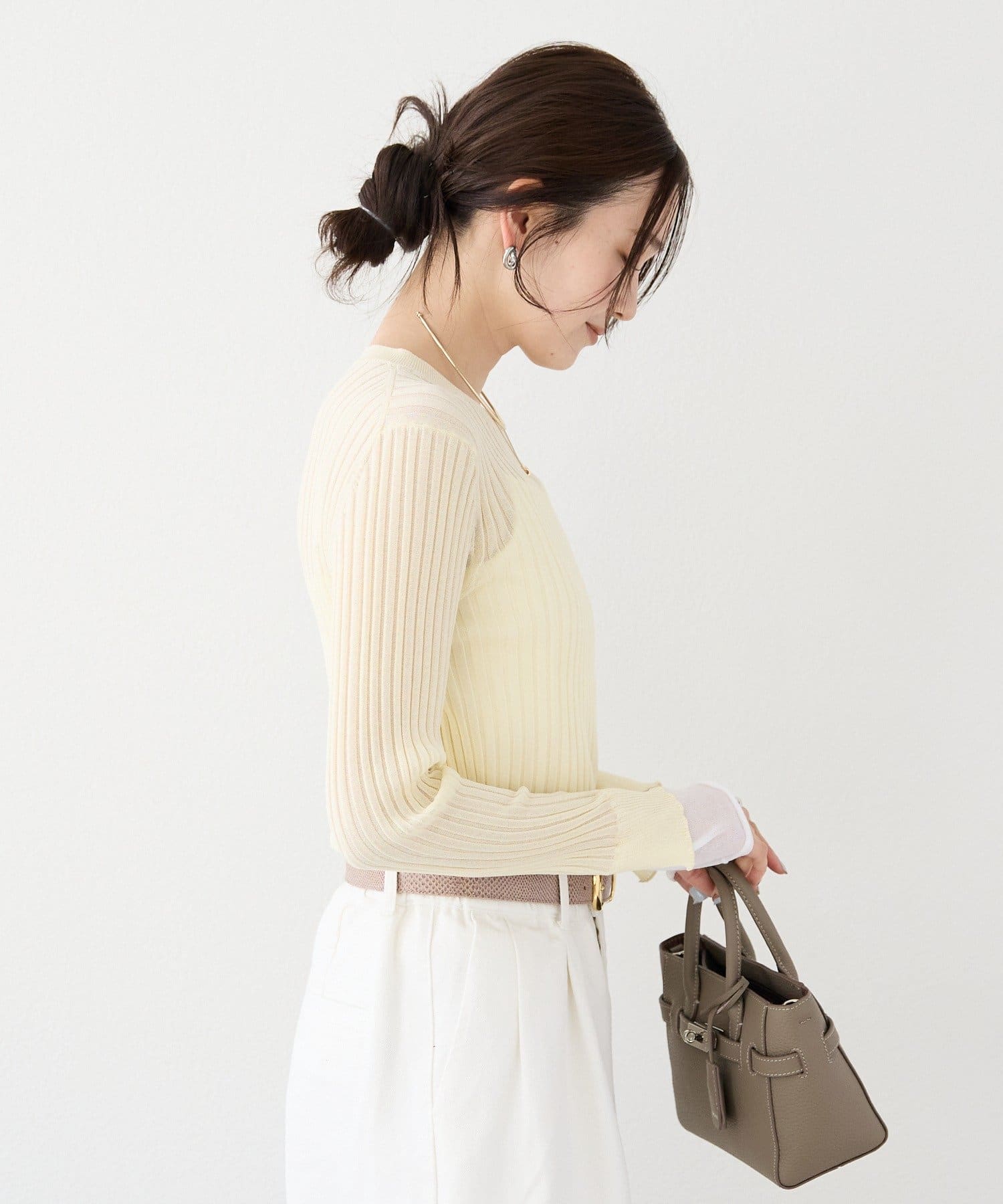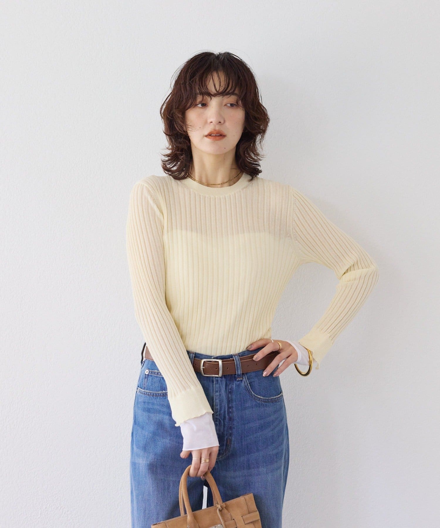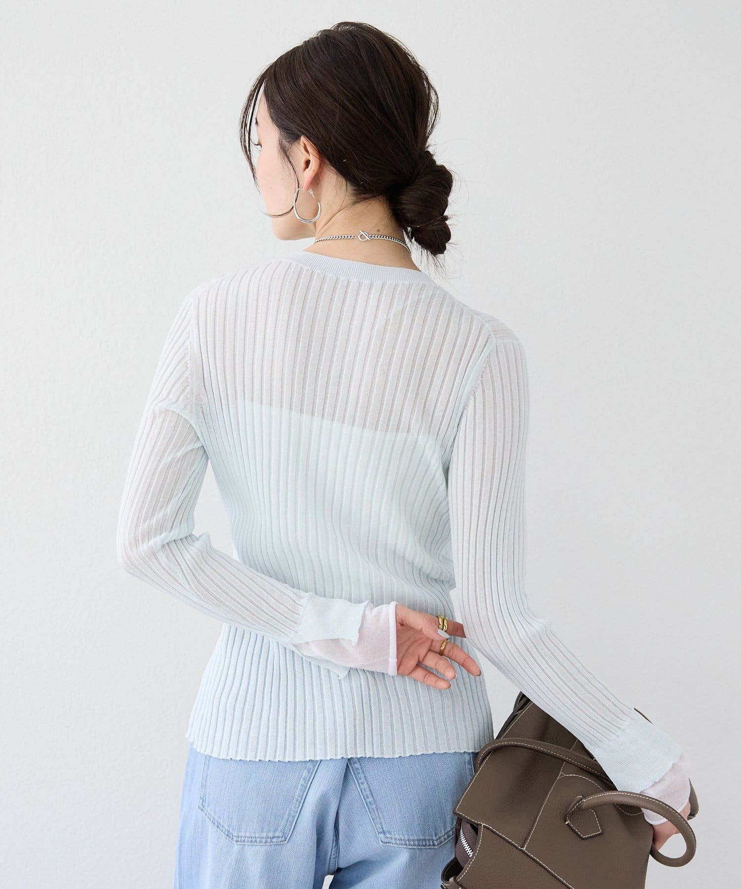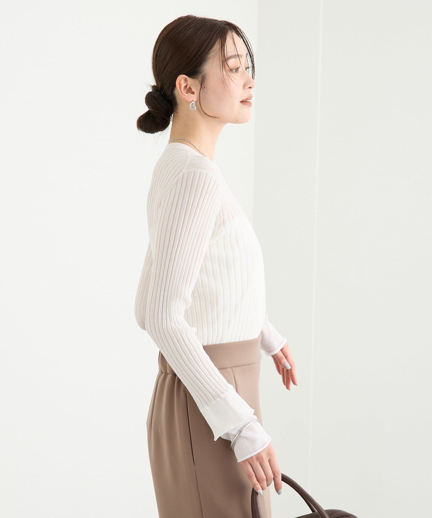 • RIVE DROITE(リヴドロワ) 予約【レイヤード風の袖口】シアーカフスリブニット