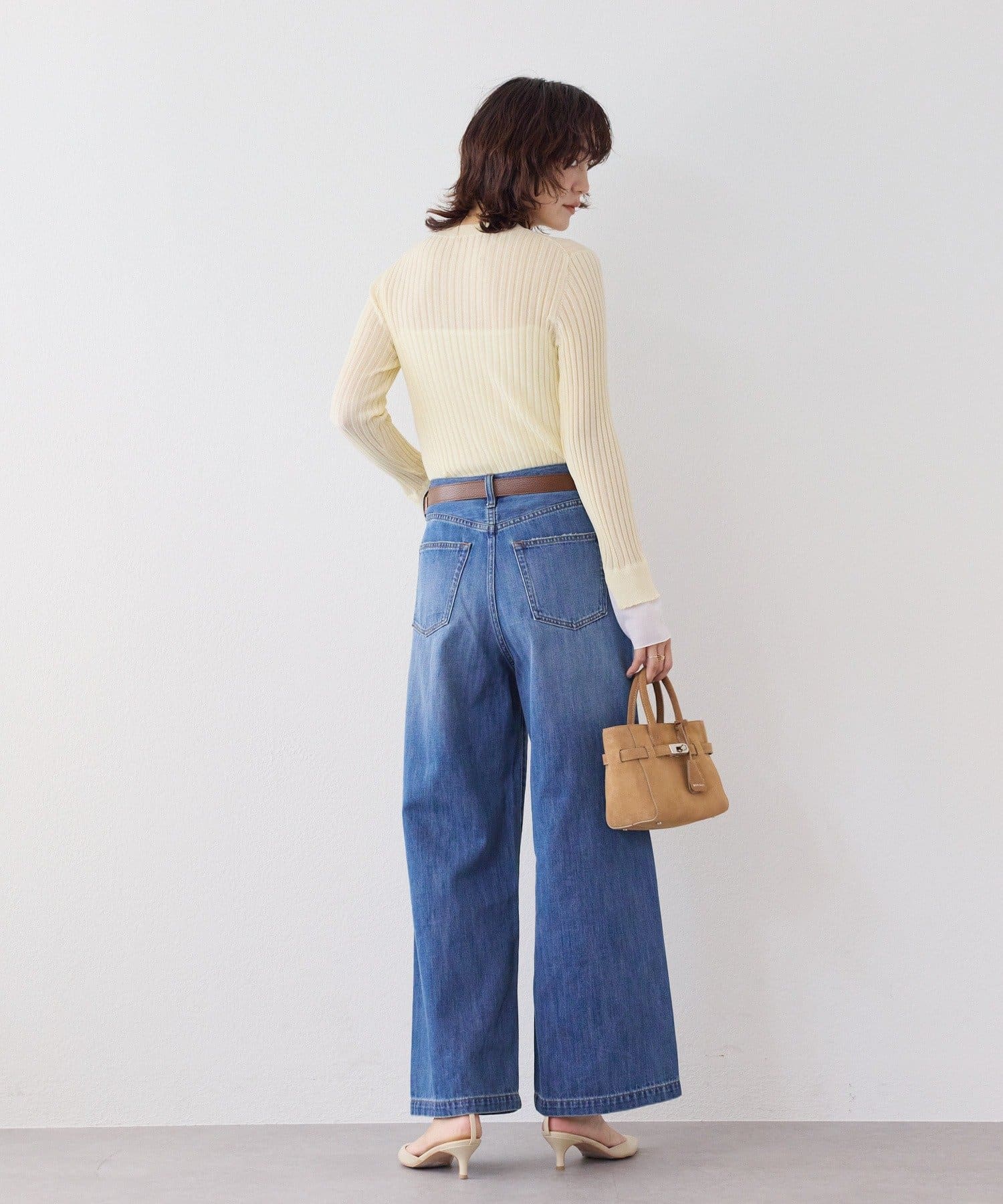 ※リブ編みで横巾が縮みやすい性質があるため、水洗いの際は下記内容に沿ってお取り扱いをいただけます様お願いいたします。