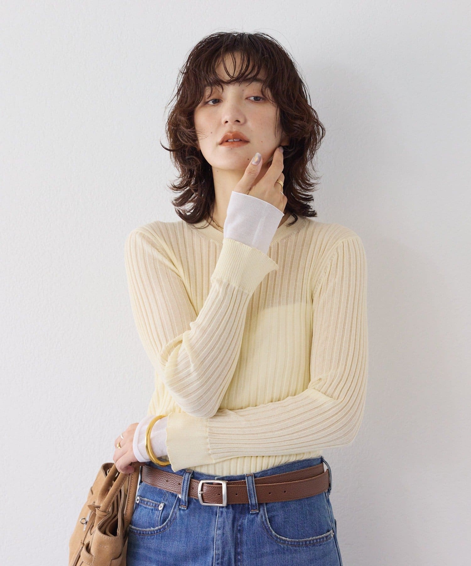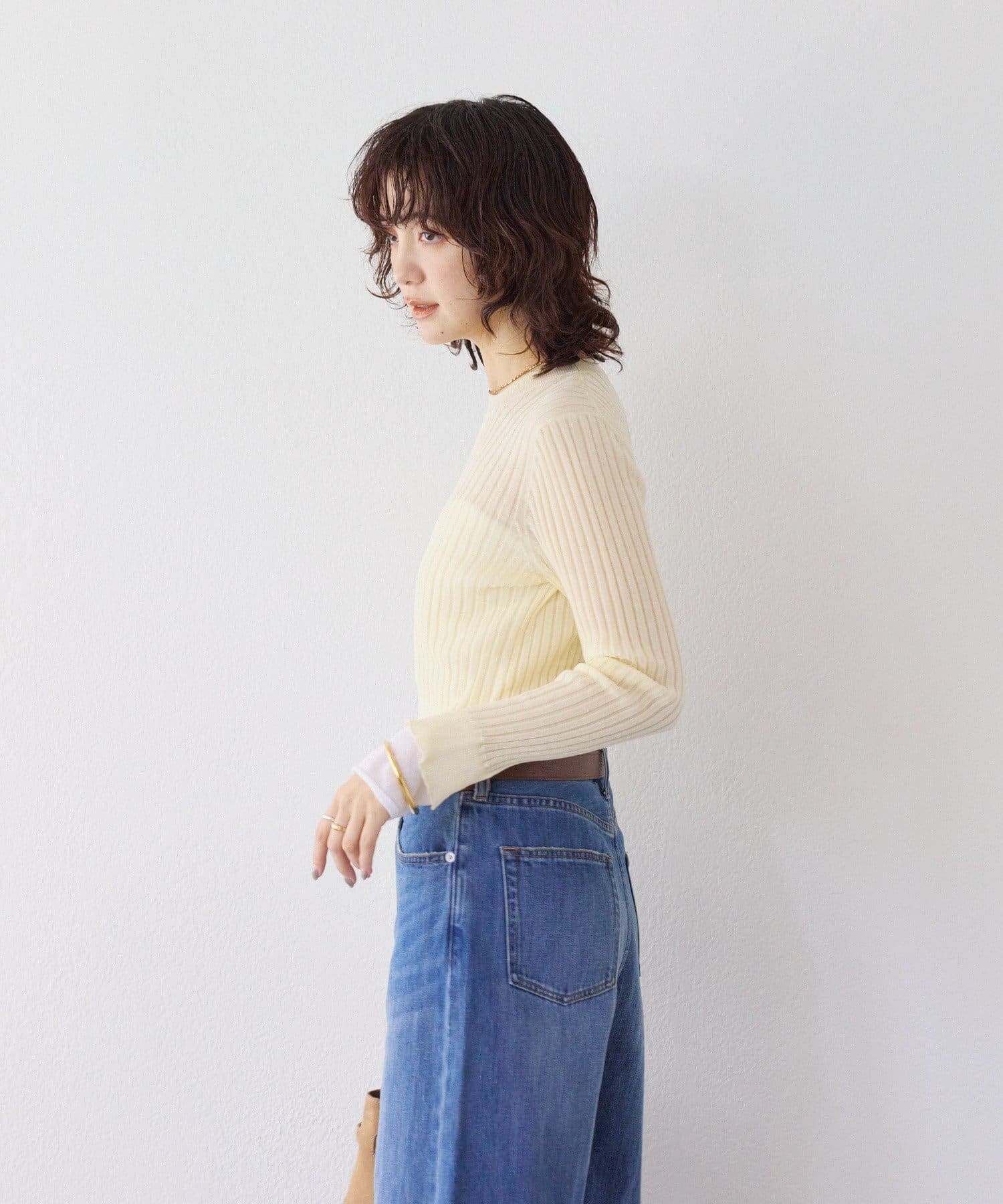 RIVE DROITE(リヴドロワ) 予約【レイヤード風の袖口】シアーカフスリブニット