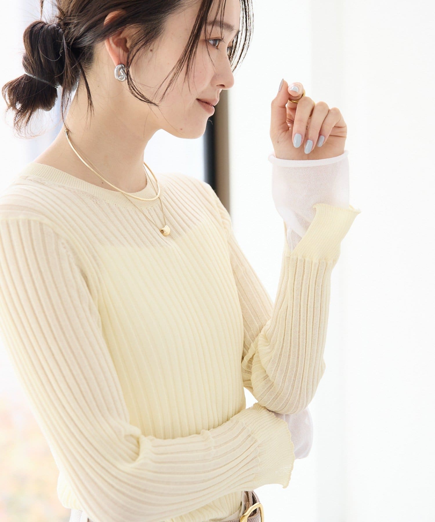 程よい透け感とレイヤード風の袖口がアクセントに
