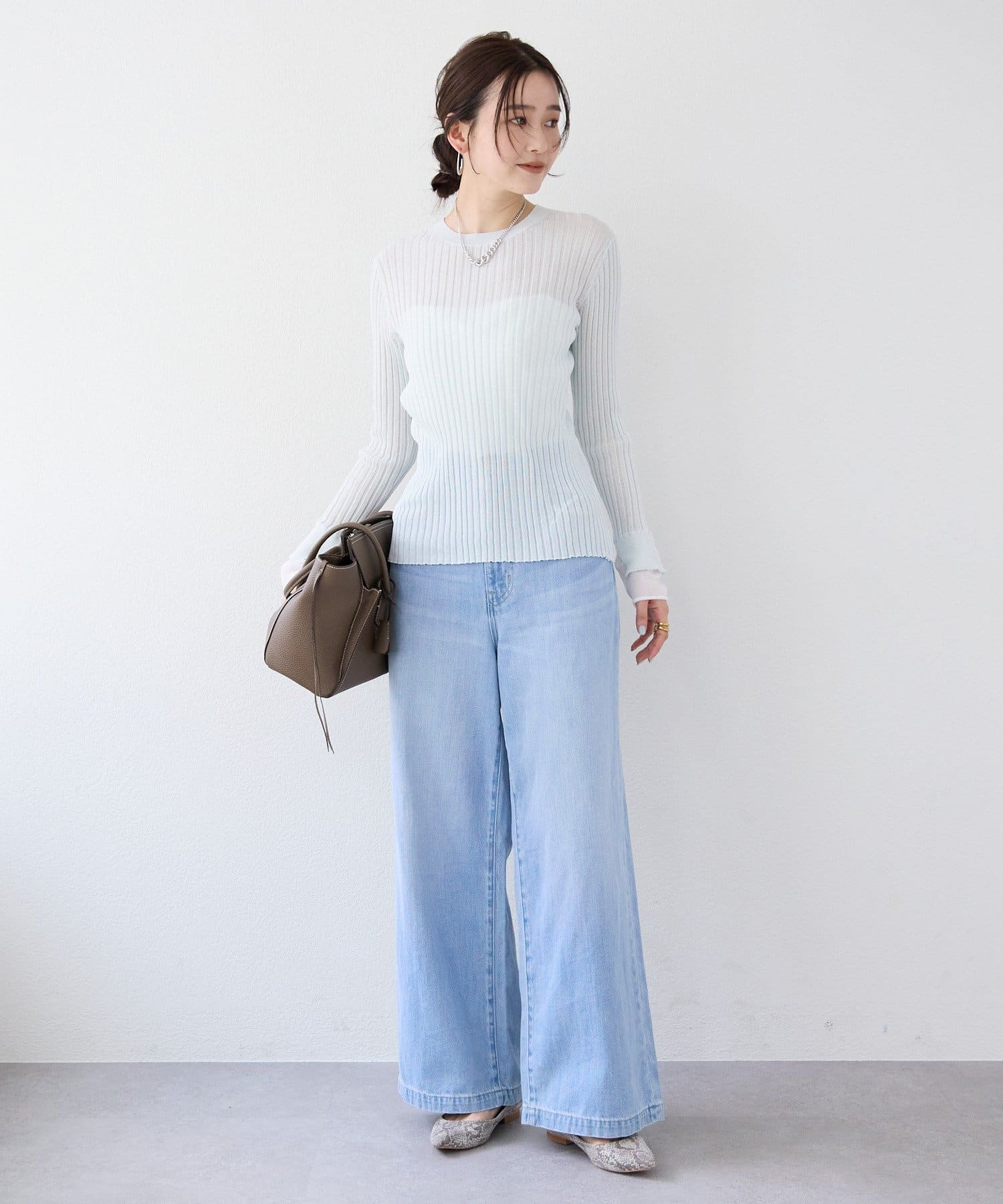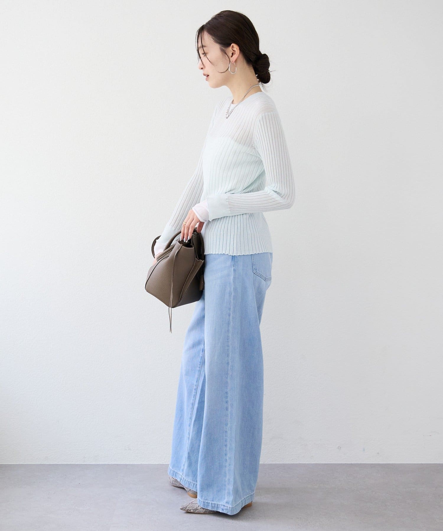 ・繊細な編地で透け感が綺麗なワイドリブ編み。