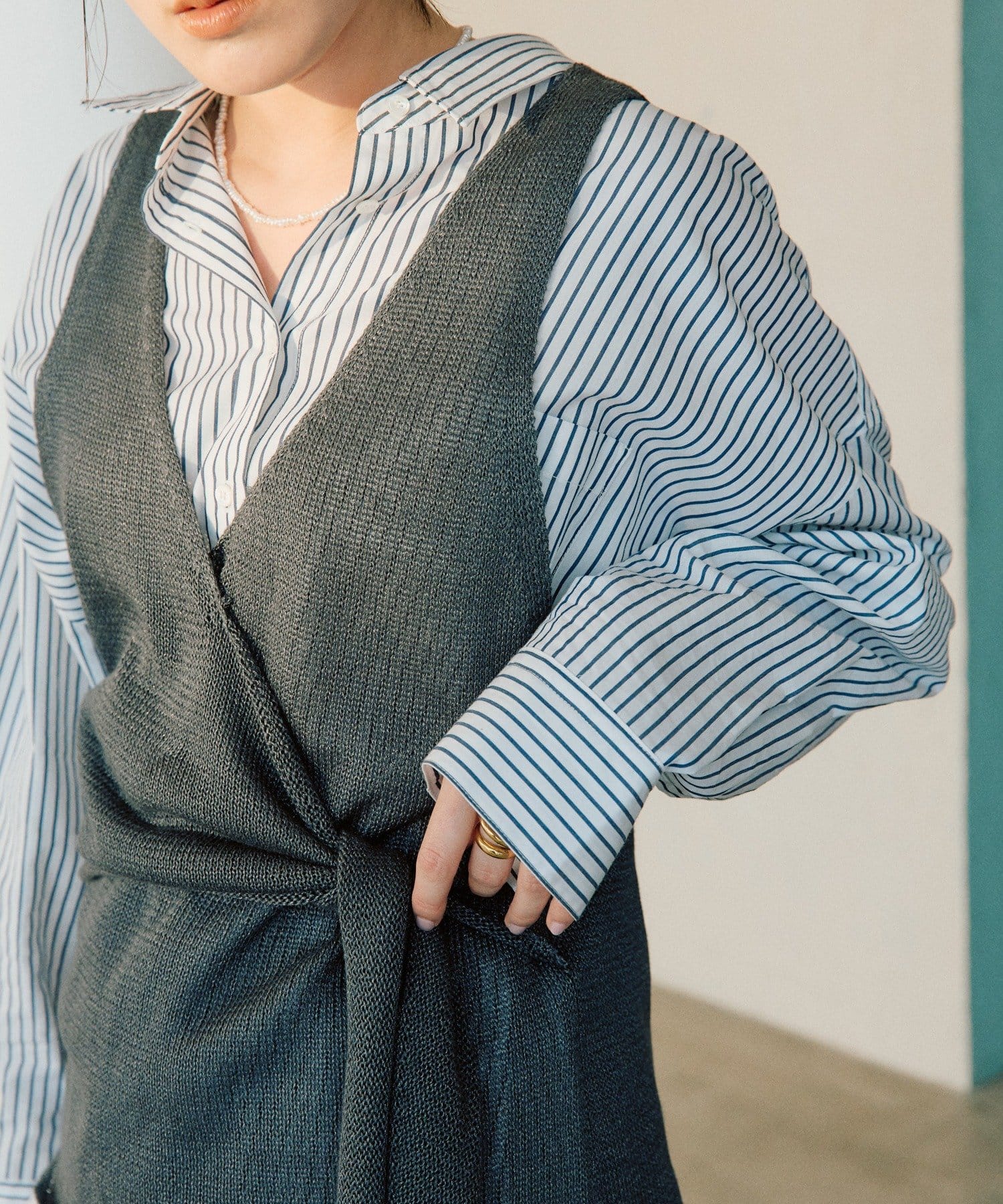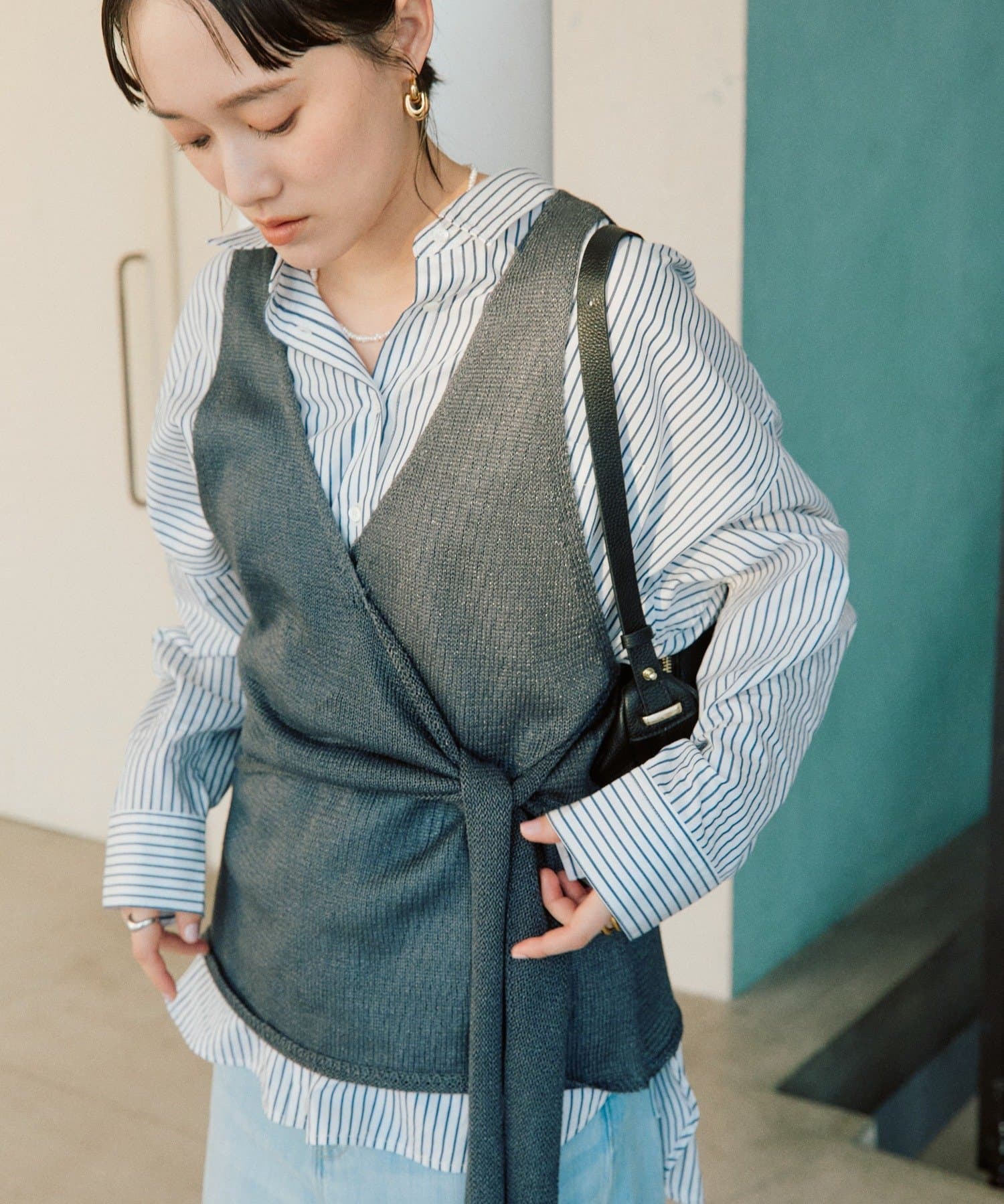 • フロントのカシュクールディテールがポイントのニットビスチェ