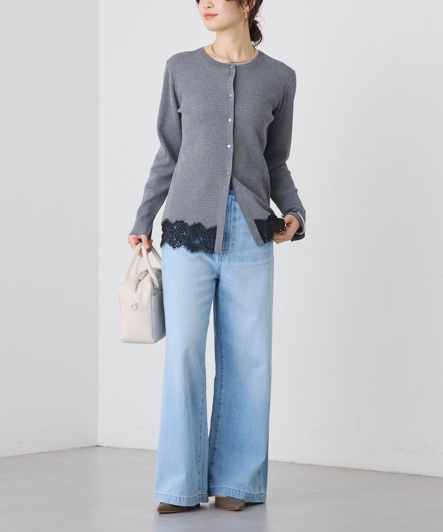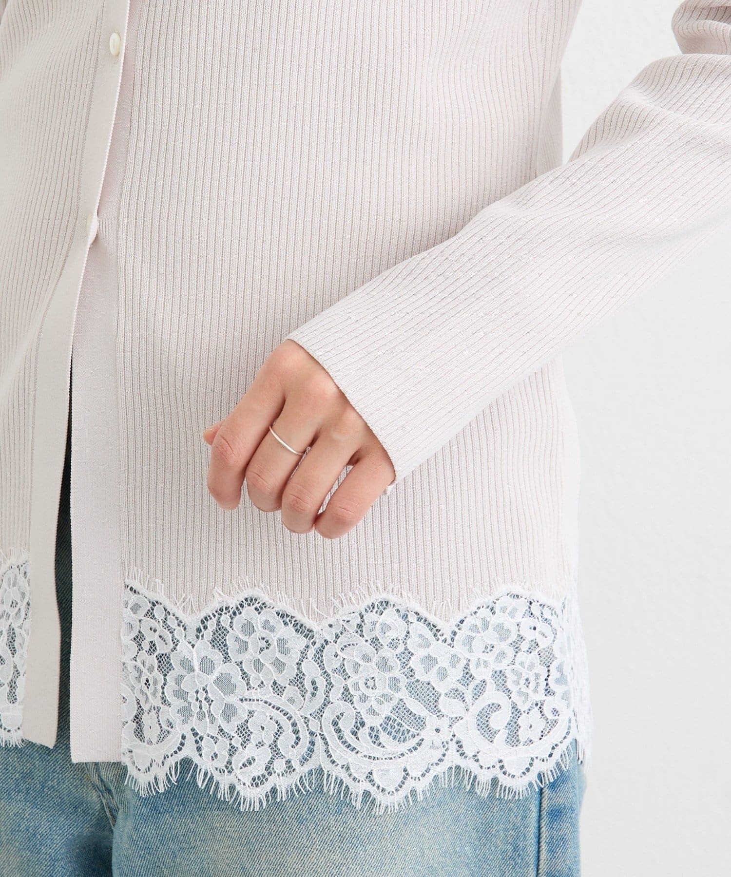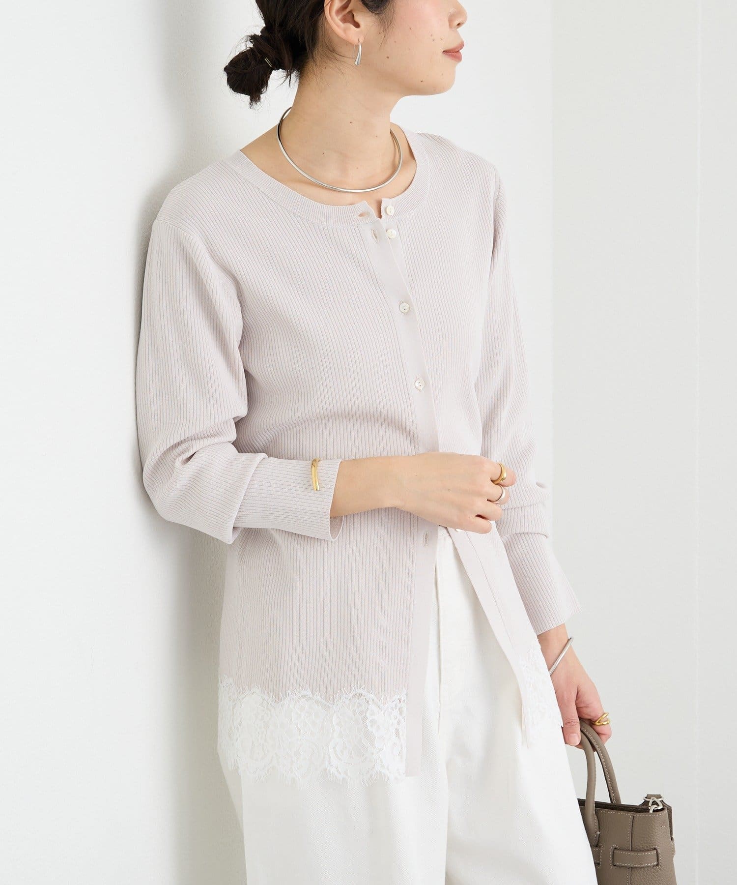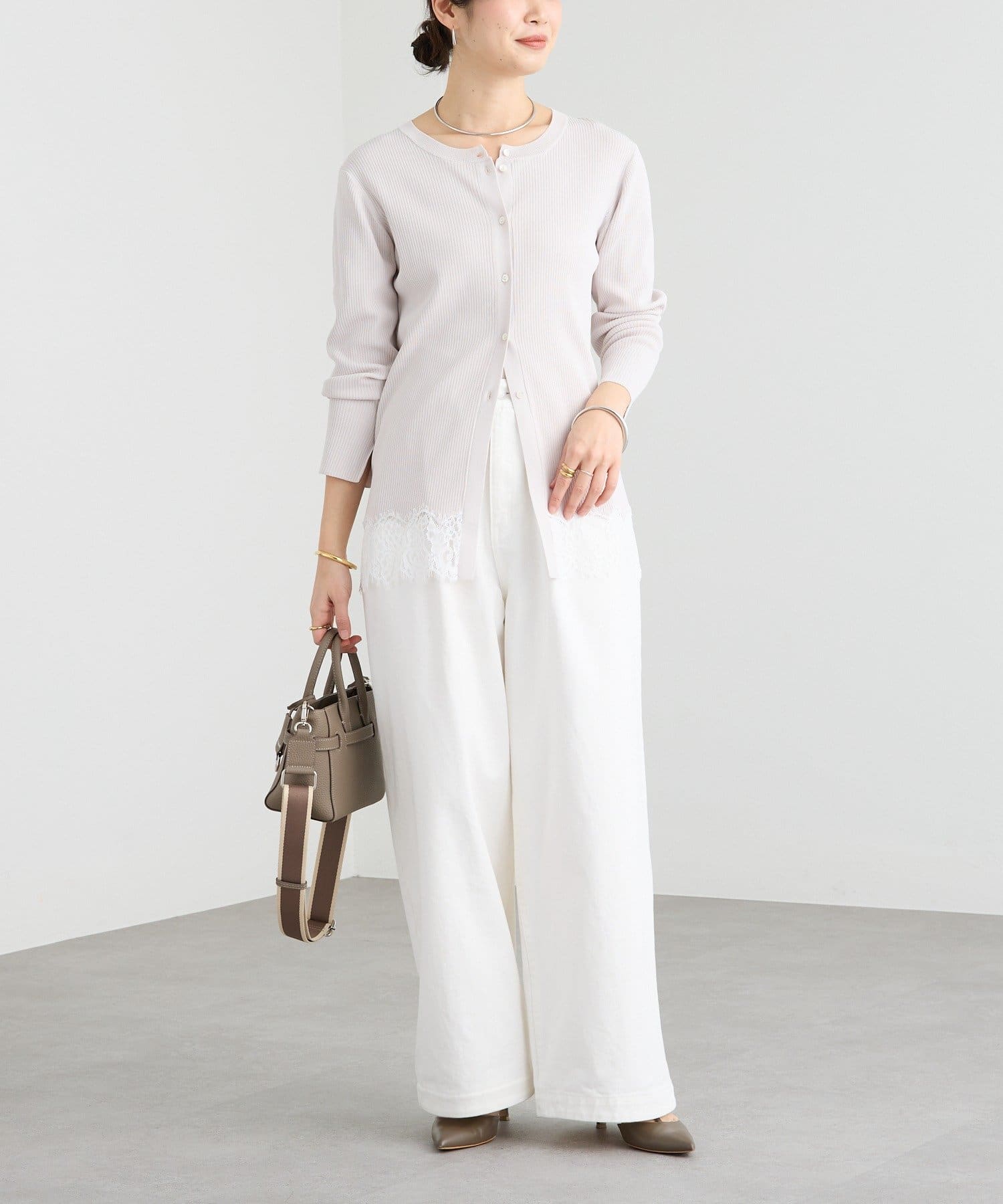 ・今季トレンドの繊細なレース使いを取り入れて、鮮度を出したニットカーディガン