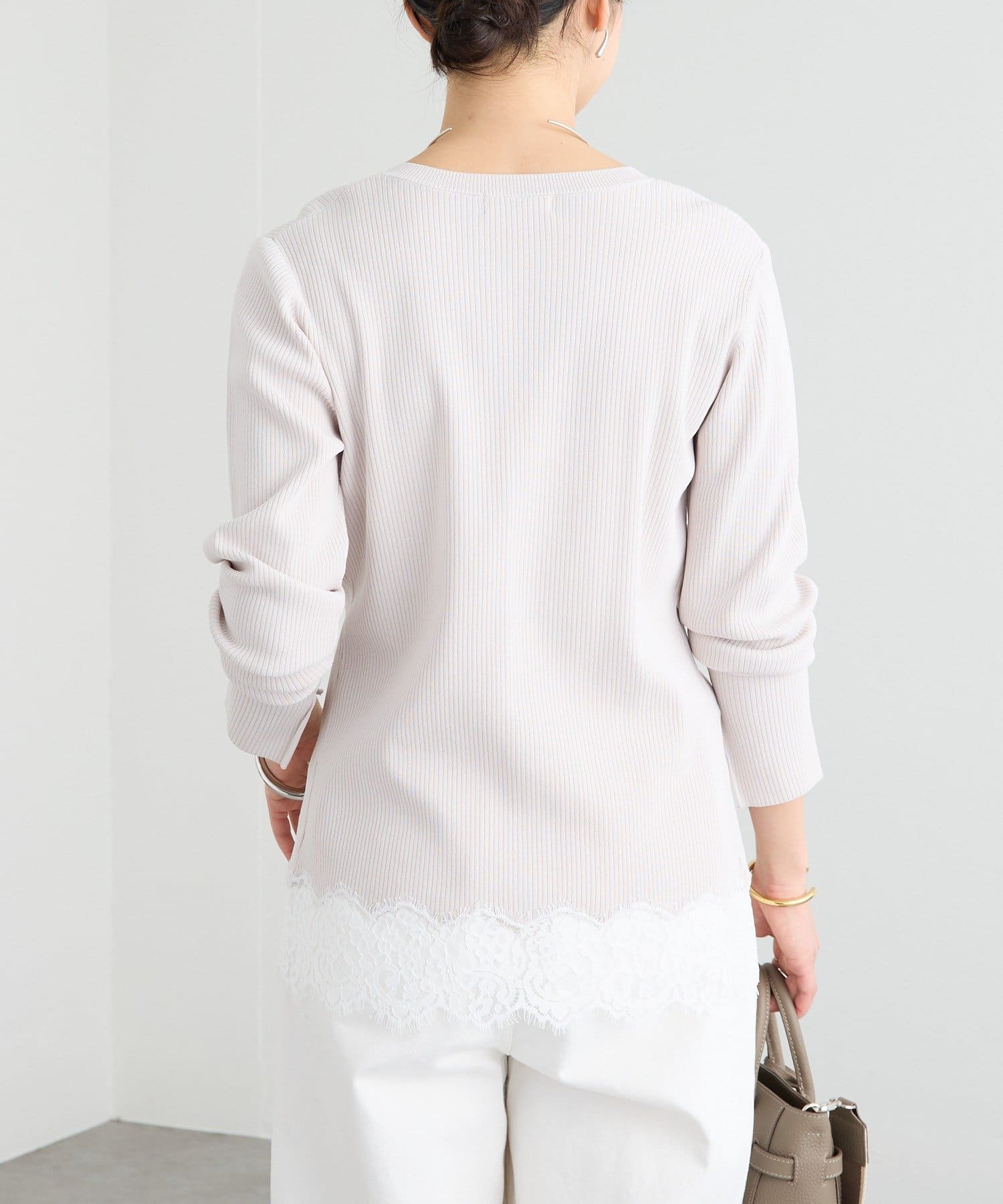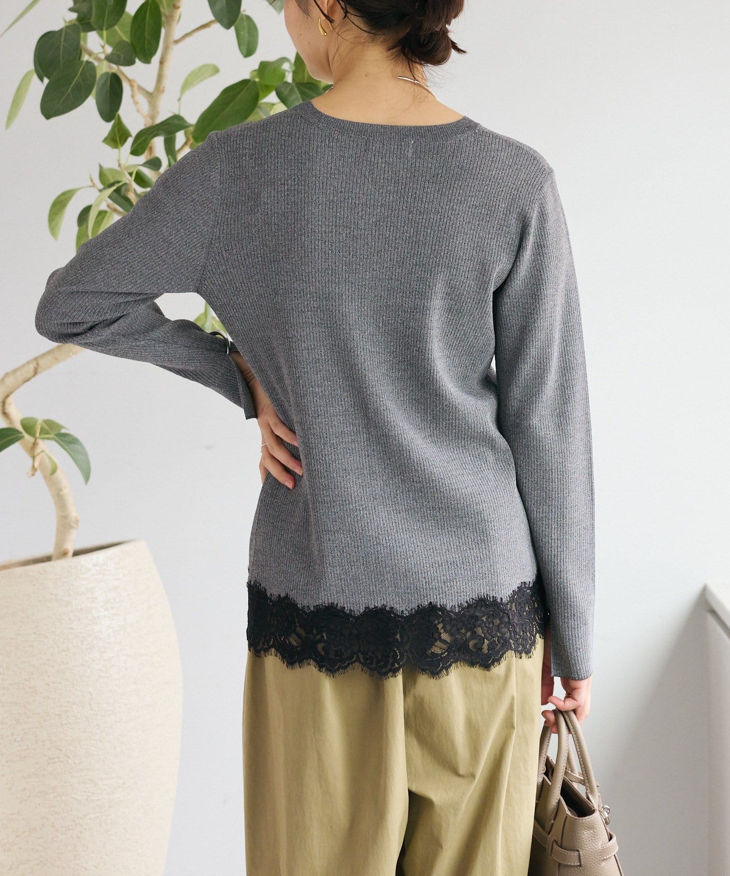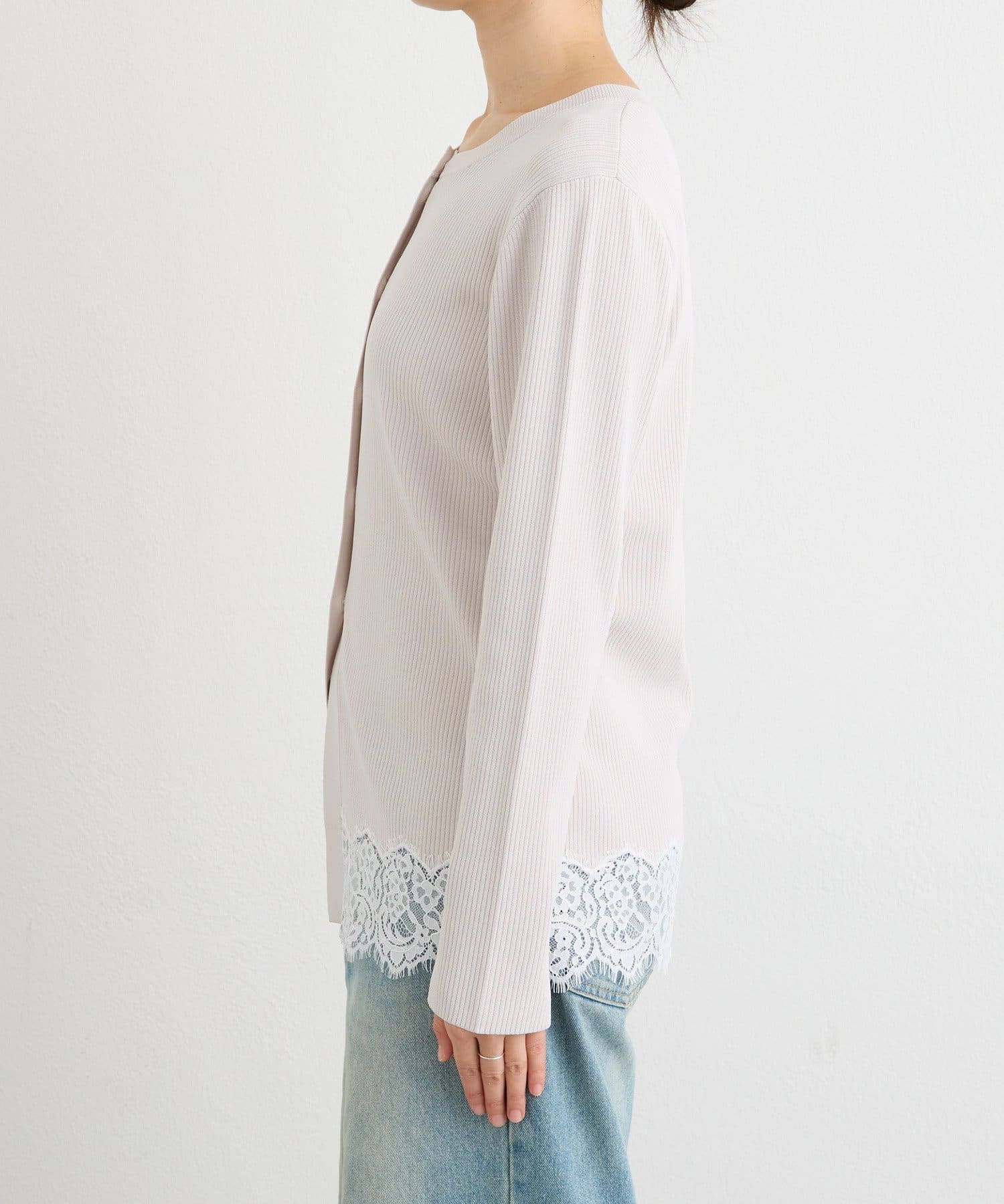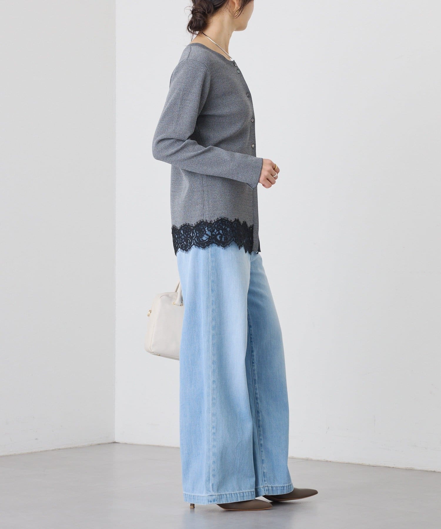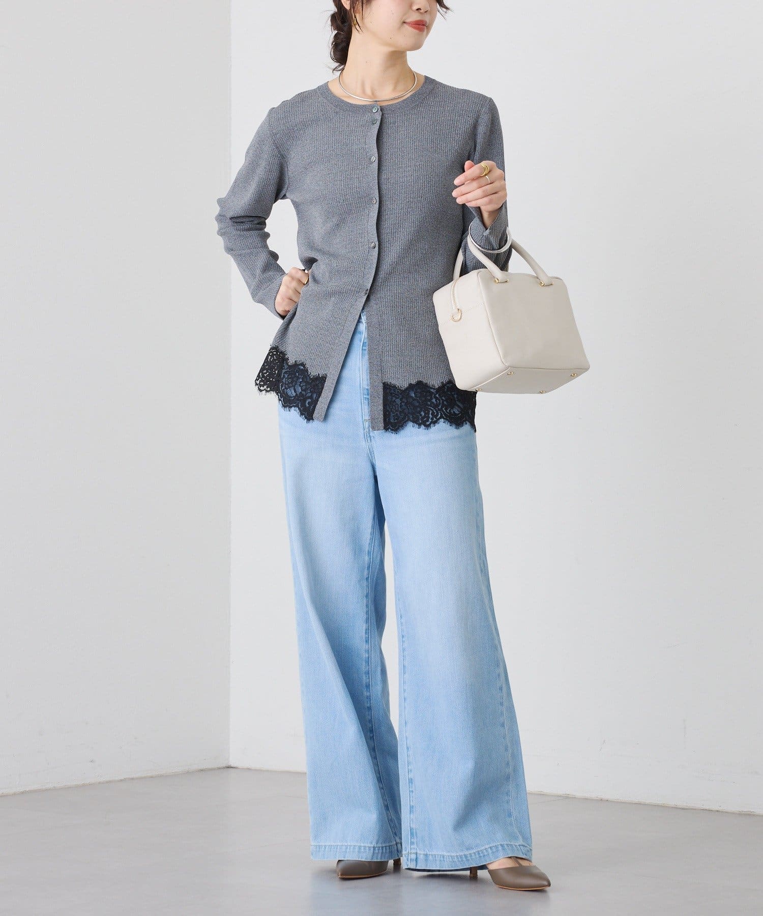 ・今季トレンドの繊細なレース使いを取り入れて、鮮度を出したニットカーディガン