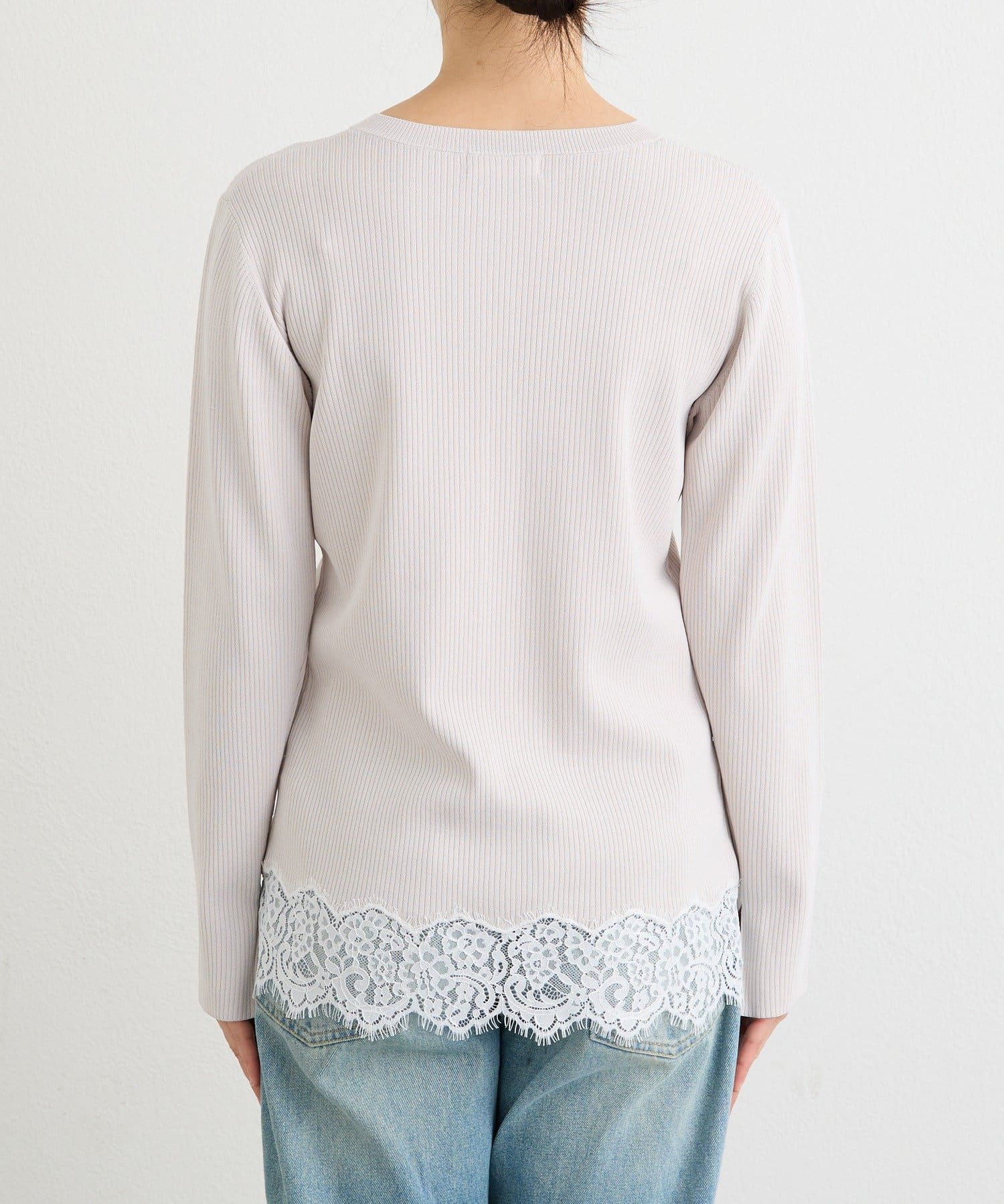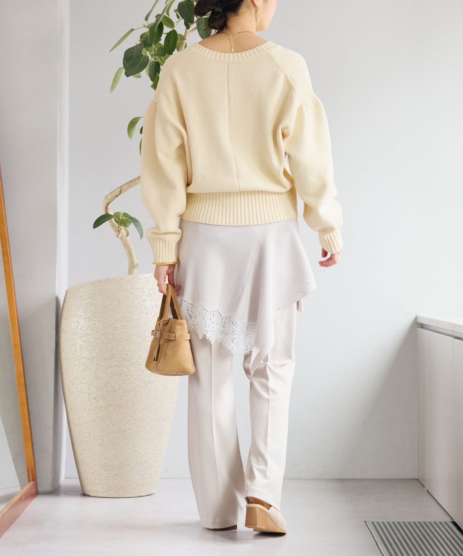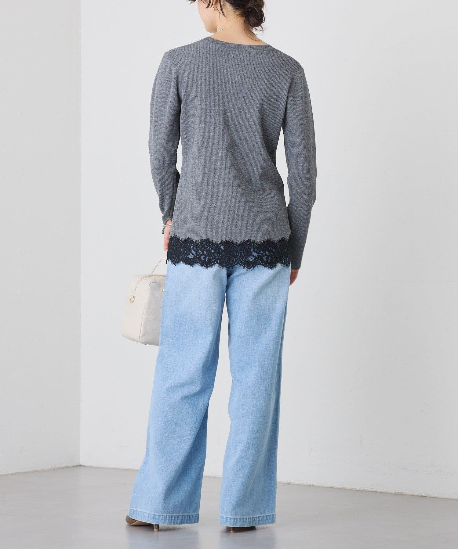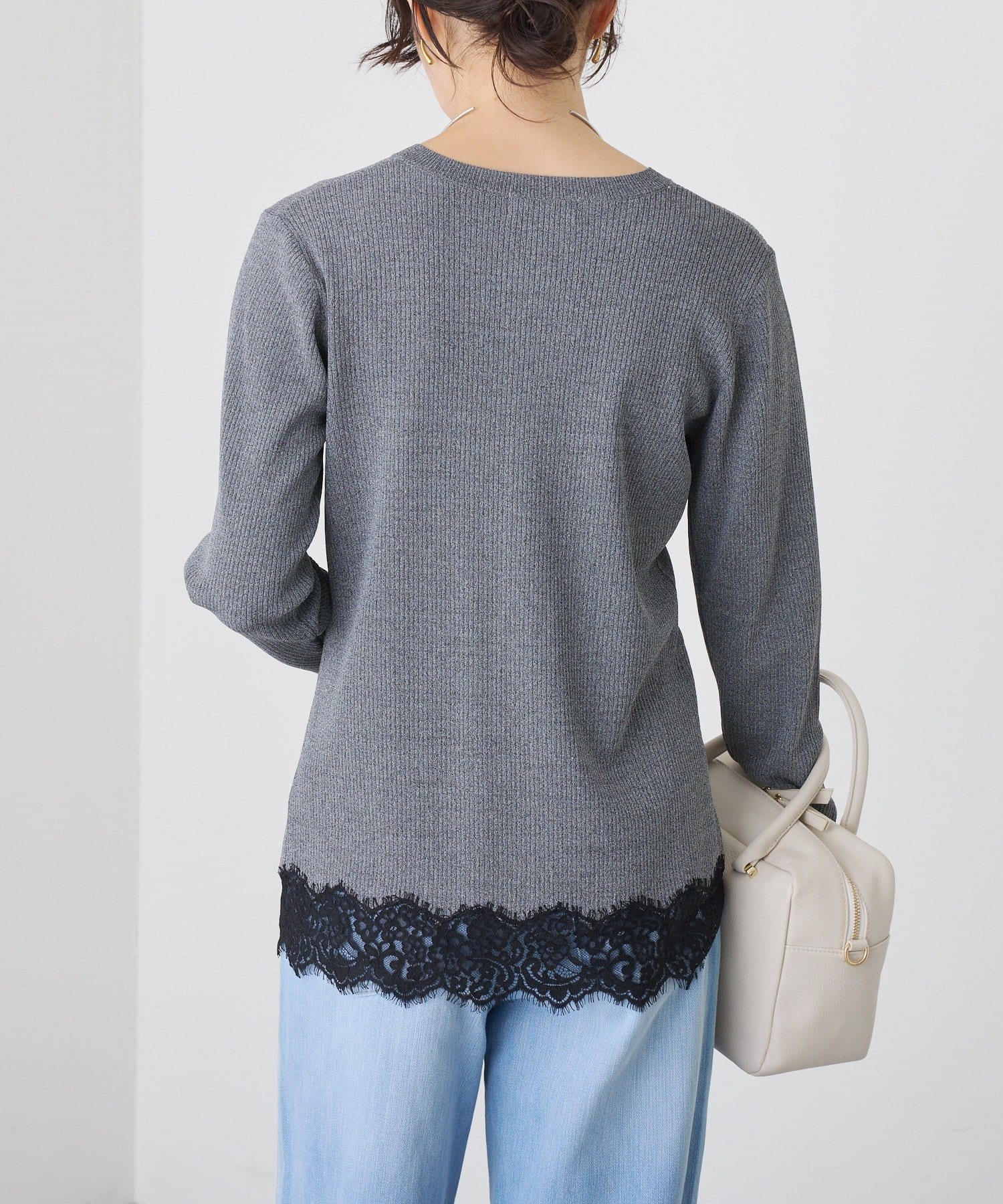 ・今季トレンドの繊細なレース使いを取り入れて、鮮度を出したニットカーディガン