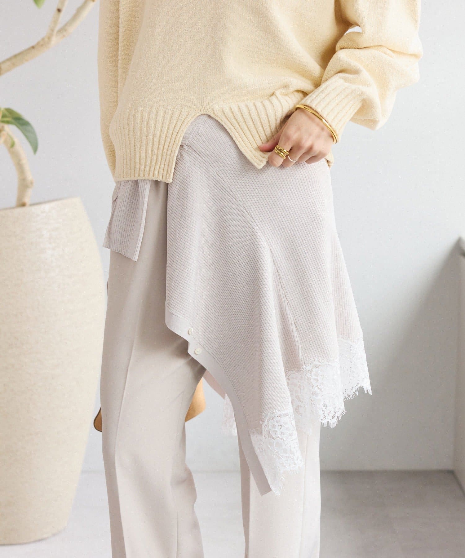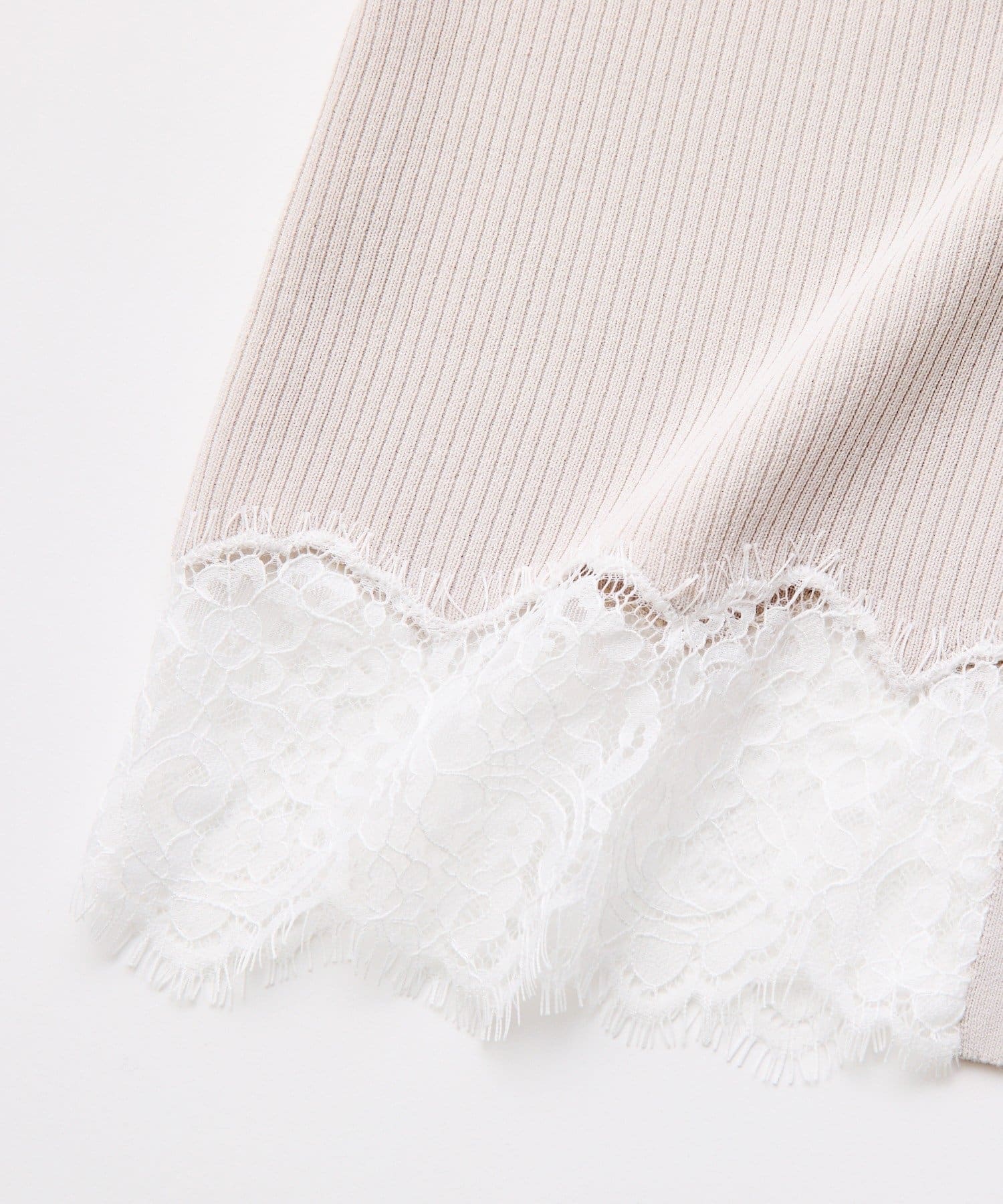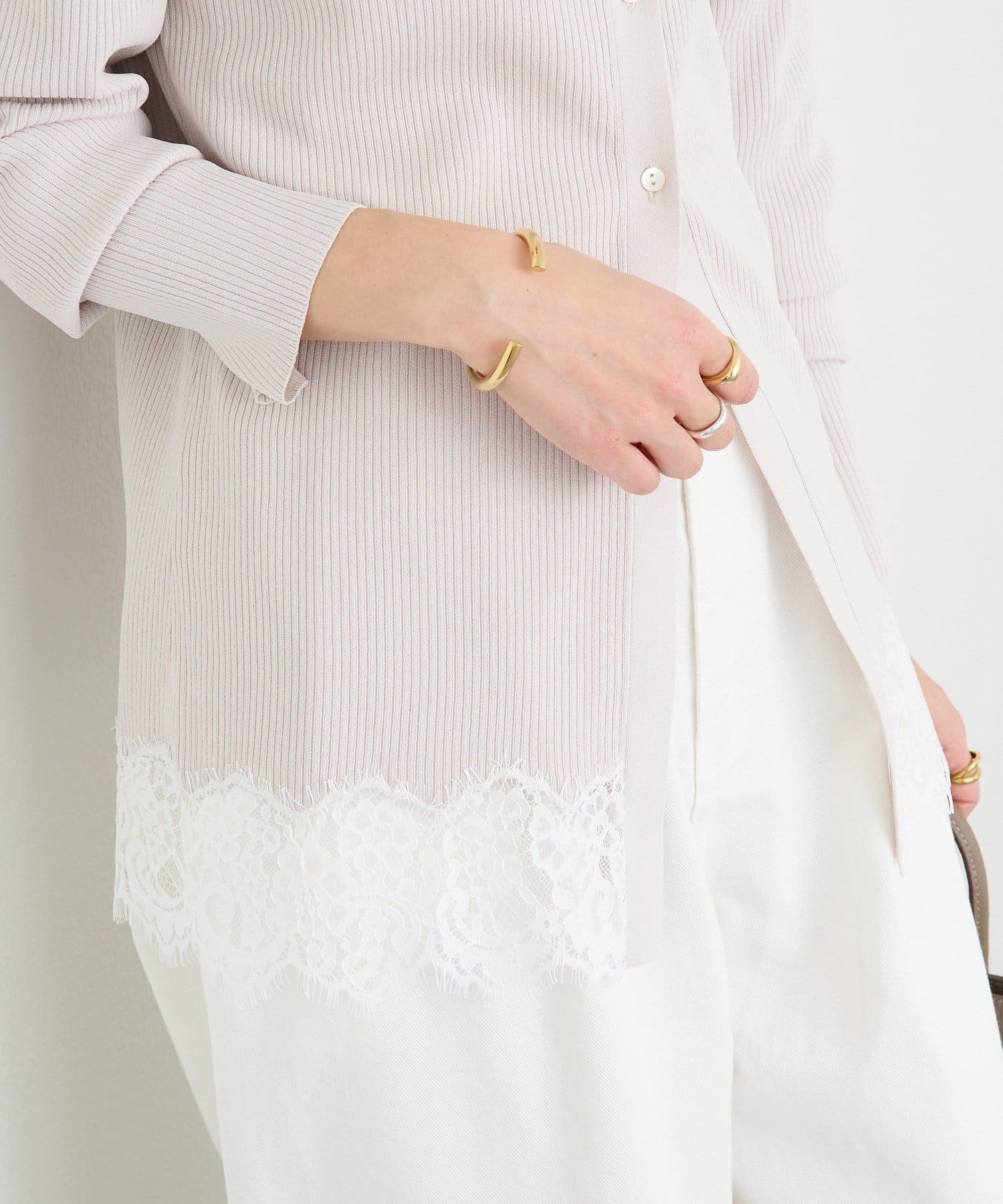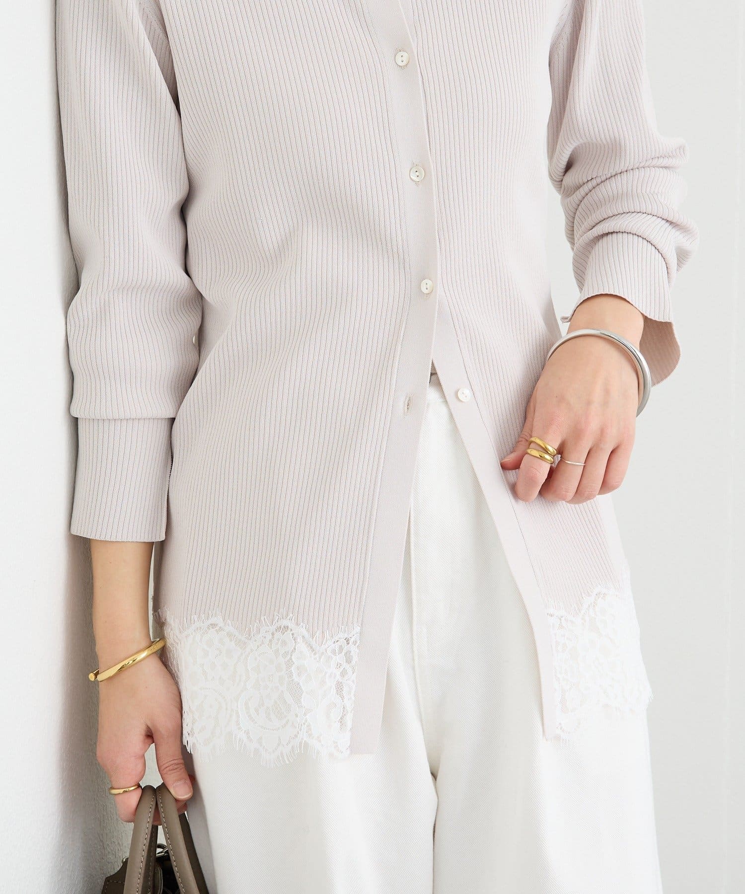 ・今季トレンドの繊細なレース使いを取り入れて、鮮度を出したニットカーディガン