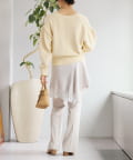 ・短めの着丈でワイド、タイト問わずバランスが取りやすく、スタイリングに鮮度を出せるニットです