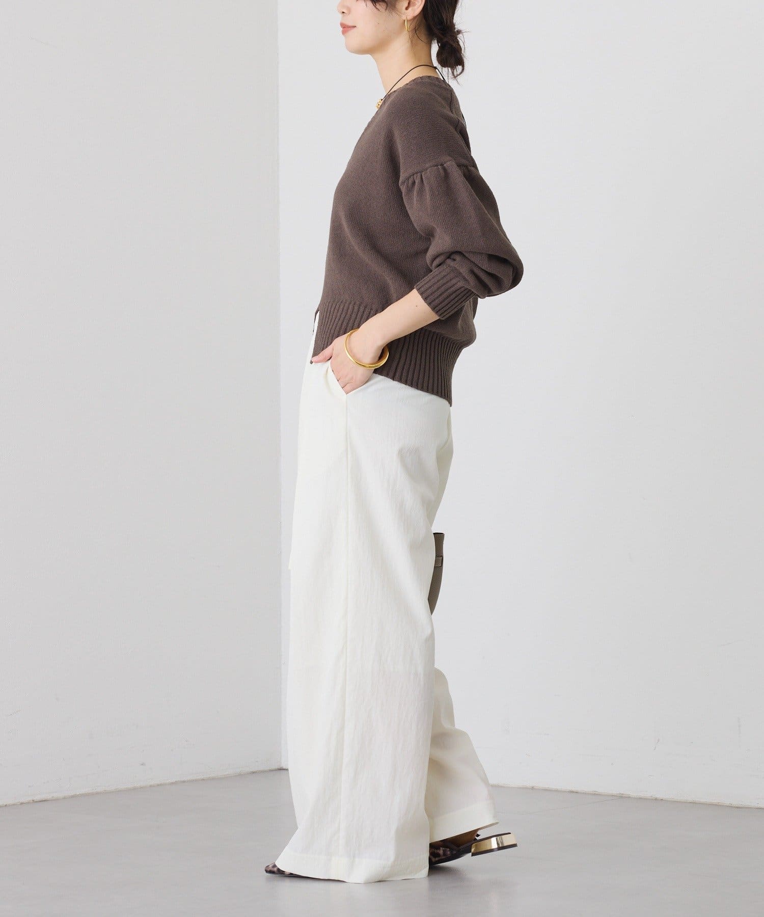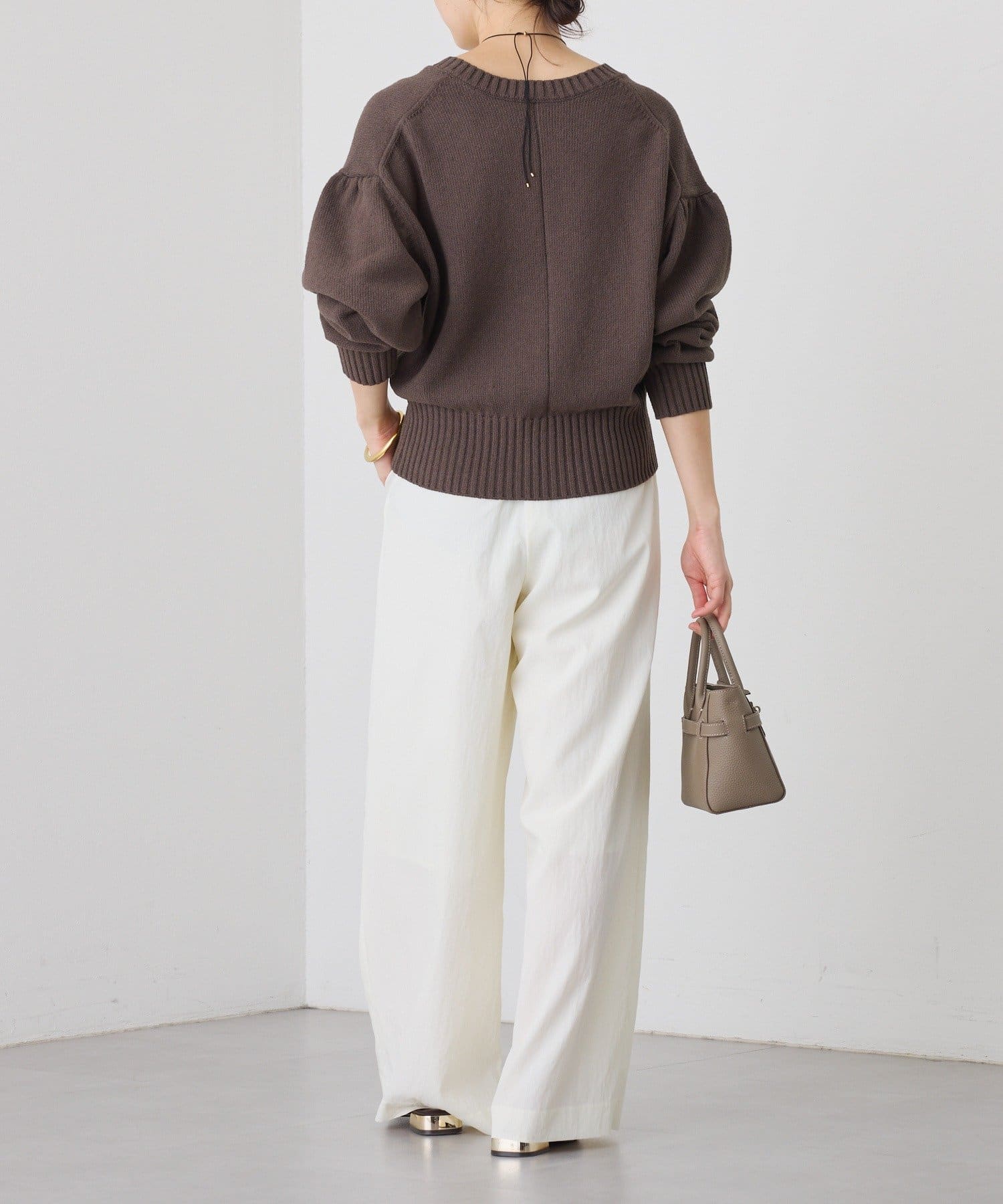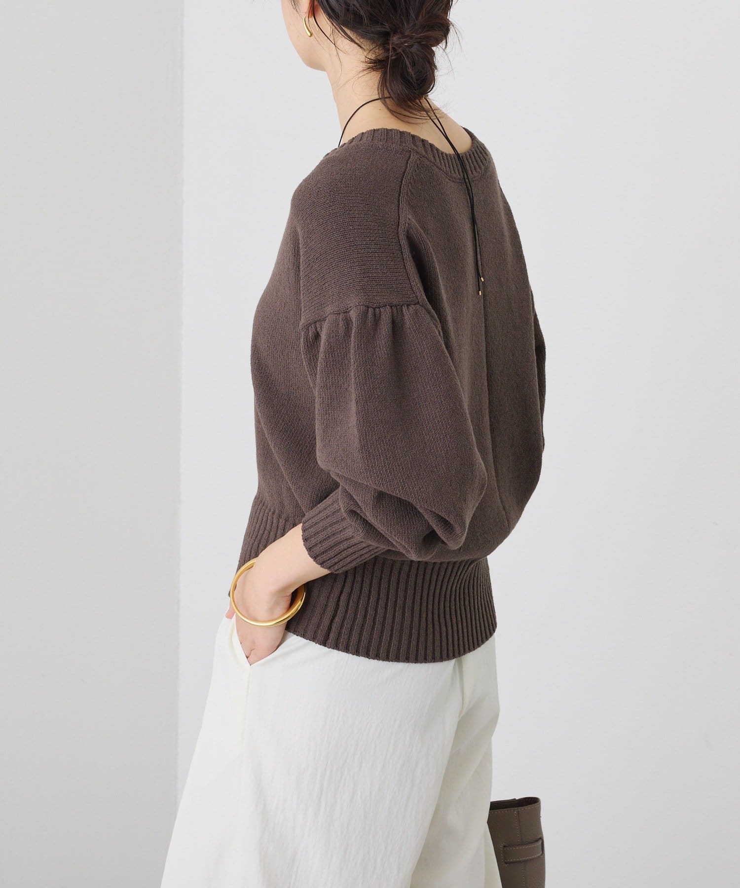 計算された甘くなりすぎない袖のボリューム感がポイントに